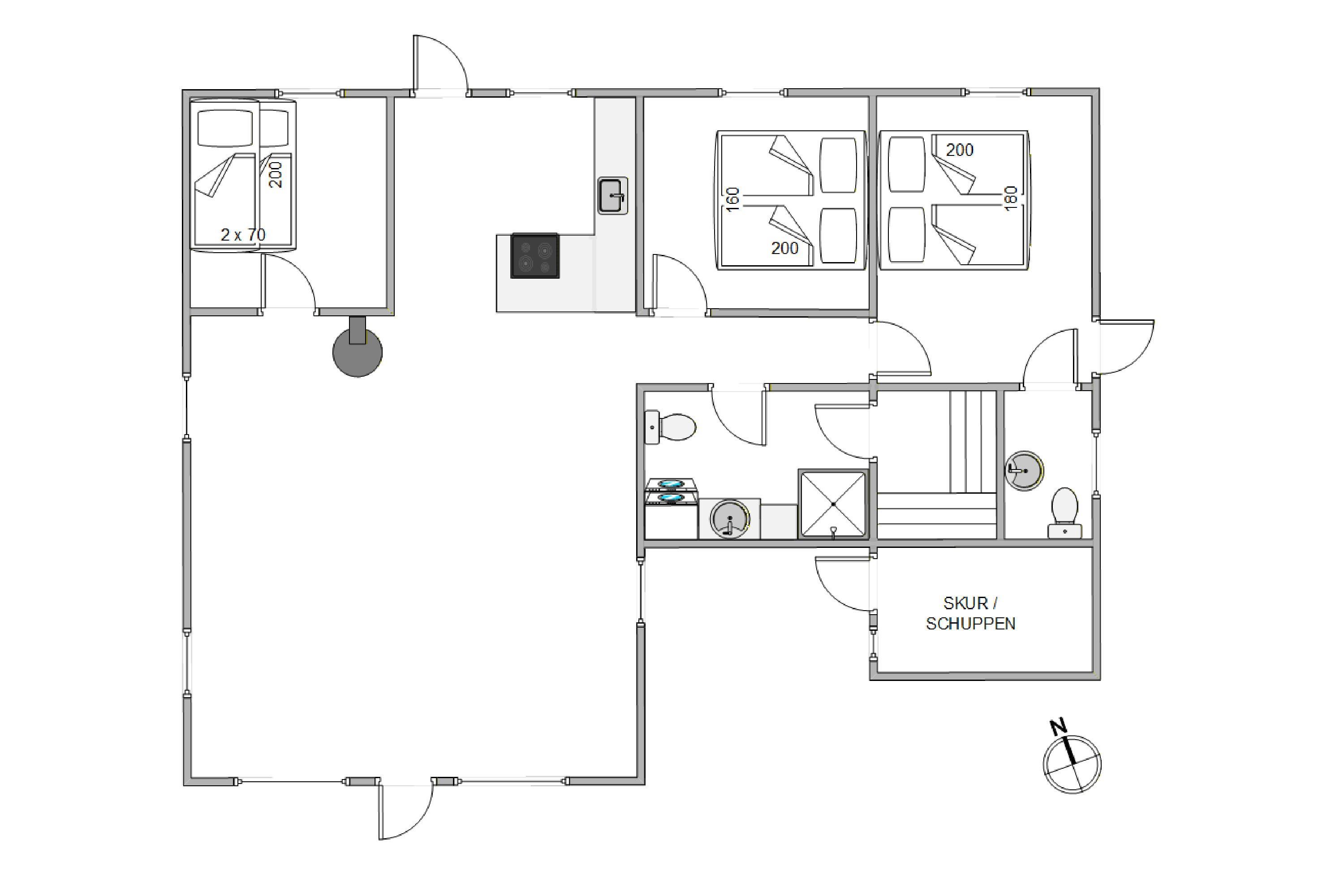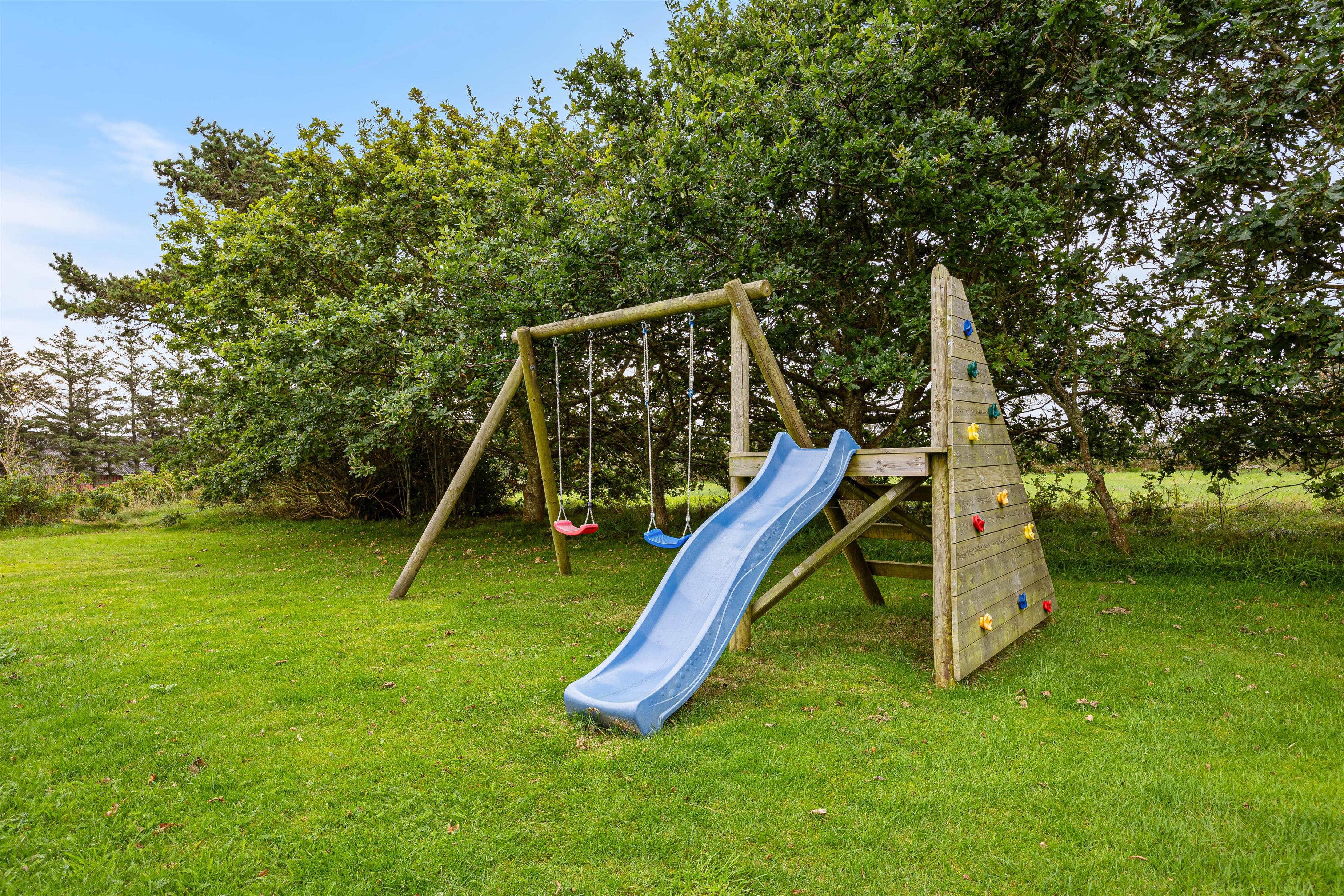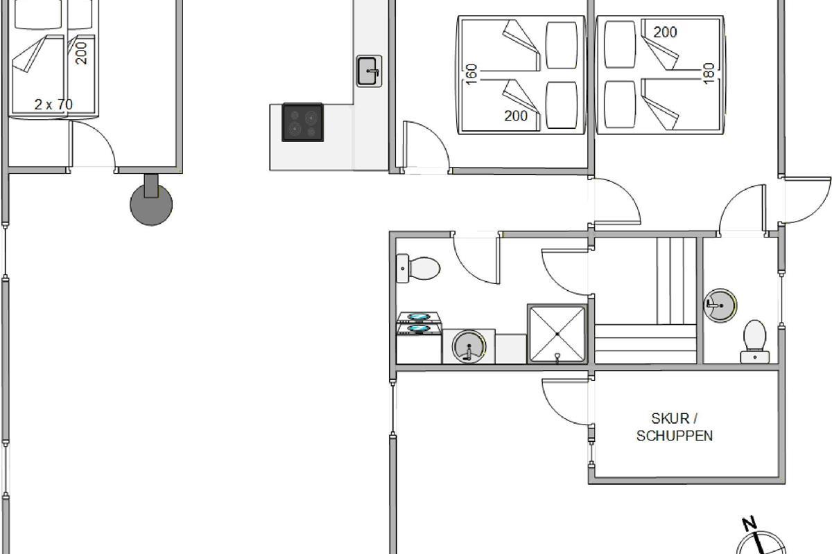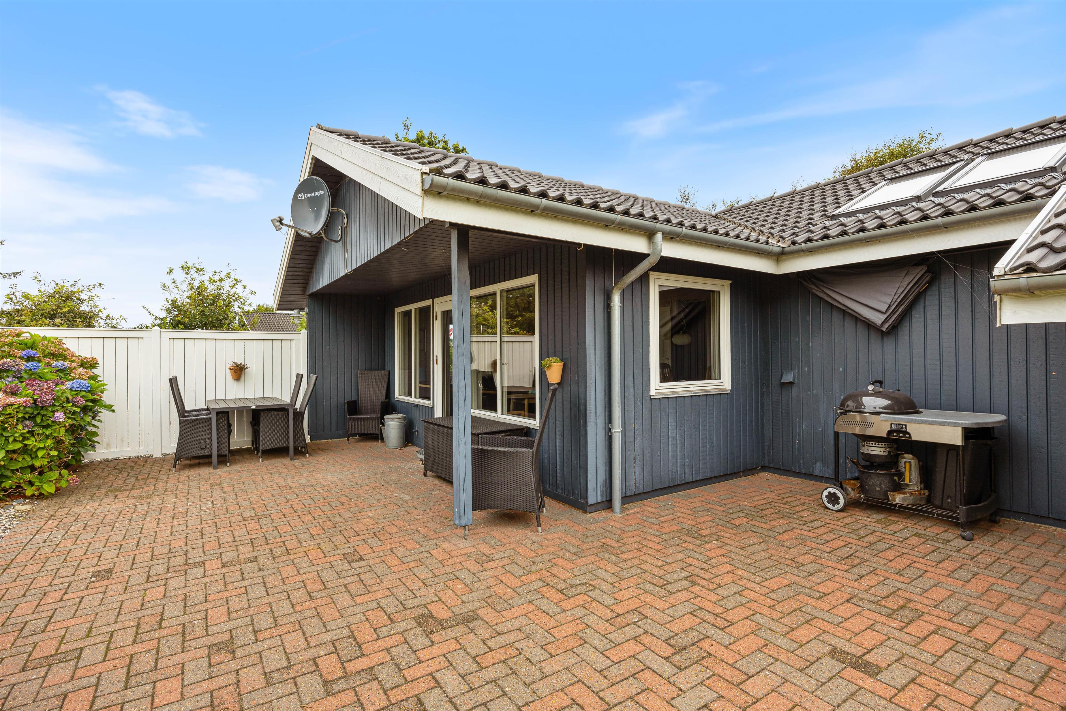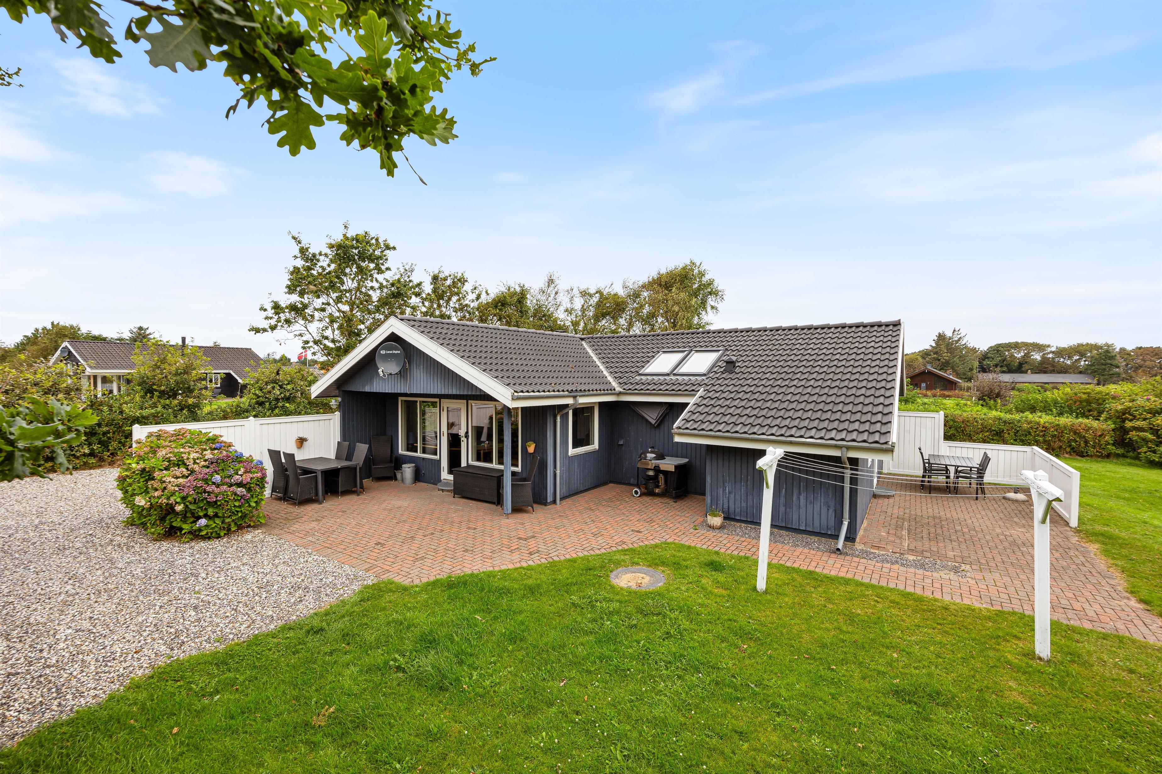 The holiday home at Helmklitvej 210 in Fjand sits on a 1,886-square-metre lawn, offering plenty of space for children and dogs to play and romp around. The garden swing will surely be a hit with your children. While the children play ball, you can relax on the partially covered and sheltered terrace or prepare everything for a cosy barbecue evening.