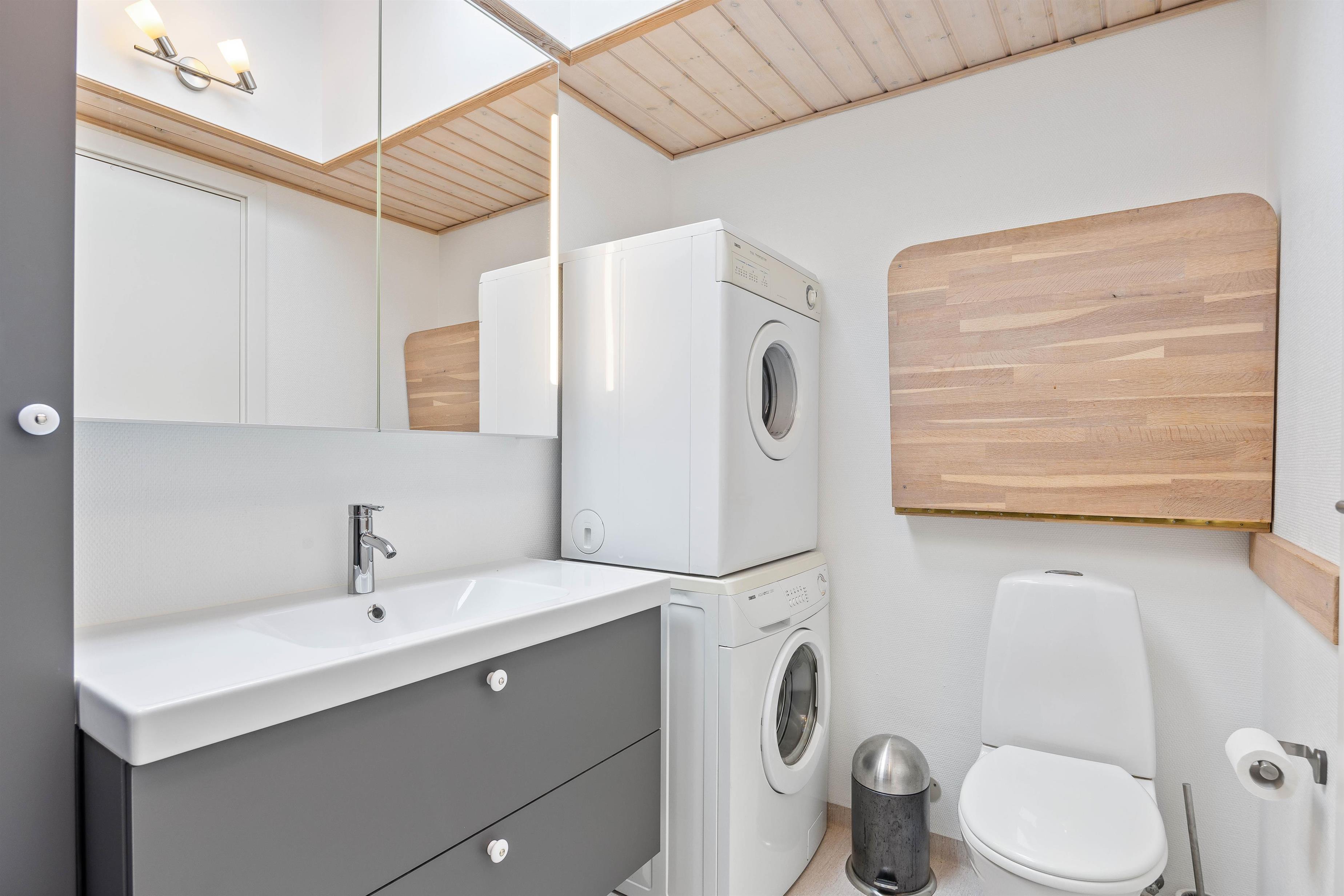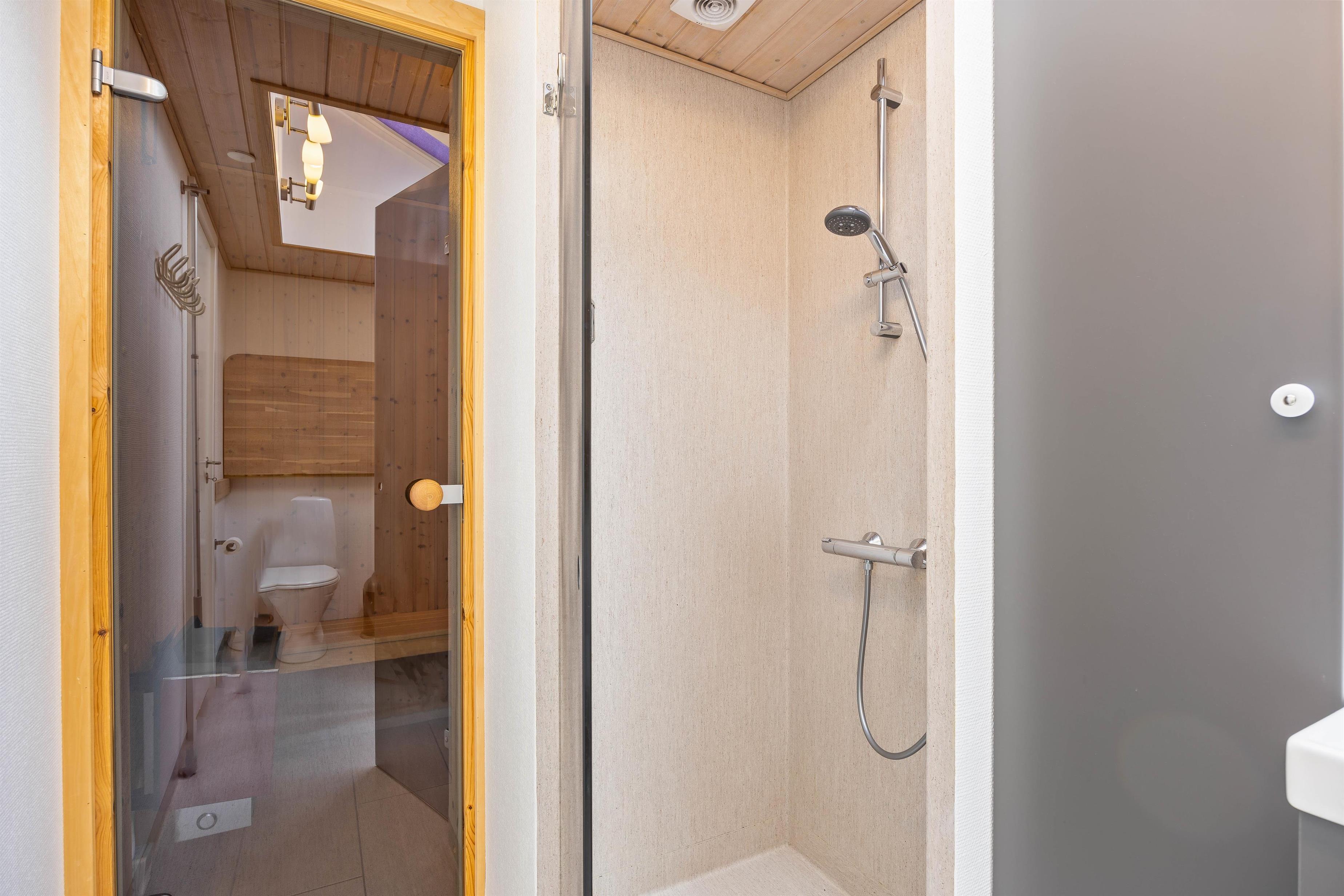 In the evening, you can retire to the three bedrooms, equipped with a bunk bed and two single beds that can be pushed together, to recharge your batteries. To avoid queues for the bathroom, there's a separate guest toilet in addition to the main bathroom. The holiday home's own sauna provides that extra touch of relaxation for your holiday. The bathroom features underfloor heating to keep your feet warm during the cooler months.