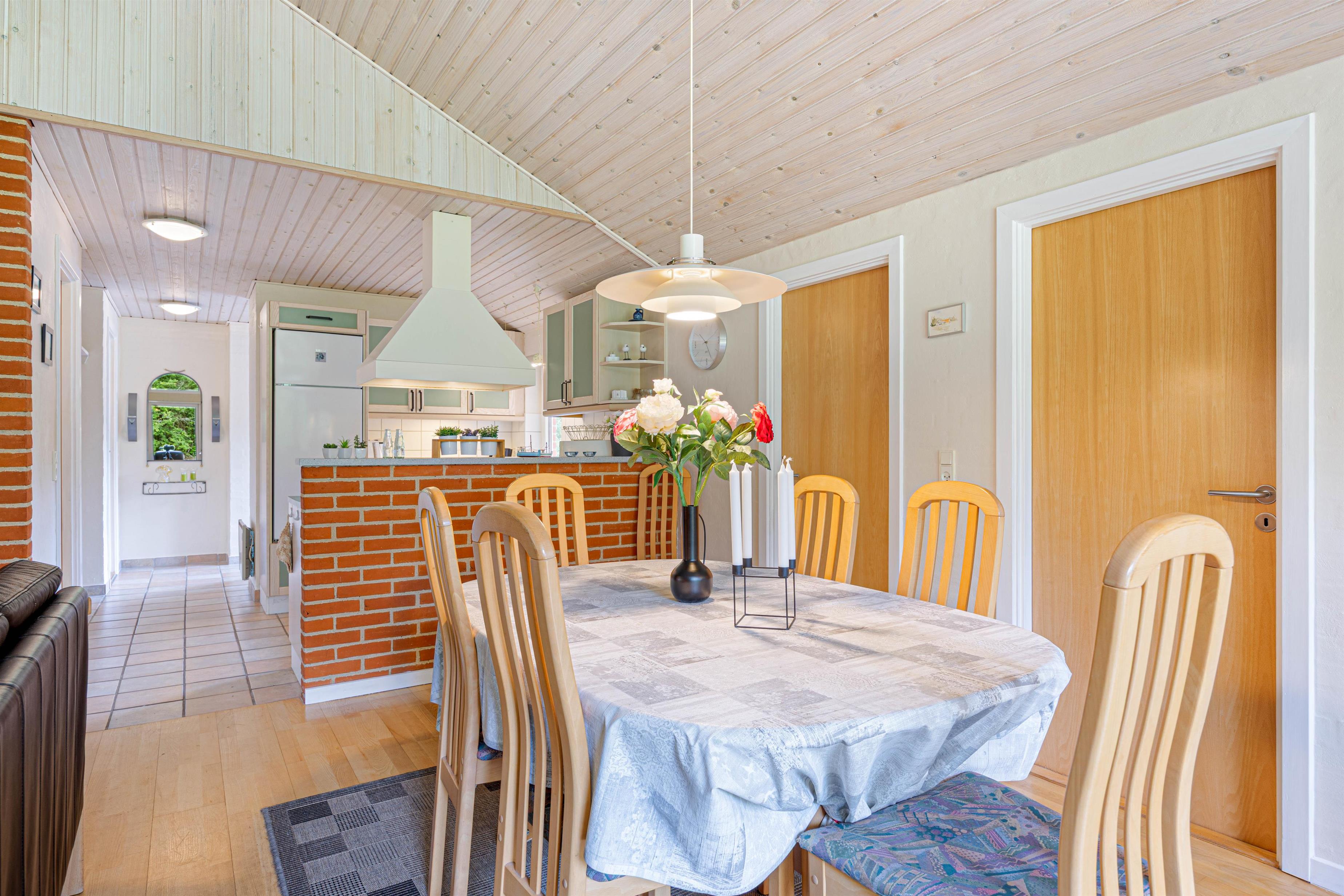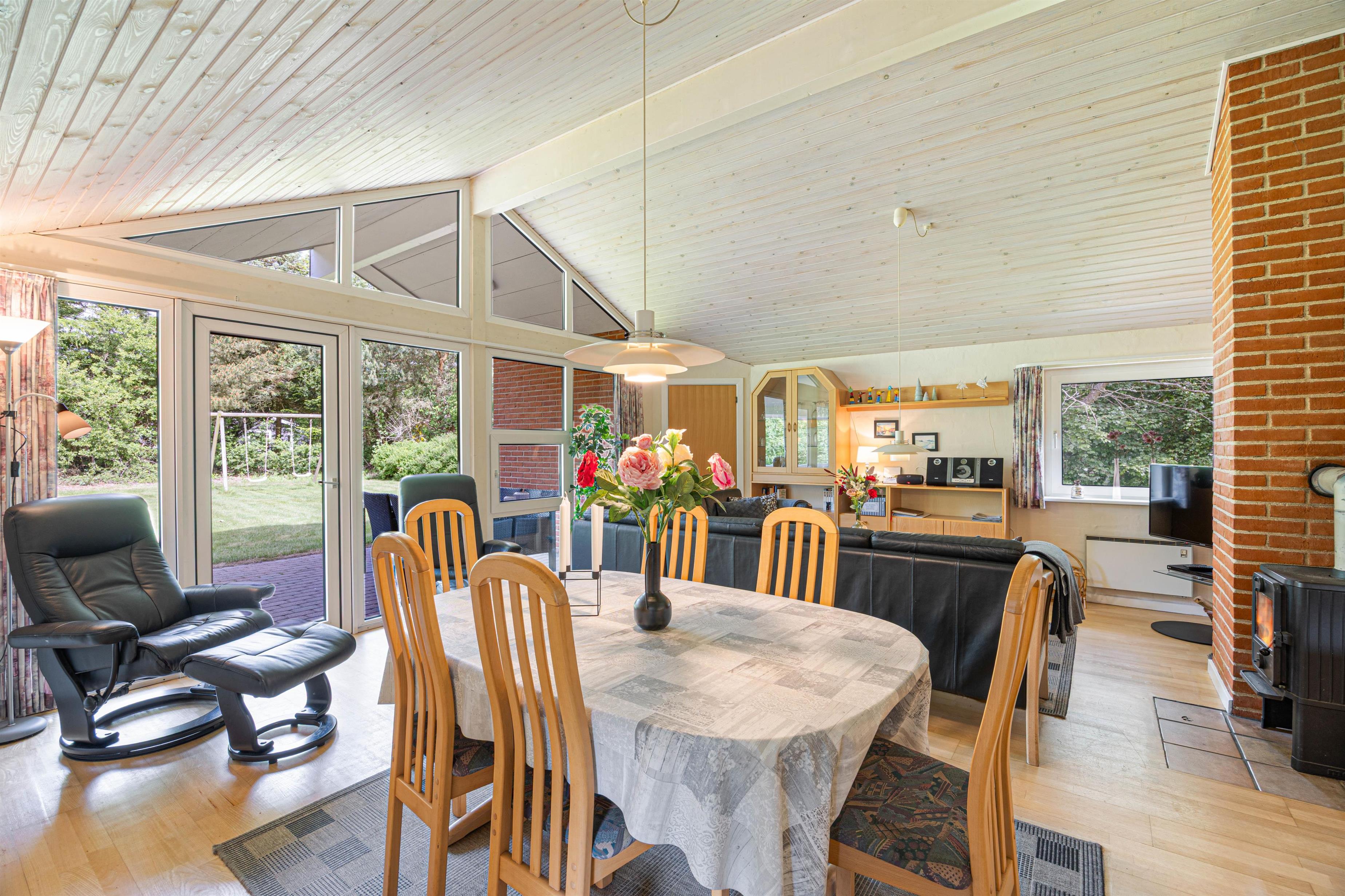 Genießt auf der überdachten Terrasse gemütliche Stunden im Freien. Nutzt die Gartenmöbel und den Grill, um eure Abende bei gutem Essen und angenehmer Gesellschaft ausklingen zu lassen. Für die Kinder gibt es eine Schaukel und einen Sandkasten, sodass auch sie voll auf ihre Kosten kommen. Das Rasengrundstück rundet das Outdoor-Angebot ab und bietet viel Platz zum Spielen und Entspannen. Da der Nissum Fjord nur ca.500 m entfernt ist, bieten sich nach dem Essen noch schöne Spaziergänge am Wasser an. Die Kinder und die Hunde werden begeistert sein.