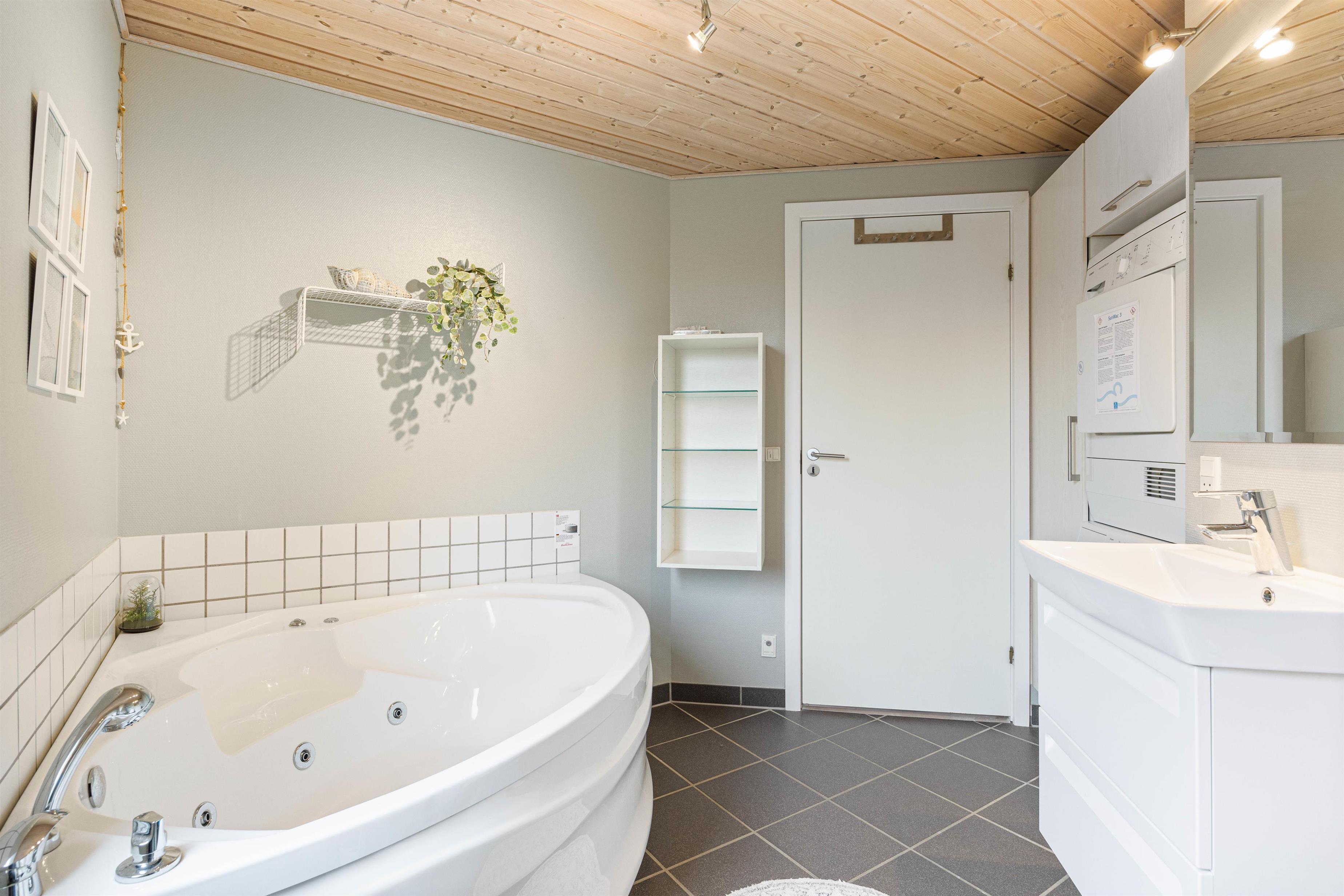 The bathroom features a washing machine and tumble dryer, allowing you to pack lighter for your holiday. There's also a whirlpool in the bathroom, perfect for relaxing after a long walk.