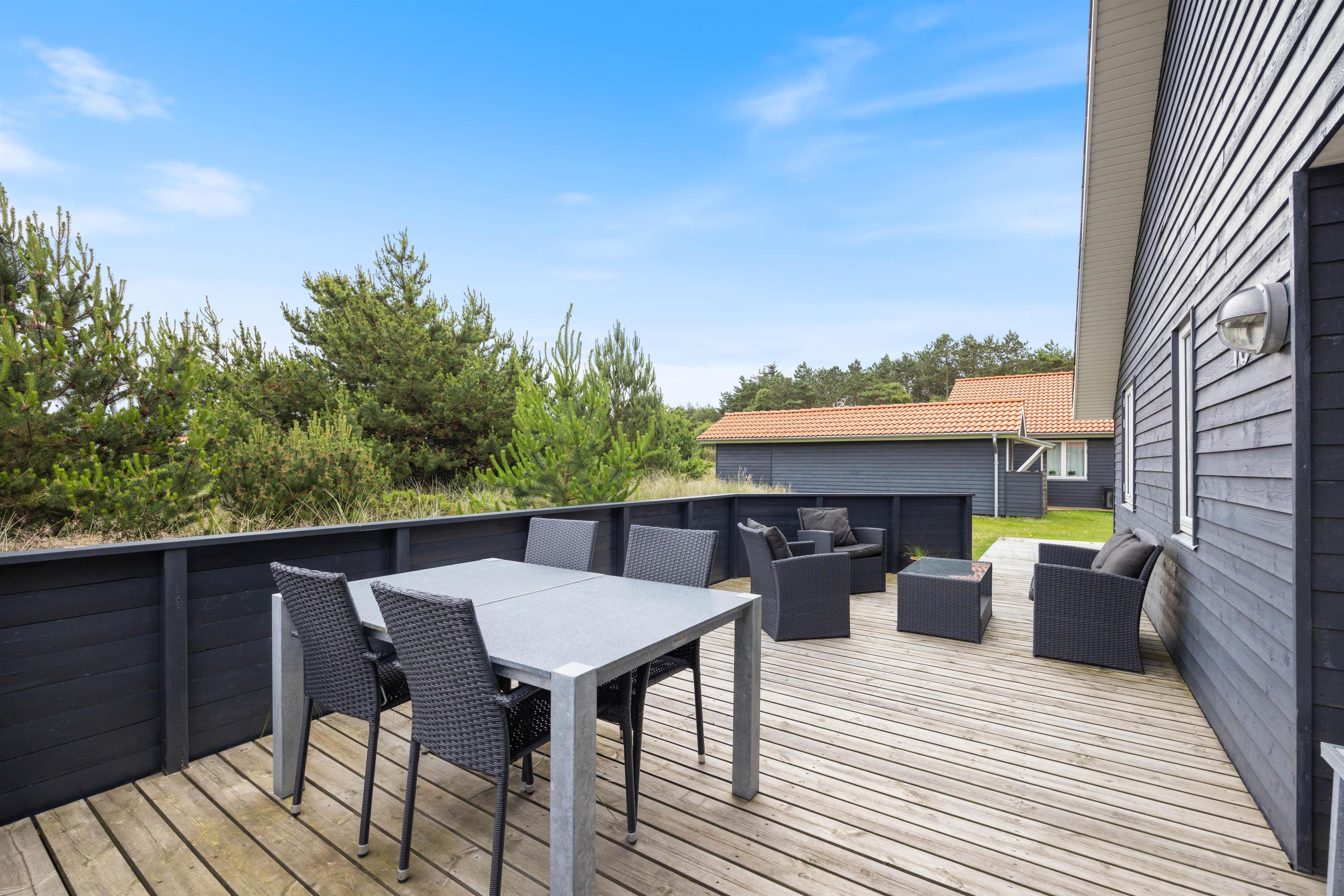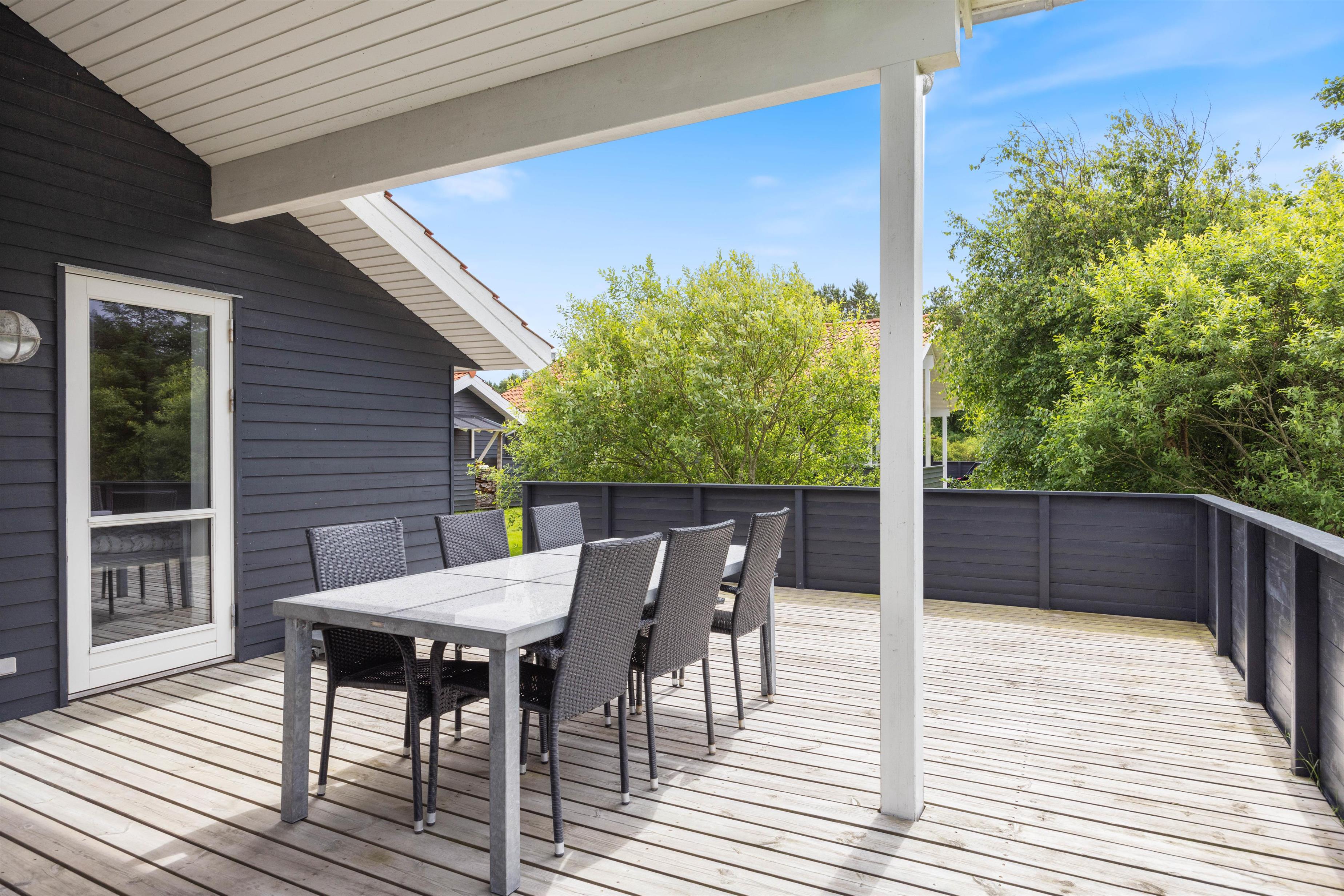 Whether you prefer sun or shade, this holiday home's terraces cater to all preferences. Enjoy your morning coffee on the covered terrace or relax with a good book on the screened terrace. The open terrace is perfectly equipped for family barbecues and cosy evening gatherings with family or friends.