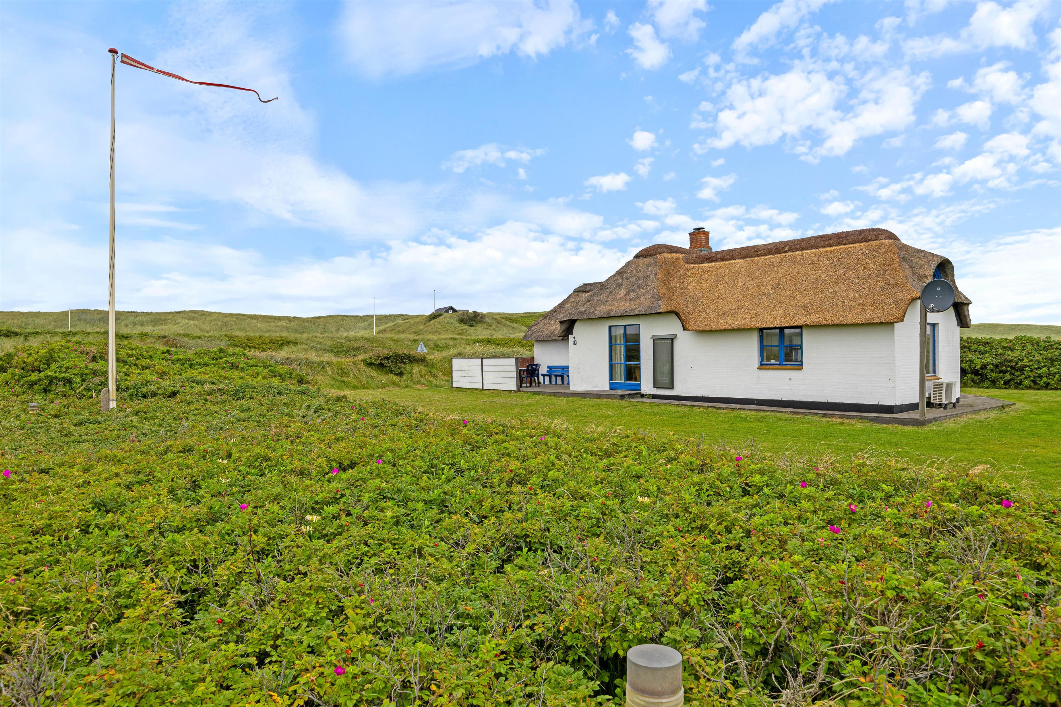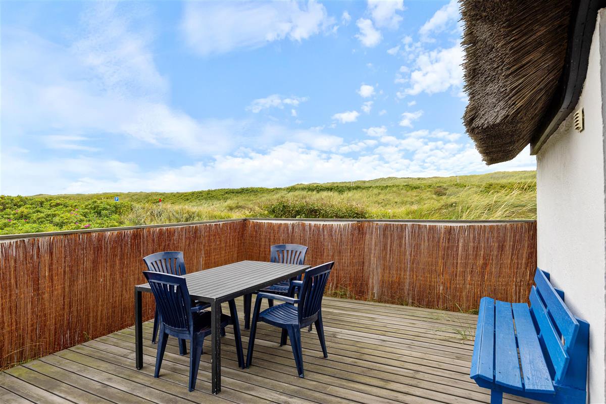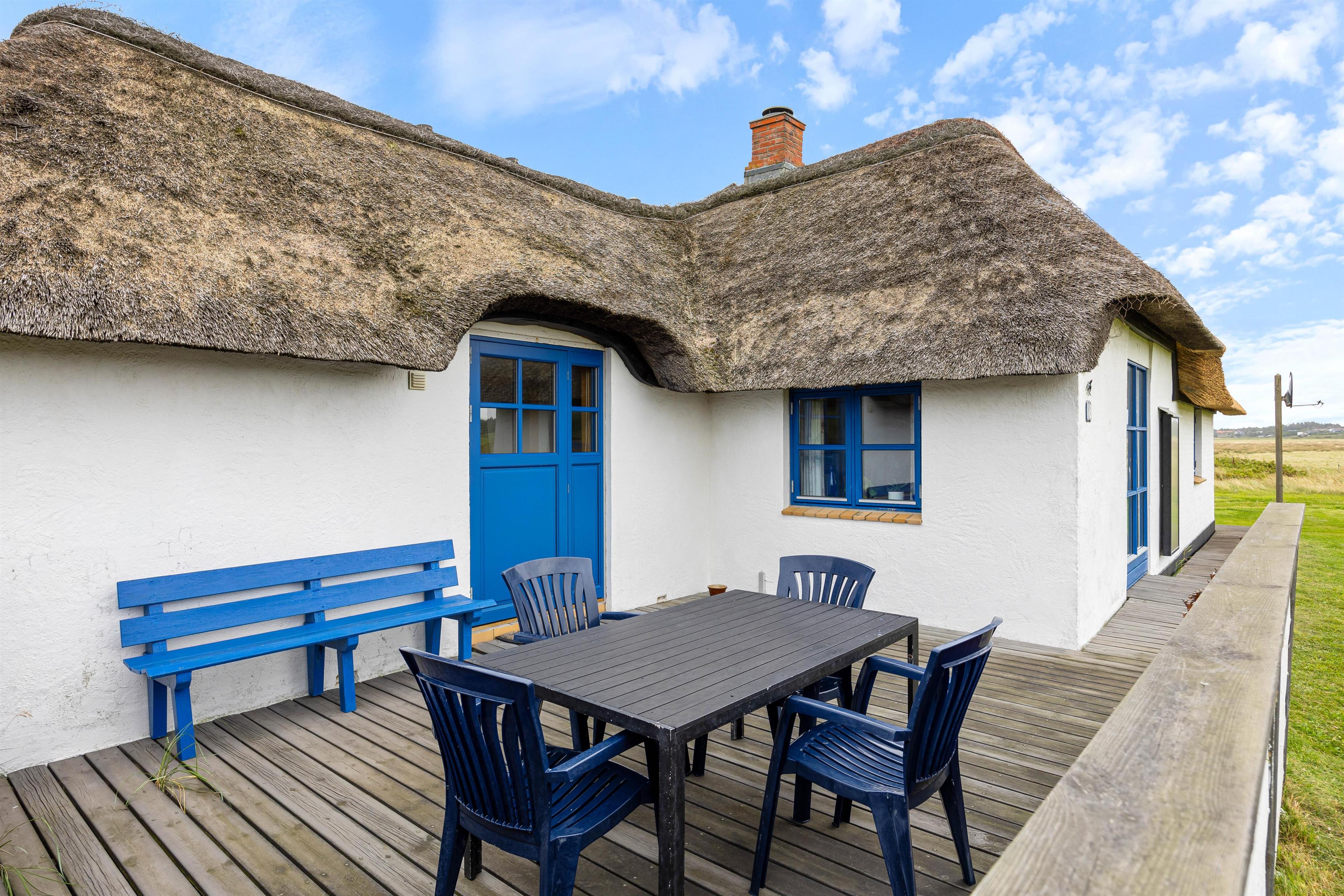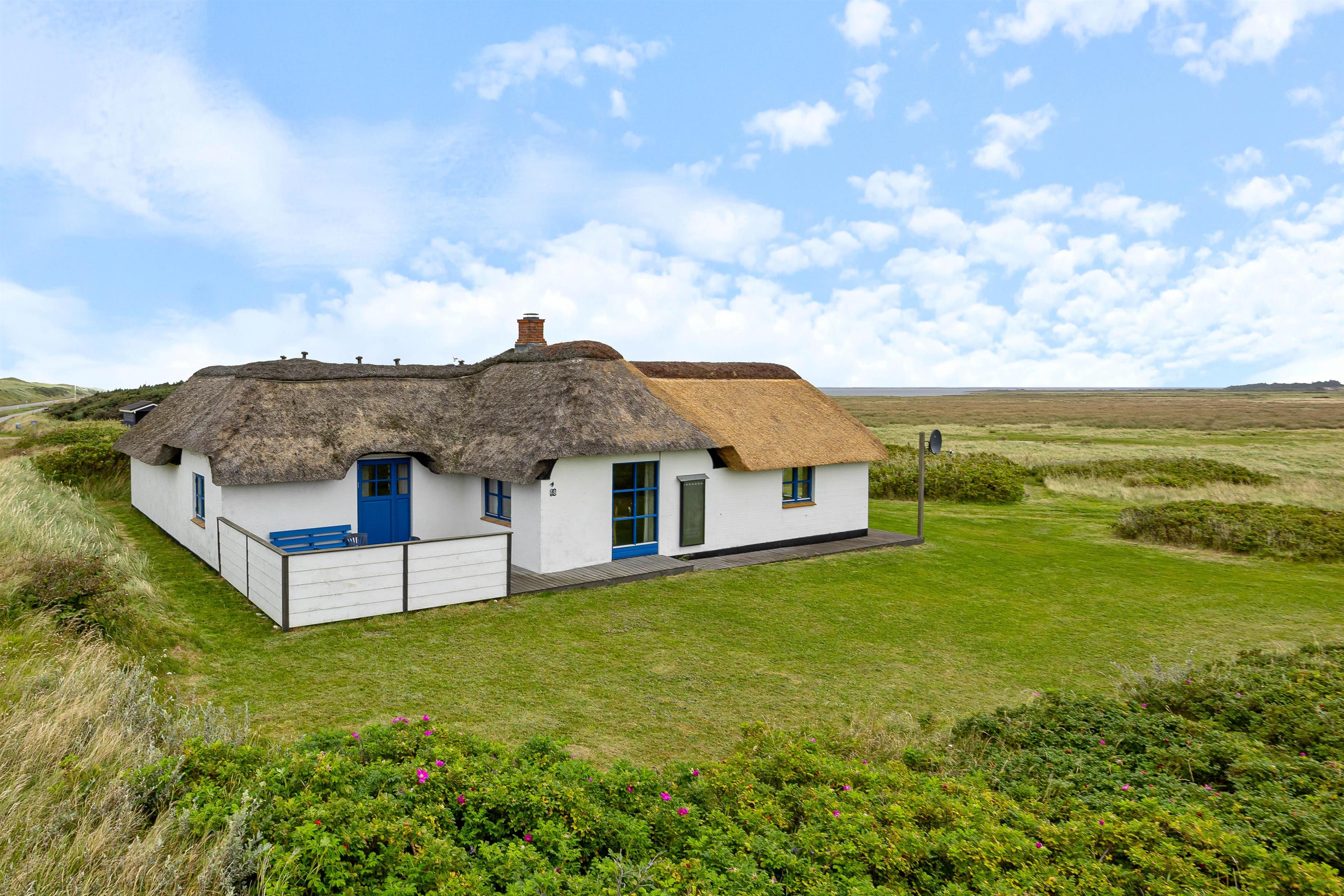 You'll be welcomed by this thatched holiday home with its white facade and distinctive blue-painted windows and doors. Inside, the holiday home offers the epitome of comfort. The kitchen features a dishwasher to handle the cleaning whilst you recharge your batteries with a long walk along the North Sea. After being refreshed by the sea air, you can light the wood-burning stove and listen to the crackling of the fire.