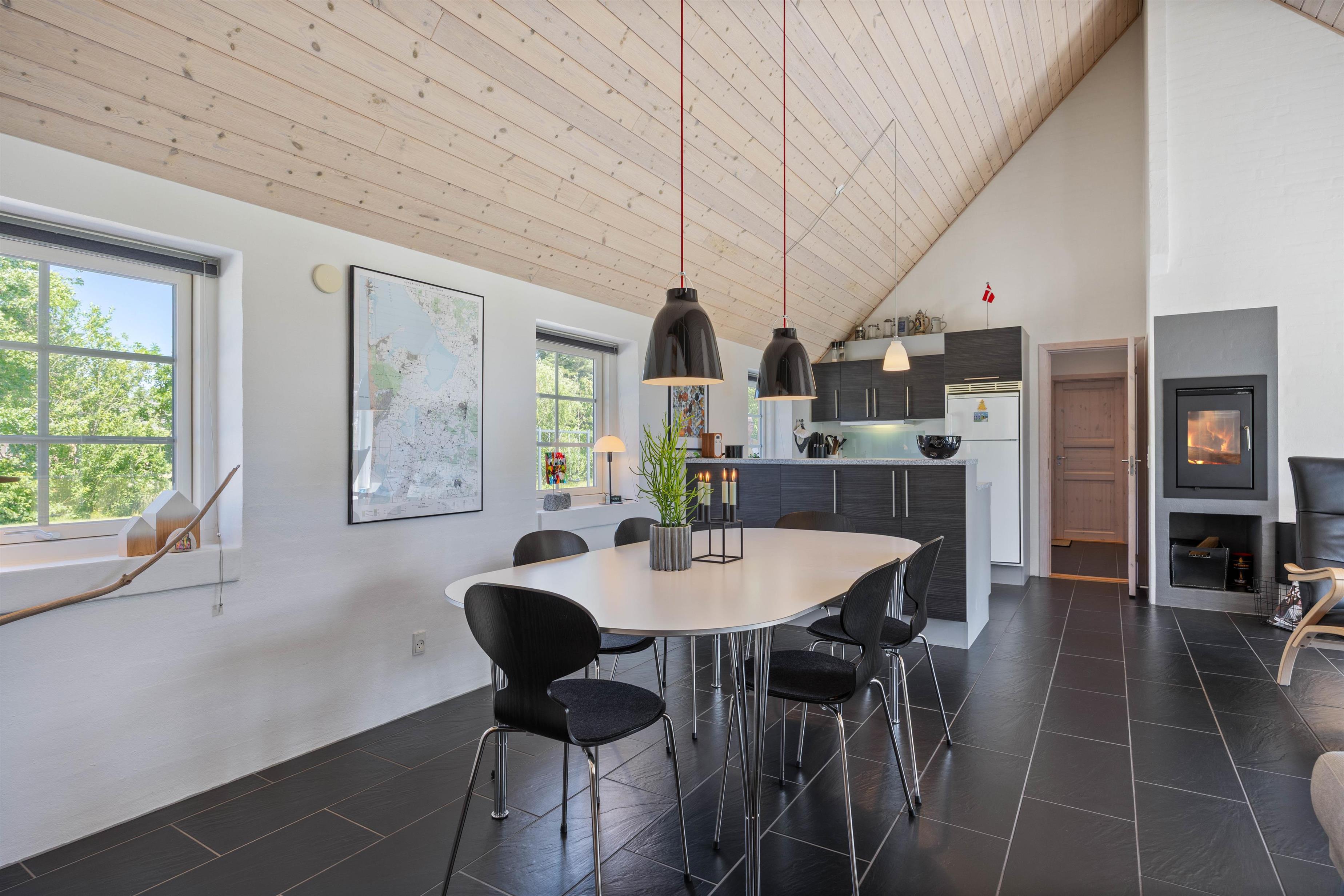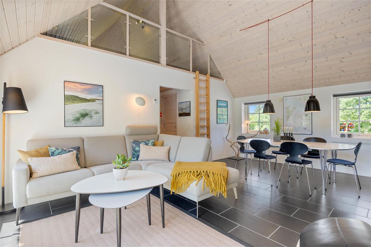 Das einladende offene Wohnkonzept verbindet Küche, Essbereich und Wohnzimmer nahtlos miteinander und bietet euch so eine wundervolle Gelegenheit für gemeinsame Stunden. Die Küche ist mit modernen Annehmlichkeiten ausgestattet, darunter eine Spülmaschine, die den Abwasch zum Kinderspiel macht. So bleibt euch mehr Zeit, um die Vorzüge eures Urlaubs zu genießen und die Umgebung zu erkunden. Der großzügige Raum wird von einem charmanten Holzofen dominiert, der nicht nur an kühleren Tagen für wohlige Wärme sorgt, sondern auch eine behagliche Atmosphäre schafft.