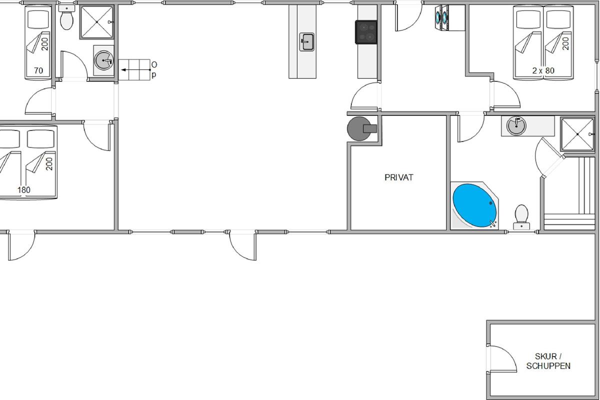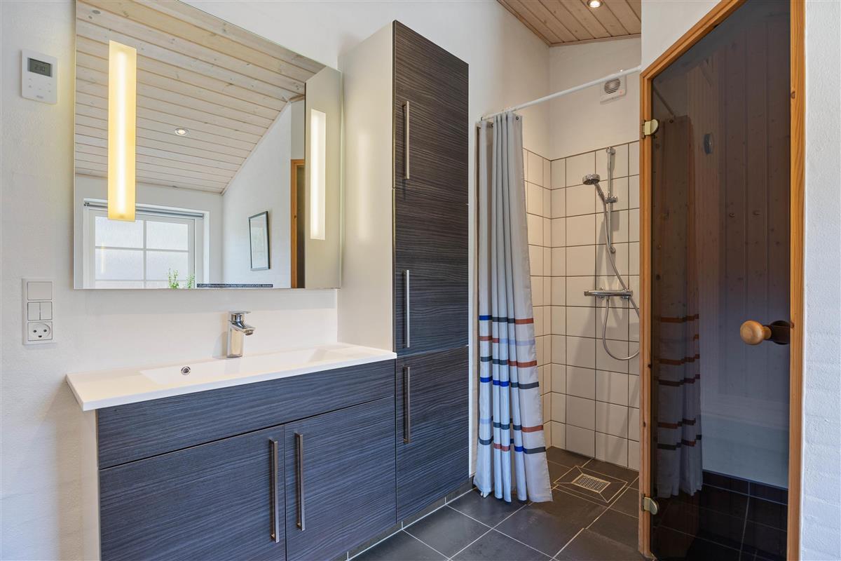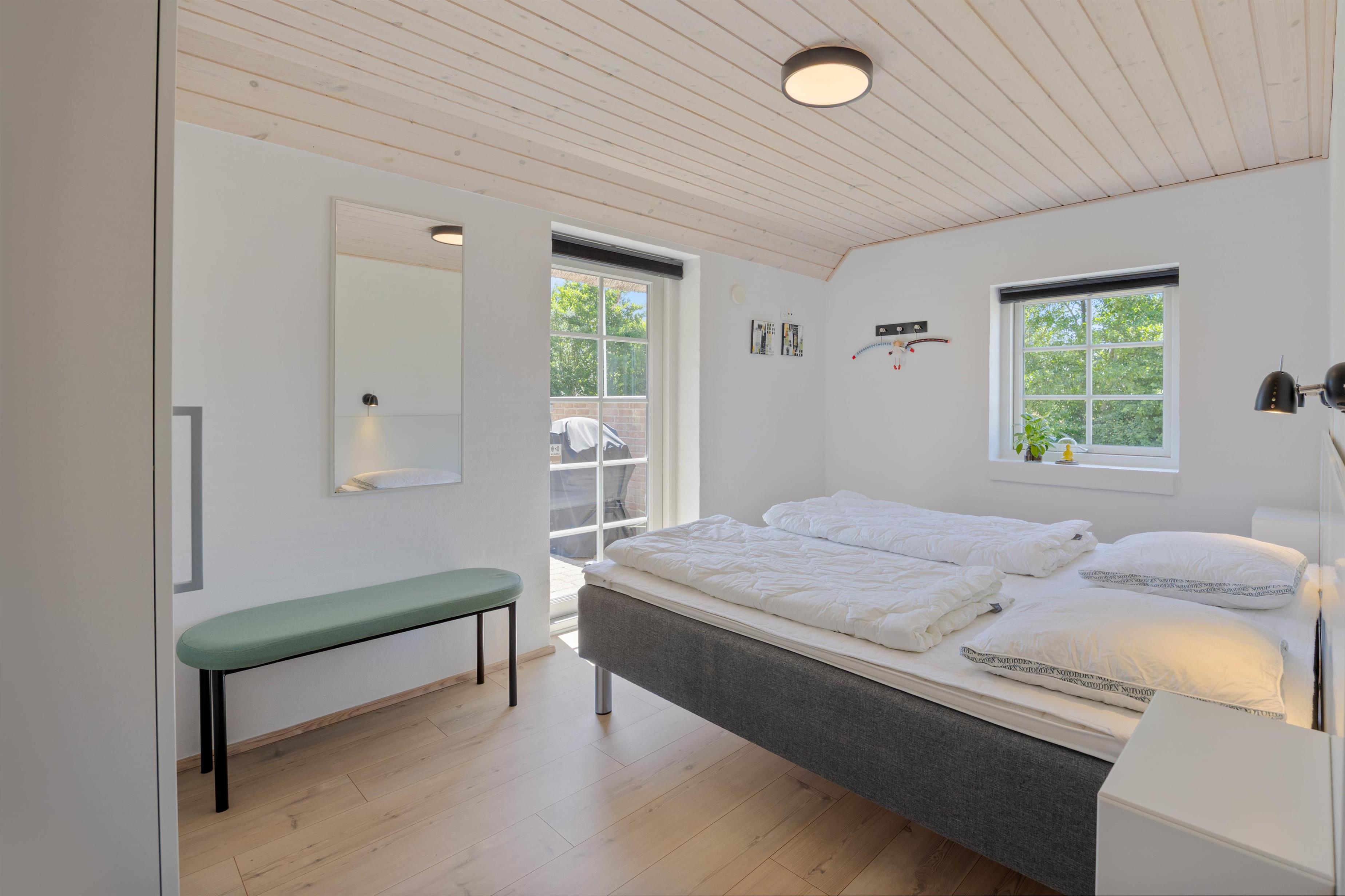 Das Ferienhaus verfügt über drei Schlafzimmer, die mit zwei Doppelbetten und zwei Einzelbetten ausgestattet sind. Diese Anordnung ermöglicht einer Gruppe von bis zu sechs Personen eine erholsame Nachtruhe. Zwei Badezimmer stehen euch zur Verfügung, beide sind mit einer Fußbodenheizung ausgestattet ist – ein Detail, das für zusätzlichen Komfort sorgt und morgendliche Kälte verbannt. In einem der Badezimmer befindet sich die hauseigene Sauna, hier könnt ihr euch nach einem langen Strandspaziergang, schön entspannen. Damit ihr beim Packen zu Hause keine Probleme habt, stehen euch im Ferienhaus eine Waschmaschine und ein Trockner zu Verfügung, also braucht ihr nur eure Lieblingskleidung.