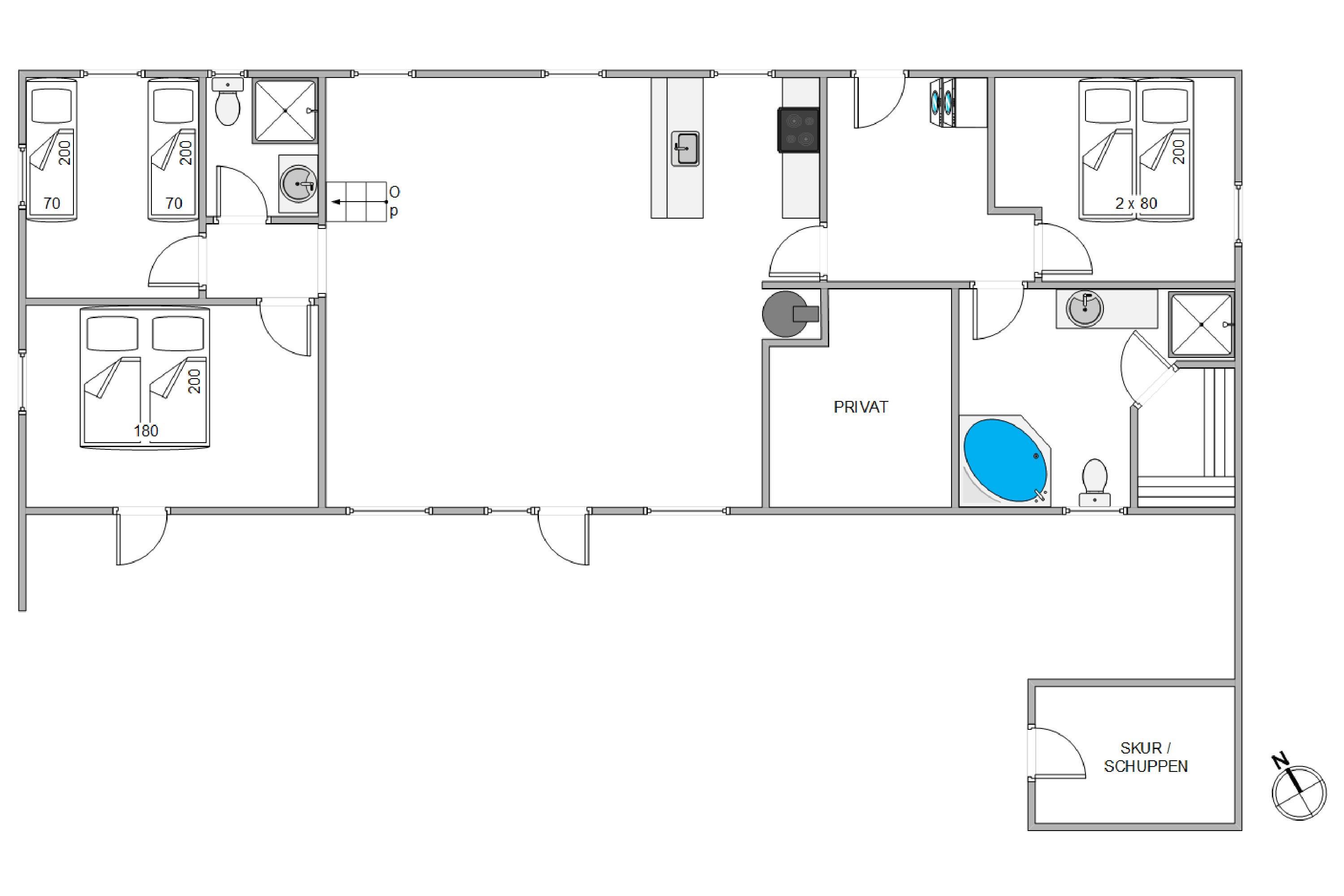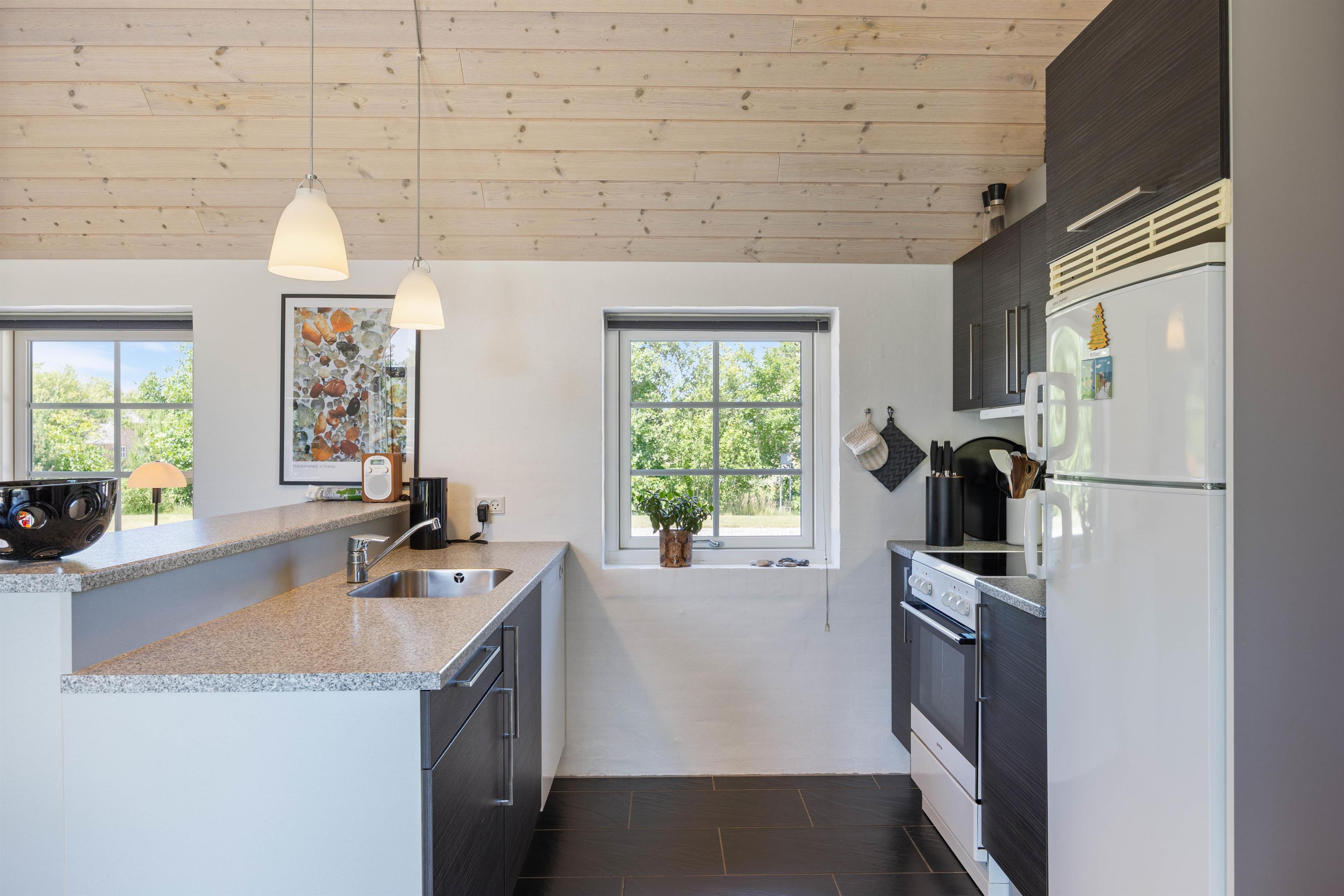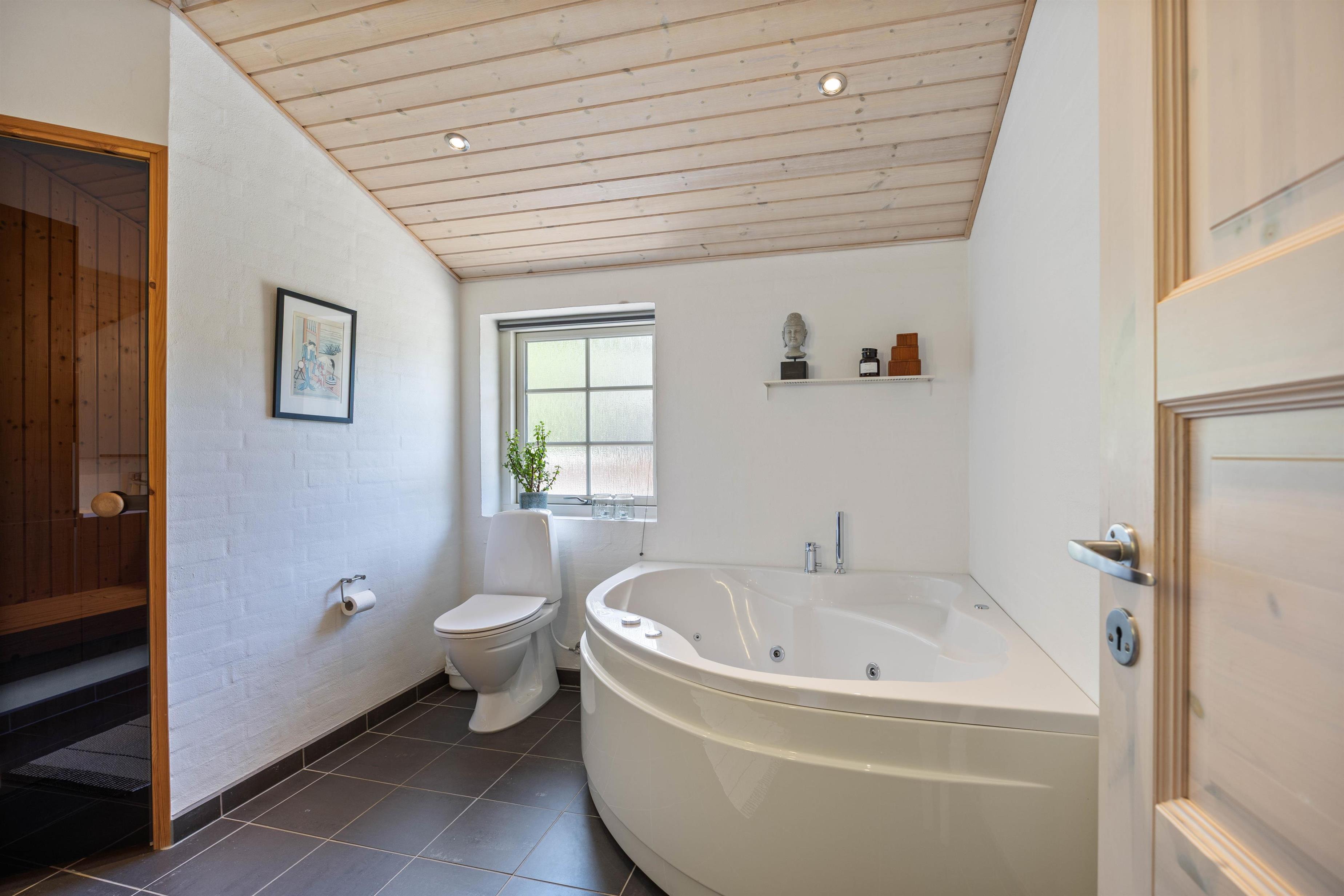 Das Ferienhaus verfügt über drei Schlafzimmer, die mit zwei Doppelbetten und zwei Einzelbetten ausgestattet sind. Diese Anordnung ermöglicht einer Gruppe von bis zu sechs Personen eine erholsame Nachtruhe. Zwei Badezimmer stehen euch zur Verfügung, beide sind mit einer Fußbodenheizung ausgestattet ist – ein Detail, das für zusätzlichen Komfort sorgt und morgendliche Kälte verbannt. In einem der Badezimmer befindet sich die hauseigene Sauna, hier könnt ihr euch nach einem langen Strandspaziergang, schön entspannen. Damit ihr beim Packen zu Hause keine Probleme habt, stehen euch im Ferienhaus eine Waschmaschine und ein Trockner zu Verfügung, also braucht ihr nur eure Lieblingskleidung.