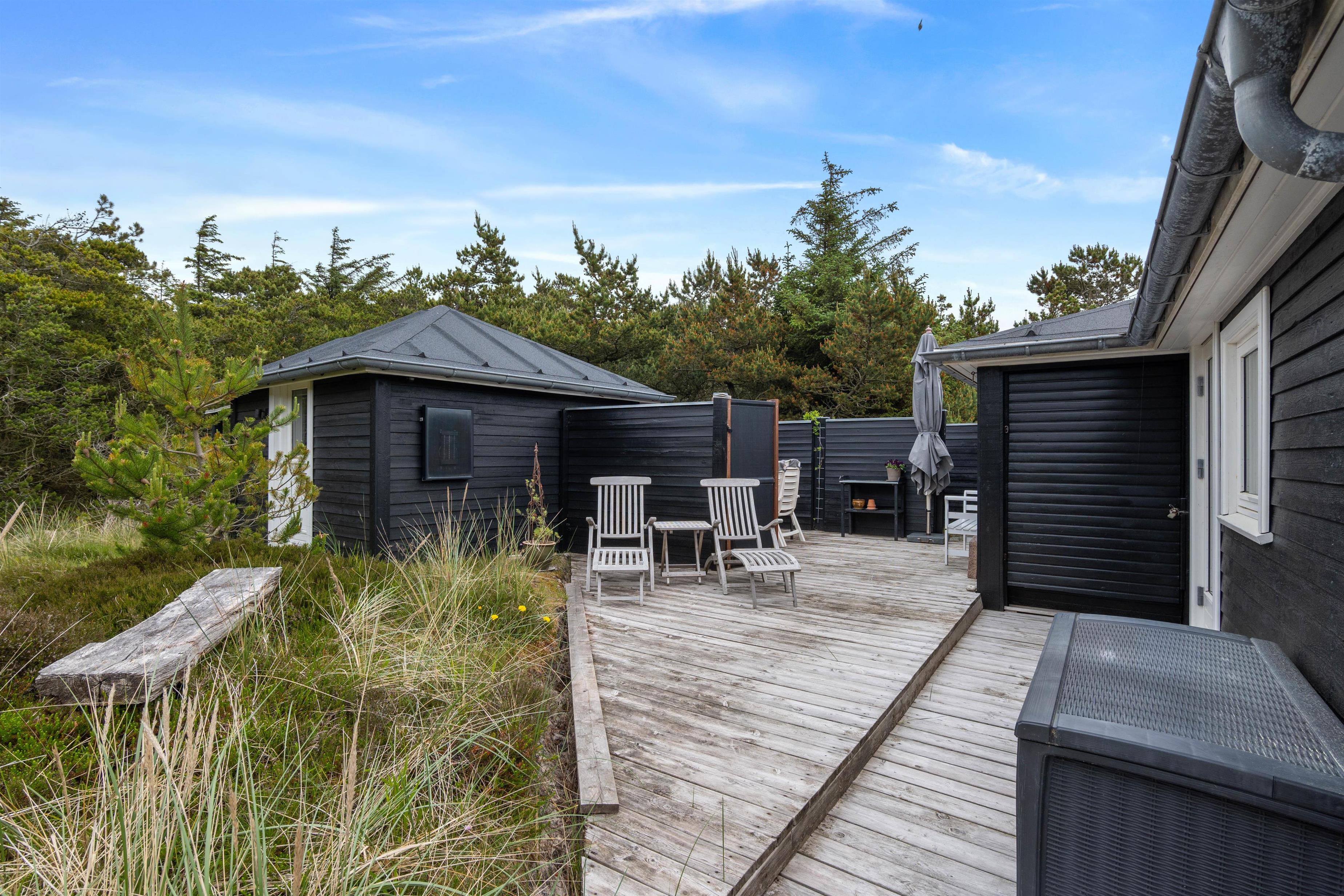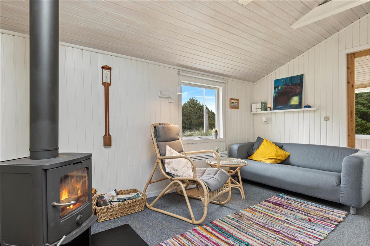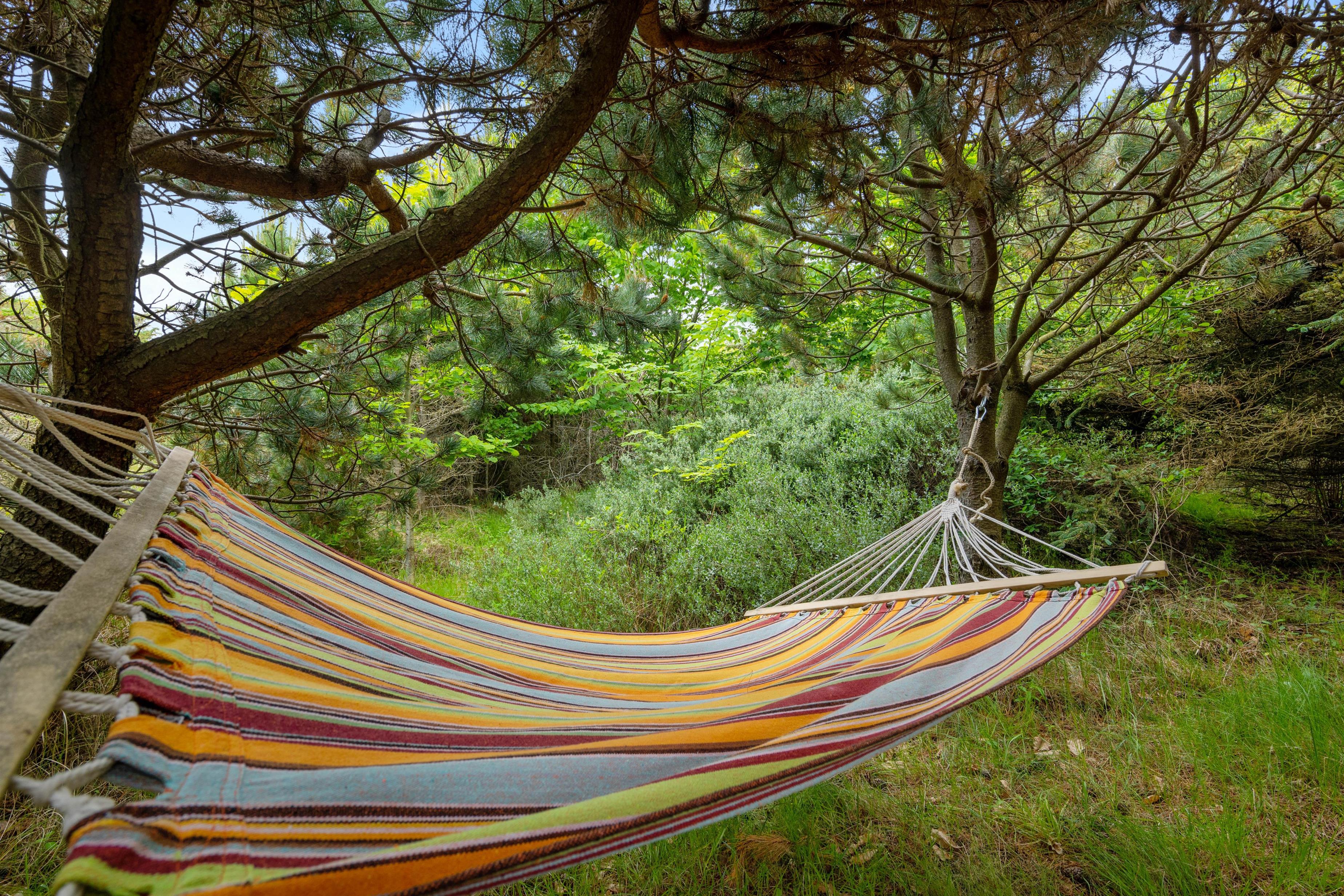 This beautiful holiday home awaits you on a natural plot surrounded by trees, just 400 metres from the broad sandy beaches and crashing waves of the North Sea. Located at Bjerghuse 106 in Fjand, this bright holiday home comfortably accommodates up to 5 people - the ideal choice for a group of friends or a family. The holiday home features a wood-burning stove, conservatory and garden hammock.
