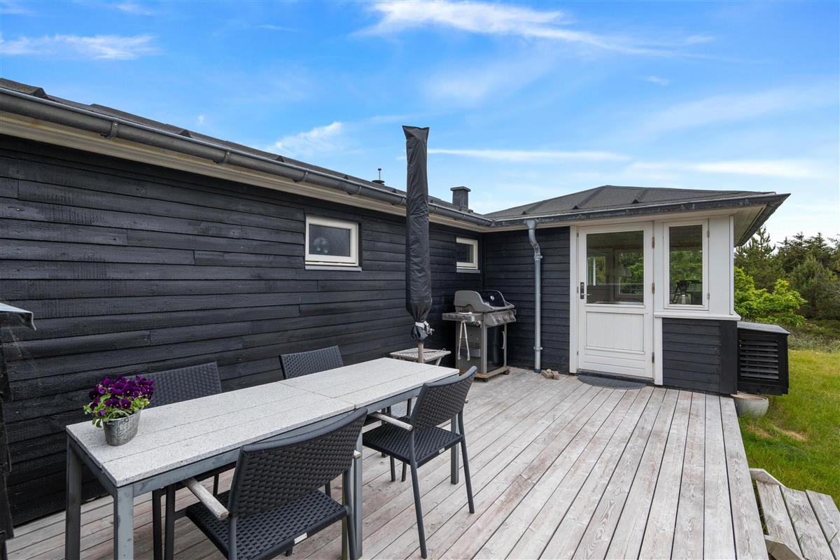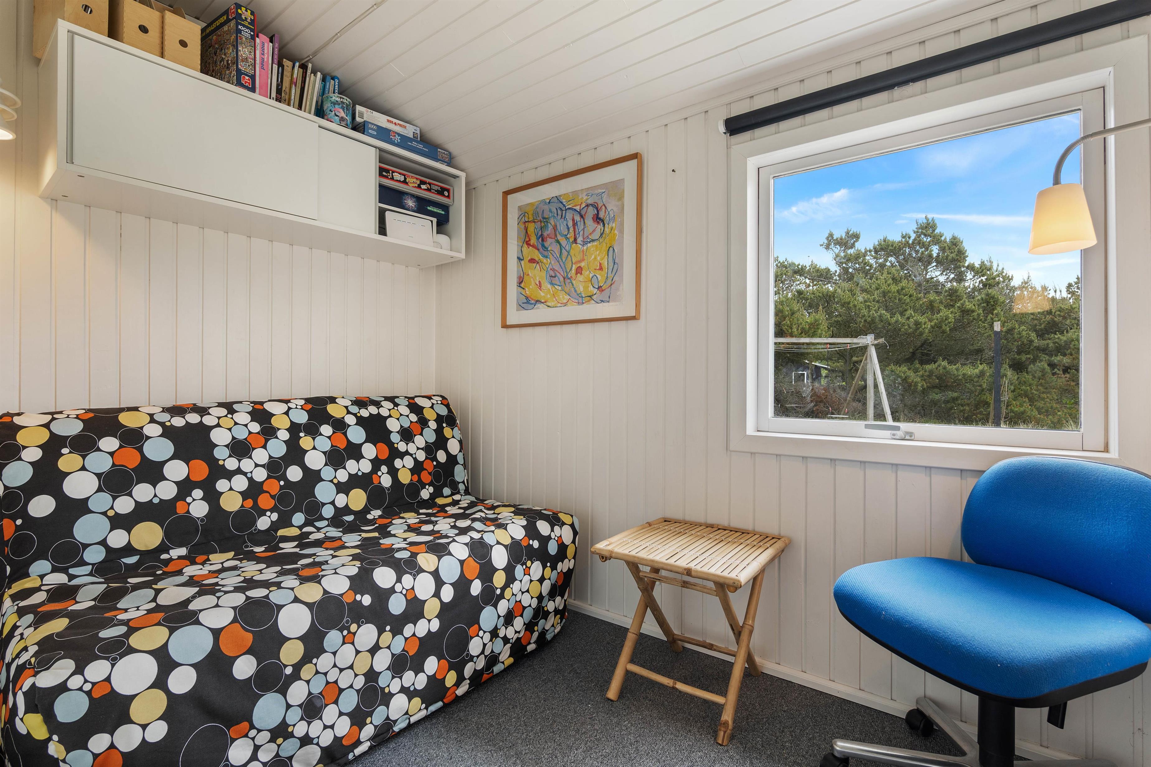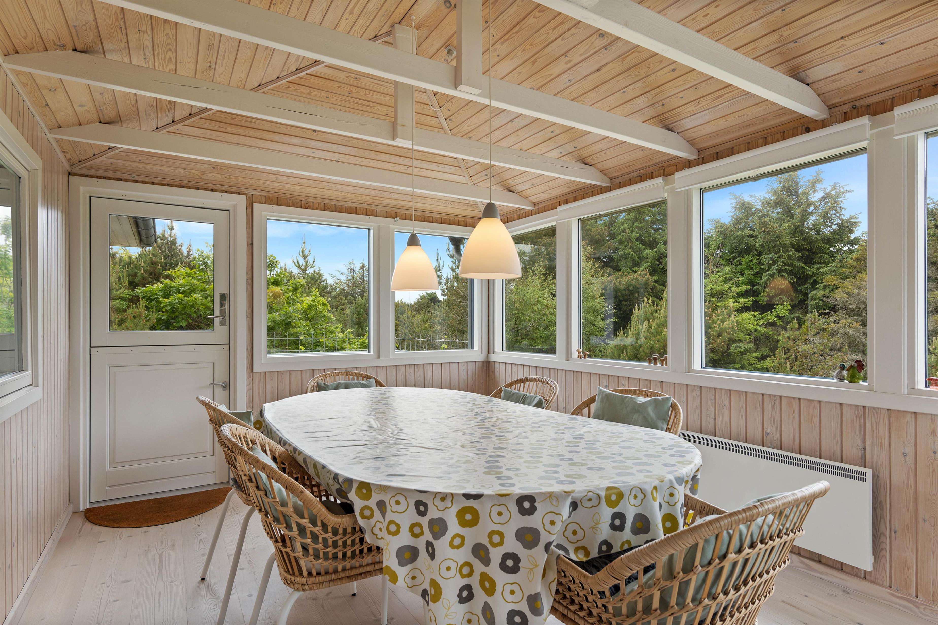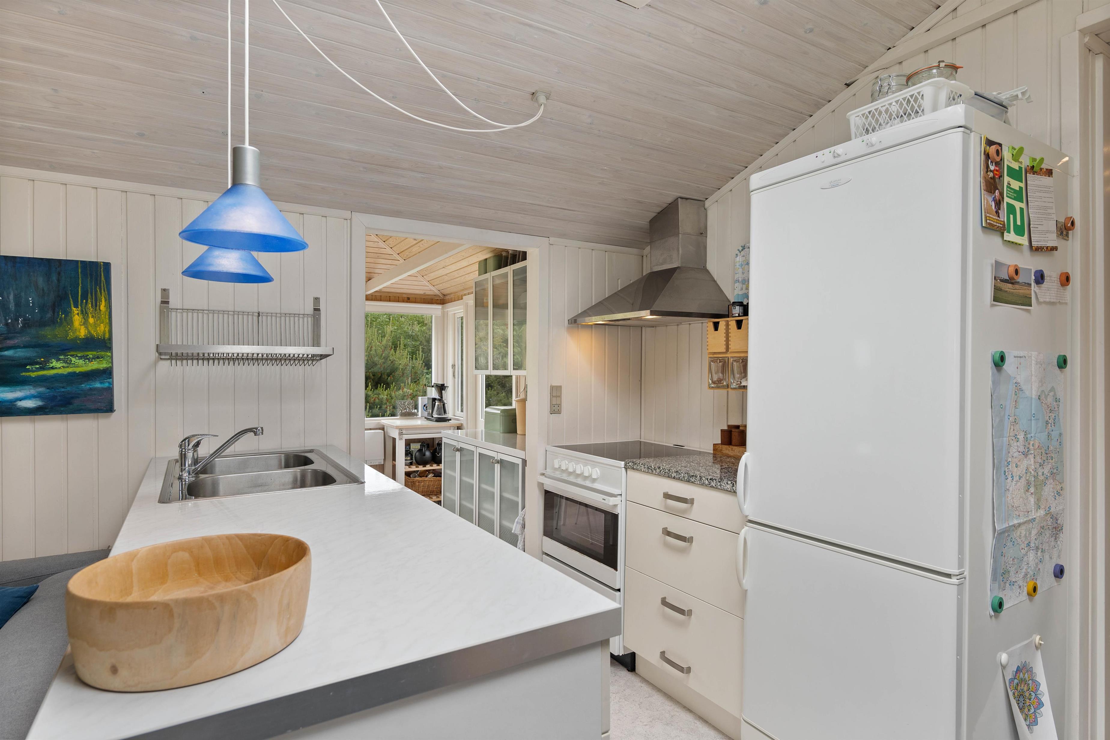 This beautiful holiday home awaits you on a natural plot surrounded by trees, just 400 metres from the broad sandy beaches and crashing waves of the North Sea. Located at Bjerghuse 106 in Fjand, this bright holiday home comfortably accommodates up to 5 people - the ideal choice for a group of friends or a family. The holiday home features a wood-burning stove, conservatory and garden hammock.