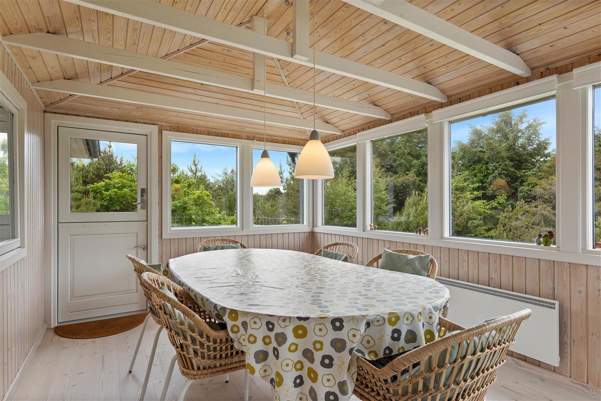 From the living room, you can access the holiday home's lovely conservatory, where you can spend many relaxing hours during your stay. From here, you can enjoy views of the garden and the beautiful natural surroundings.