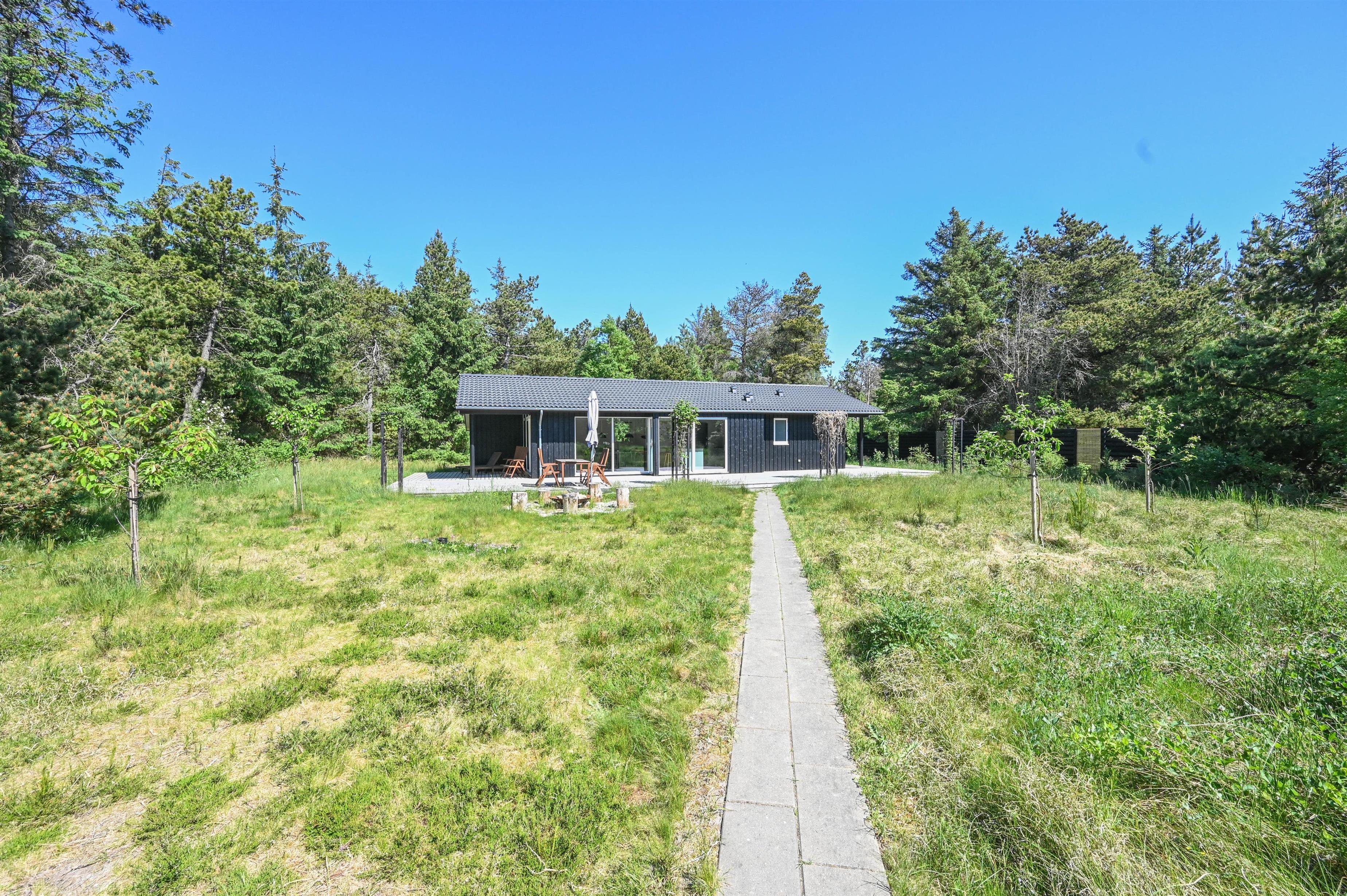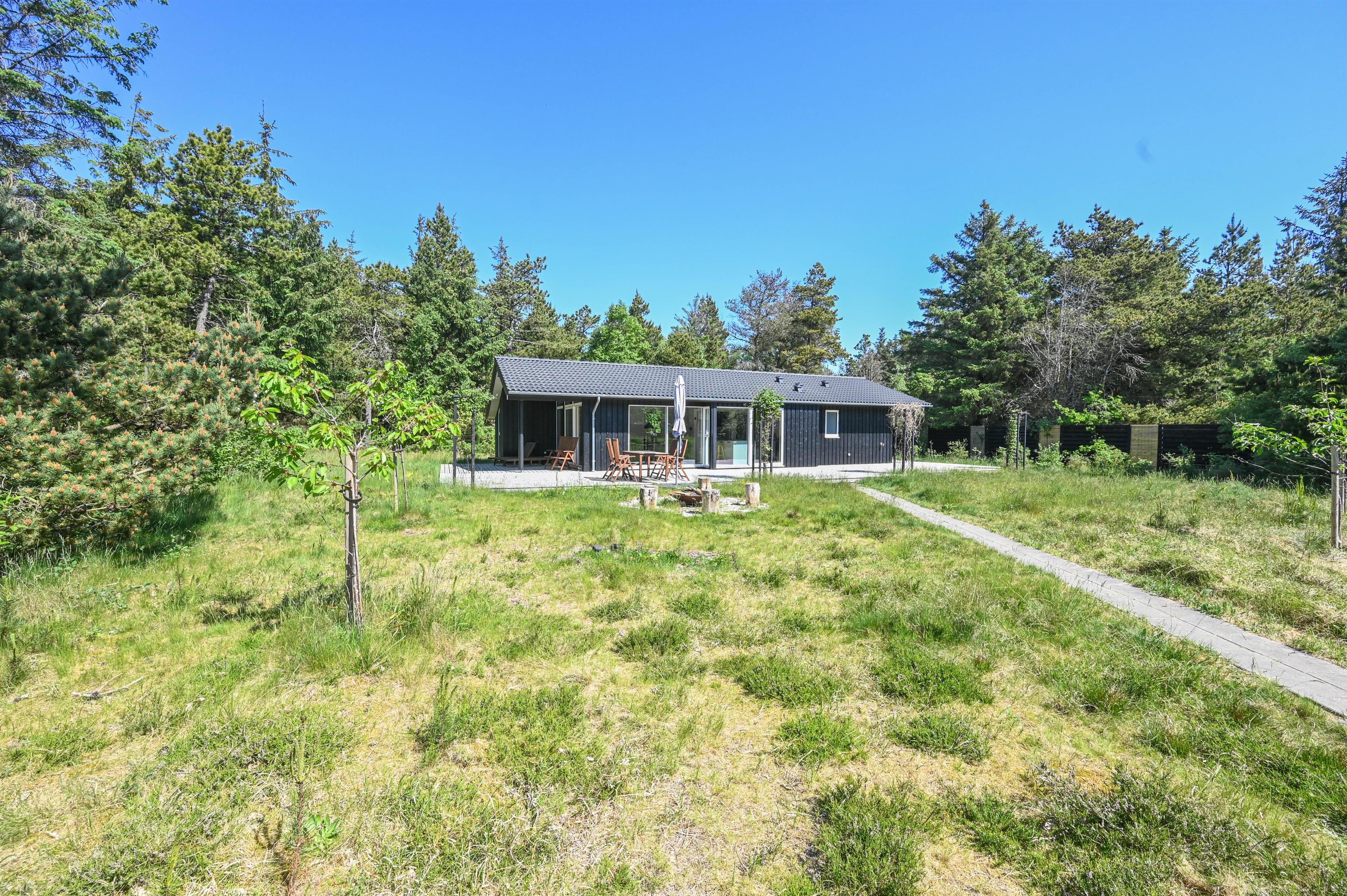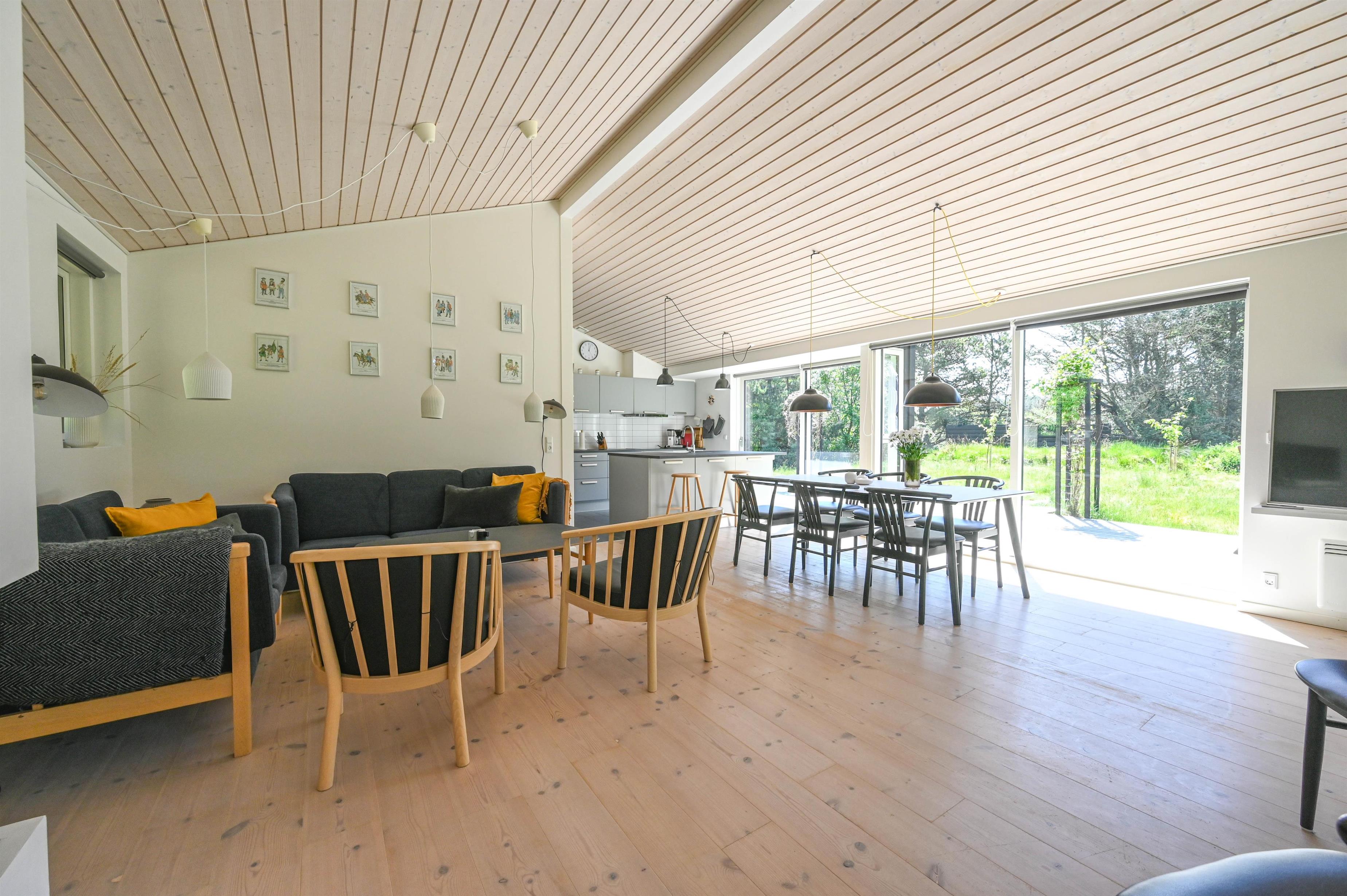 The furnishings feature lots of light-coloured wood in a classic Scandinavian style. Here you live on 98 square metres - the house is situated on a 5,450 square metre natural plot overgrown with tall grass. You are right next to the Husby Klitplantage with a great forest playground and fantastic cycling and hiking trails. The North Sea and fjord are also within easy reach.