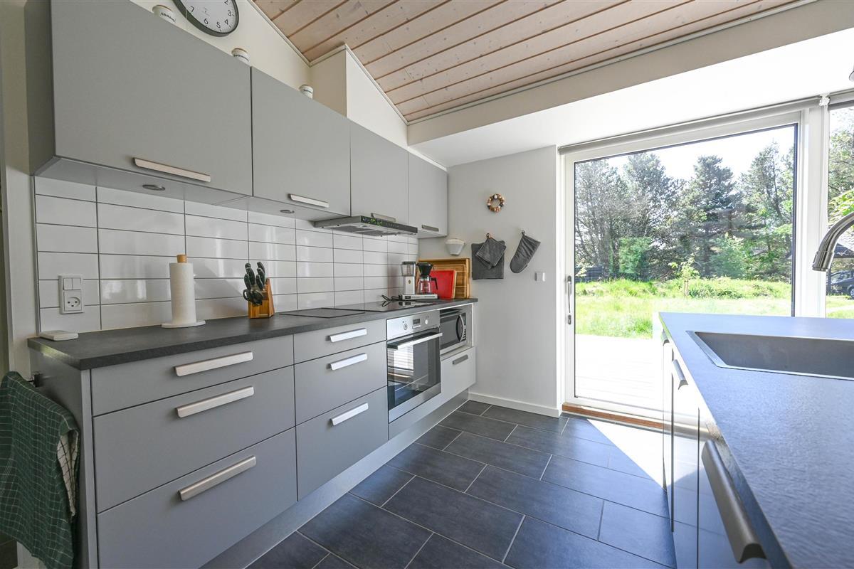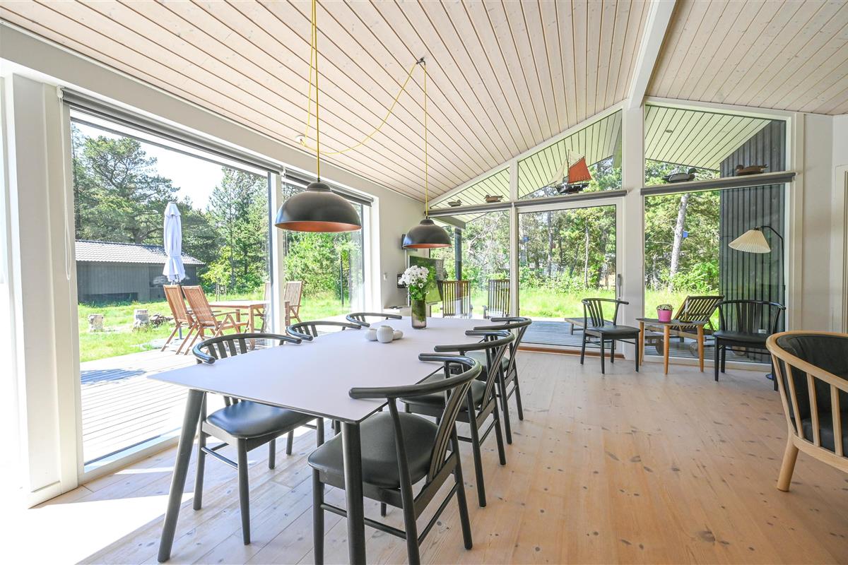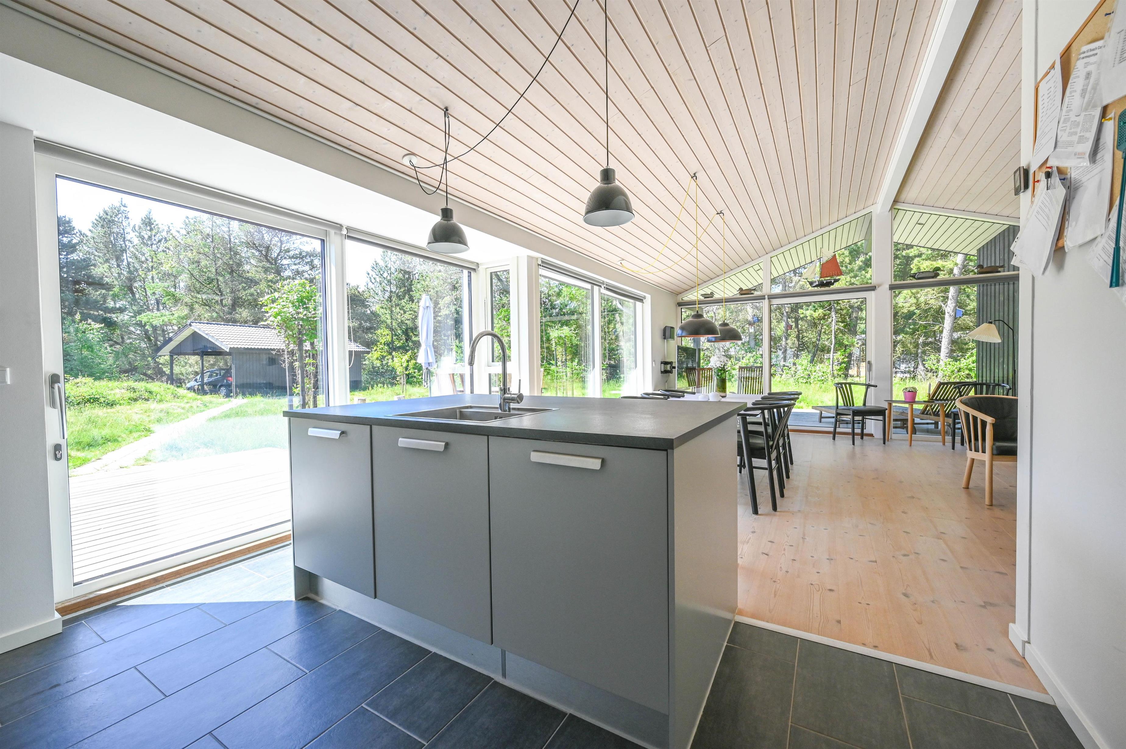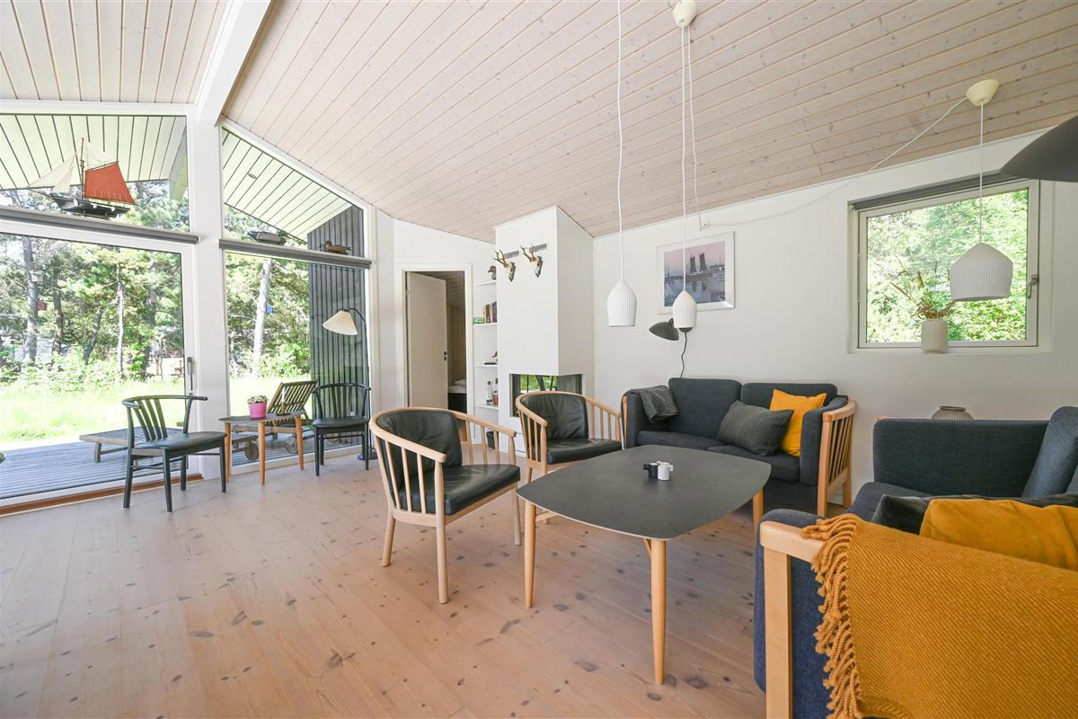 The furnishings feature lots of light-coloured wood in a classic Scandinavian style. Here you live on 98 square metres - the house is situated on a 5,450 square metre natural plot overgrown with tall grass. You are right next to the Husby Klitplantage with a great forest playground and fantastic cycling and hiking trails. The North Sea and fjord are also within easy reach.