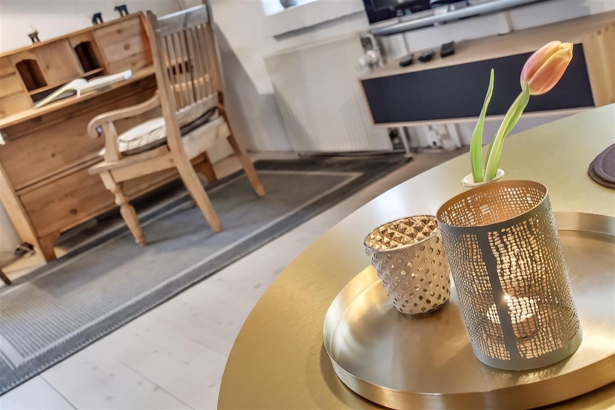 Layout: Entrance area with wardrobe and small bench, bathroom with shower, pretty country-style kitchen, open to the dining room. The dining room is equipped with a large dining table, fireplace and a sofa. From here you can reach the fenced terrace through the Klöntür. The living room welcomes you with a comfortable corner sofa, armchair and another sofa. Antique furniture can be found everywhere in the house. The house has exposed ceiling beams and wooden floors except for the bathroom and hallway. There are two cosy bedrooms, one with a double bed and one with two single beds.