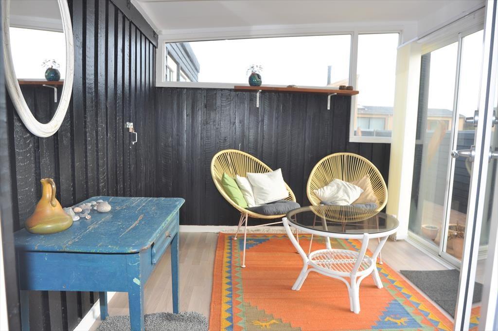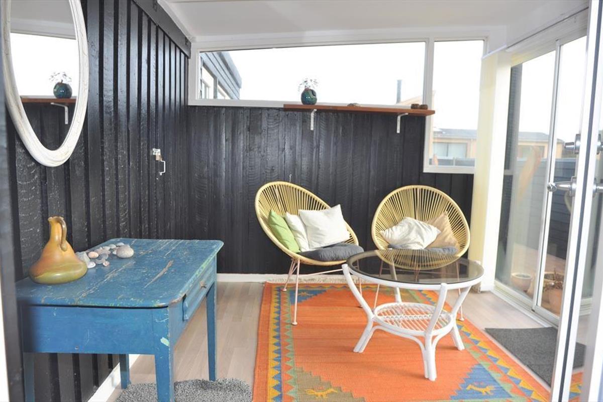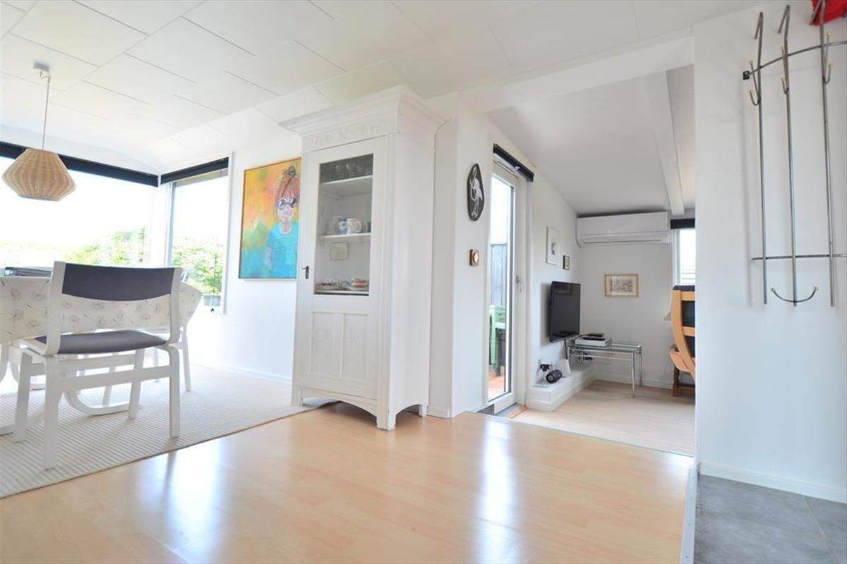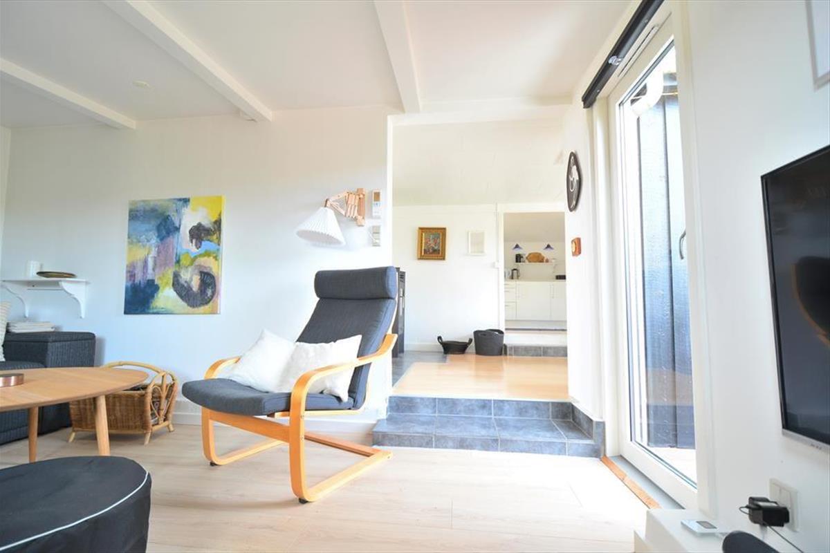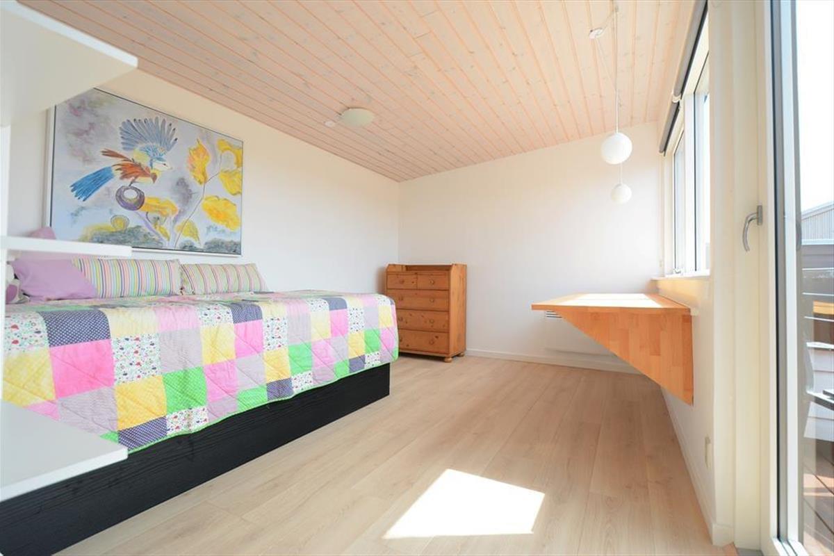 Het terras is een heerlijke plek om van de zon te genieten, te ontspannen of samen tijd door te brengen – het hele jaar door kun je hier de frisse zeelucht voelen en luisteren naar het geluid van de golven. Aan de andere kant van het huis is een volledig afgesloten terras – ideaal voor je ochtendkoffie of een rustig moment in de zon. Samen met de woonkamer vormen de terrassen het perfecte kader voor ontspannen en gezellige momenten, binnen en buiten.