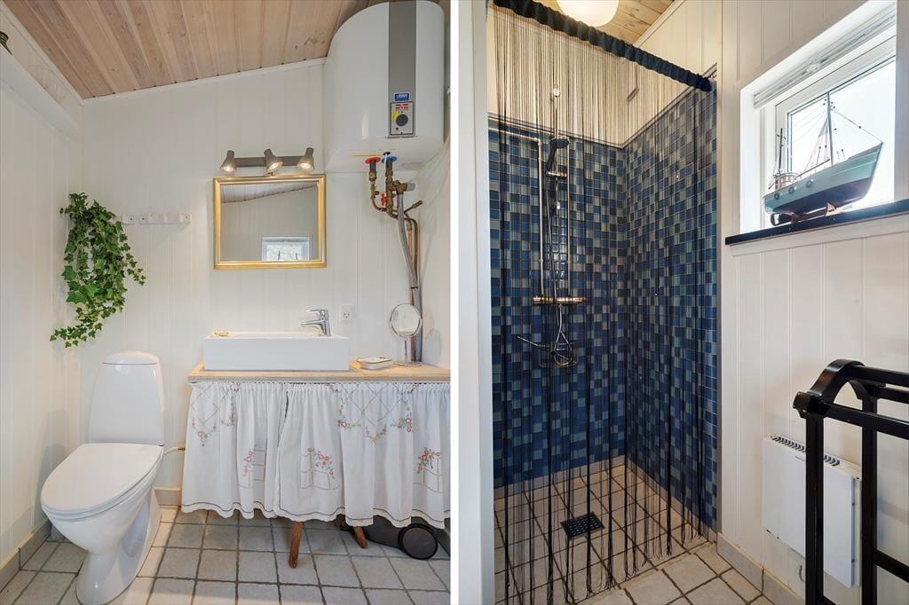Du träumst davon, vom beruhigenden Meeresrauschen in den Schlaf gewiegt zu werden? Dann ist dieses reizende gepflegte Strandhaus deine perfekte Wahl! Dein Ferienhaus ist der Inbegriff von Ruhe und Gemütlichkeit. Der helle und einladende Stil bildet einen tollen Rahmen für pure Erholung und Entspannung. Das Erdgeschoss begrüßt dich mit einer hellen Küche inklusive Essplatz, an dem du mit deinen Lieben in geselliger Runde die Mahlzeiten genießt. Der mit einer Wärmepumpe und einem Fernseher ausgestattete, komfortabel möblierte Wohnraum lädt nach dem Essen zum Entspannen ein. Darüber hinaus umfasst das Erdgeschoss einen gemütlichen Schlafraum mit einem schmalen Doppelbett. Im Badezimmer sorgen eine Fußbodenheizung und eine Dusche für angenehmen Komfort. Im Obergeschoss, bei dem es sich vielmehr um einen eingezogenen Hängeboden handelt, erwartet dich ein offener Schlafraum mit einem Doppelbett. Vom Wohnraum aus gelangst du hinaus auf eine große, geschlossene Terrasse, die zu tollen Tagen in der Sonne und zu vielen stimmungsvollen Abenden vor hübscher Kulisse einlädt. Dieses Ferienhaus bietet dir Urlaubstage, die im Zeichen von Ruhe, Komfort und der Nähe zum Meer stehen.