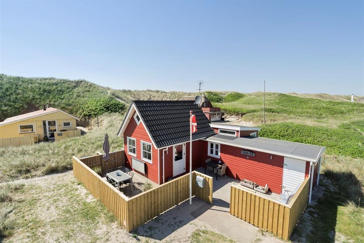 Auf deiner schönen, geschlossenen Terrasse schaffen komfortable Gartenmöbel, Liegestühle und ein Sonnenschirm einen perfekten Rahmen für entspannte Stunden unter freiem Himmel. Dein Ferienhaus liegt idyllisch am Fuße der hübschen Dünenkette von Bjerghuse. Binnen kürzester Zeit erreichst du den hinter den Dünen gelegenen schönen Badestrand, der sich bestens für lange Strandspaziergänge eignet und jede Menge Badevergnügen und Strandspaß verspricht. Du befindest dich in Bjerghuse mitten in der Natur und wirst mit viel frischer Seeluft und herrlicher Ruhe verwöhnt. Ganz gleich, ob du dich auf deiner Terrasse erholen, im Meer baden oder die Umgebung erkunden möchtest, all dies ist bei diesem Urlaubsdomizil uneingeschränkt möglich. Entspannung und Aktivität gehen hier Hand in Hand.