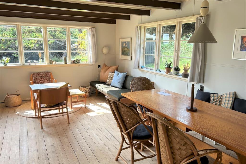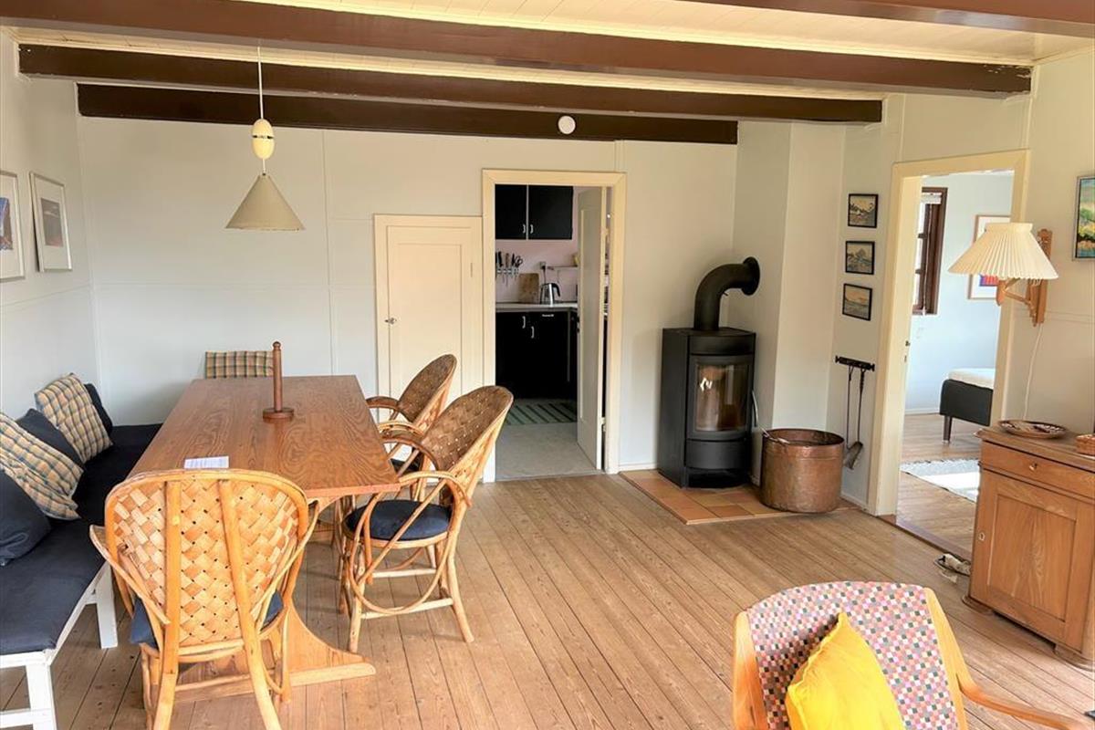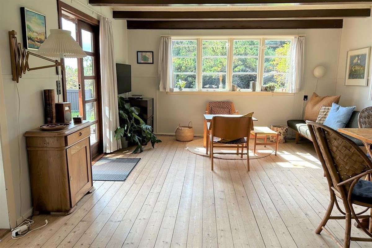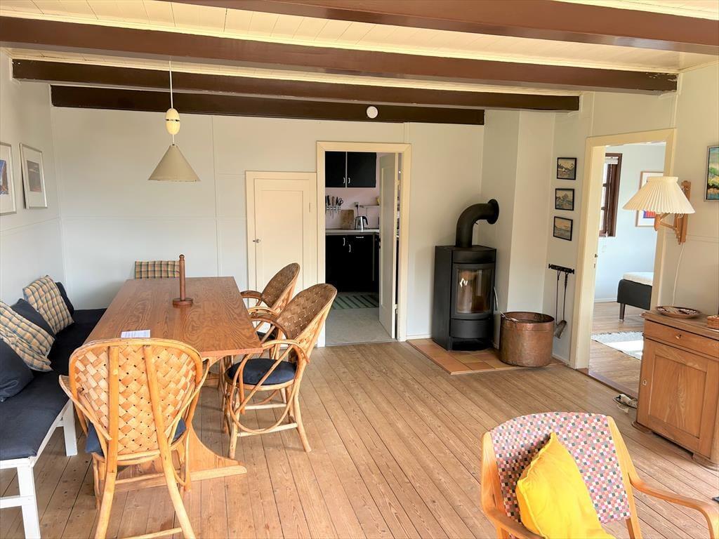 Stellen Sie sich vor, Sie wachen auf mit dem Rauschen der Nordsee und treten direkt in die Dünen hinaus – von Ihrem Gartentor aus haben Sie Ihren eigenen Weg zum Strand. Dieses charmante Ferienhaus liegt mitten in der rauen westjütländischen Natur und lädt zu Ruhe, Nähe und authentischem Ferienhausflair ein. Die hellen, einladenden Räume sind mit klassischen Möbeln eingerichtet, die Wärme und Persönlichkeit ausstrahlen, und das Wohnzimmer mit Kamin lädt zu gemütlichen Stunden, Gesprächen oder zum Lesen eines guten Buches ein. Die Küche ist funktional und gut ausgestattet, sodass Sie leckere Mahlzeiten zubereiten und im offenen Essbereich genießen können. Hier finden Sie einen besonderen Rückzugsort, an dem Sie den Alltag hinter sich lassen und Meer, Heidelandschaft und Gemütlichkeit in entspannter Atmosphäre erleben können.