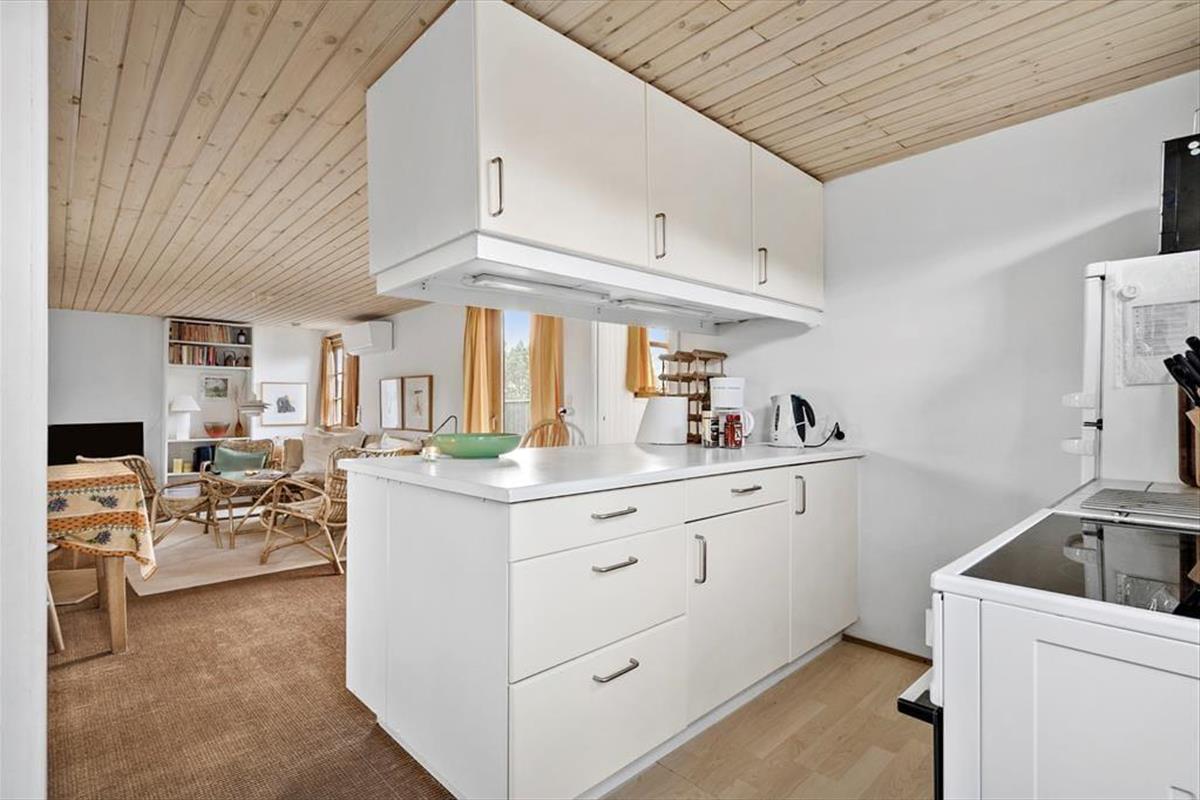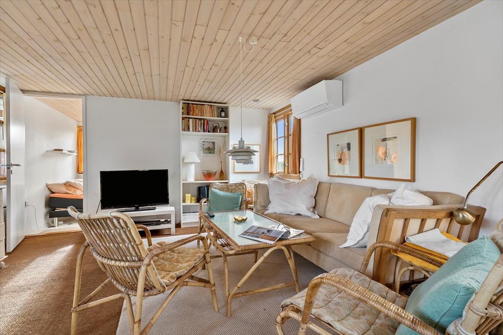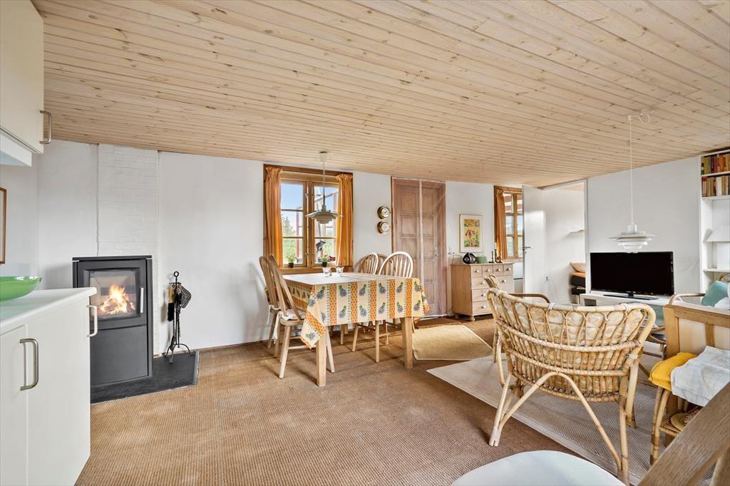 Dieses reizende Ferienhaus sorgt vom ersten Moment an dafür, das du dich komplett entspannst und förmlich spürst, wie die Hektik des Alltags von deinen Schultern abfällt. Dank der zahlreichen gemütlichen Details ist es für dich ein Leichtes, dich in Ruhe niederzulassen, tief einzuatmen und alle Viere von dir zu strecken. Die Küche ist offen mit dem Wohn- und Essbereich verbunden, sodass du zu jeder Zeit die Nähe deiner Lieben genießt. An kühlen Tagen und Abenden sorgt der im Wohnraum platzierte Kaminofen für heimelige Wärme und klassisch dänische Ferienhausatmosphäre. Stell dir nur vor, wie du es dir mit einem guten Buch oder deinem Strickzeug in der Polstersitzgruppe gemütlich machst, oder wie ihr in vergnügter Runde am Esstisch Gesellschaftsspiele spielt!