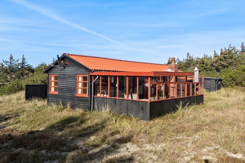 Dieses ansprechende Ferienhaus liegt mitten in der unberührten, wilden Natur der Westküste. Dein Ferienhaus ist zu allen Seiten von Büschen, Bäumen und freien Heideflächen umgeben. Begebe dich mit deinem Kaffee früh am Morgen hinaus auf die Ostterrasse und genieße die aufgehende Sonne, die den Himmel in schönste Farben taucht. Lange Urlaubstage lasst ihr am besten in gemütlicher Runde mit einem Abendessen auf der Westterrasse ausklingen - untermalt vom reizvollen Sonnenuntergang.