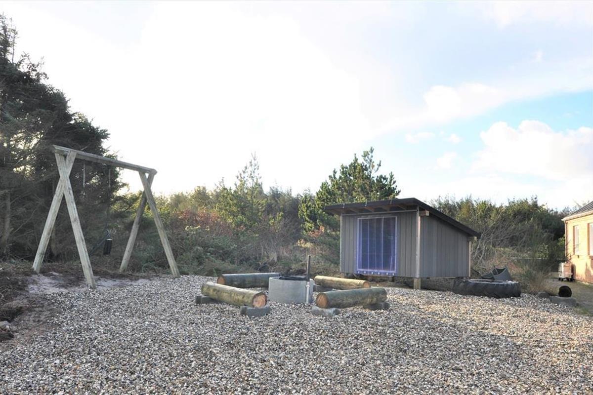 Dein Ferienhaus ist von einem großen, teilweise offenen Naturgrundstück mit Strandsand, Strandhafer und Krüppelkiefern umgeben. Gern werdet ihr euch auf dem Grundstück aufhalten und das wertvolle Beisammensein genießen. An langen Sommerabenden macht ihr es euch rund um die Lagerfeuerstelle gemütlich, an der ihr Stockbrote, Grillwürste und Marshmallows rösten könnt. Die Schutzhütte lädt zu der einen oder anderen Nacht unter dem funkelnden Sternenhimmel ein - ein Erlebnis, das nicht nur deine Kinder faszinieren wird. Für die jüngsten Urlauber steht auf dem Grundstück eine Schaukel bereit. Während die Kinder vergnügt schaukeln, stehst du auf der großen, in Richtung Südwesten weisenden Terrasse sicher gern am Grill, genießt ein gutes Glas Wein und bereitest alles für ein Abendessen im Freien vor. Mit ein wenig Glück erlebt ihr im Anschluss an das Essen einen prachtvollen Sonnenuntergang hinter den Dünen im Westen.
