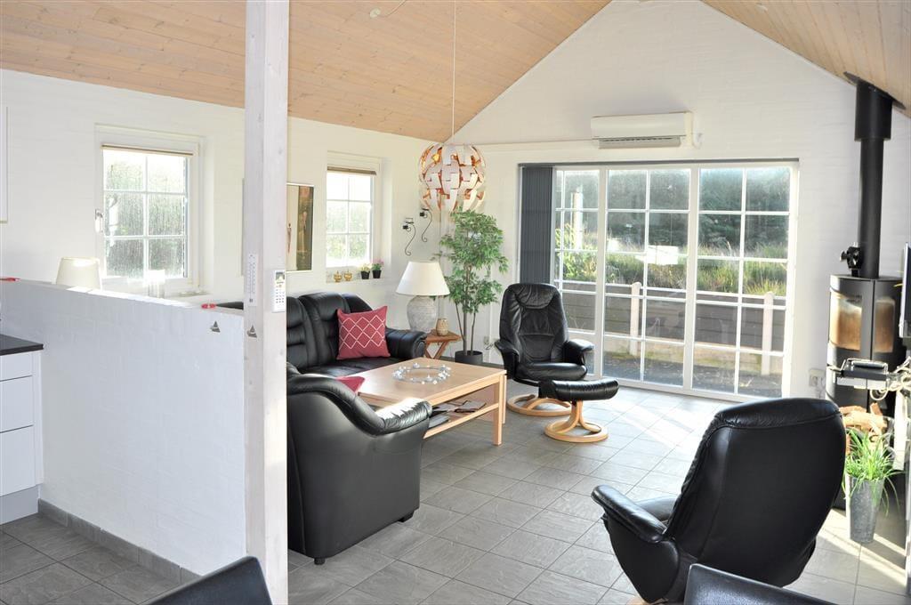 Dein attraktives Ferienhaus befindet sich in Bjerghuse, nur wenige Kilometer abseits des interessanten Fischereihafenorts Thorsminde, der sich bei Anglern aufgrund der tollen Fangplätze an Nordsee, Fjord und Schleuse größter Beliebtheit erfreut. Dein Ferienhaus trennen 500 Meter von Bjerghuses Nordseestrand und 750 Meter vom Ufer des Nissum Fjords. Thorsminde begeistert nicht nur mit besten Angelplätzen, sondern auch mit seinem modernen, faszinierenden Strandungsmuseum St. George und einem schönen Badestrand, der vom großen Parkplatz an der Schleuse über einen befestigten Weg selbst mit Kinderwagen und ähnlichem gut erreichbar ist. Am Strand könnt ihr nach Herzenslust baden, die Sonne genießen, im warmen Sand spielen und wunderschöne Sonnenuntergänge bewundern.