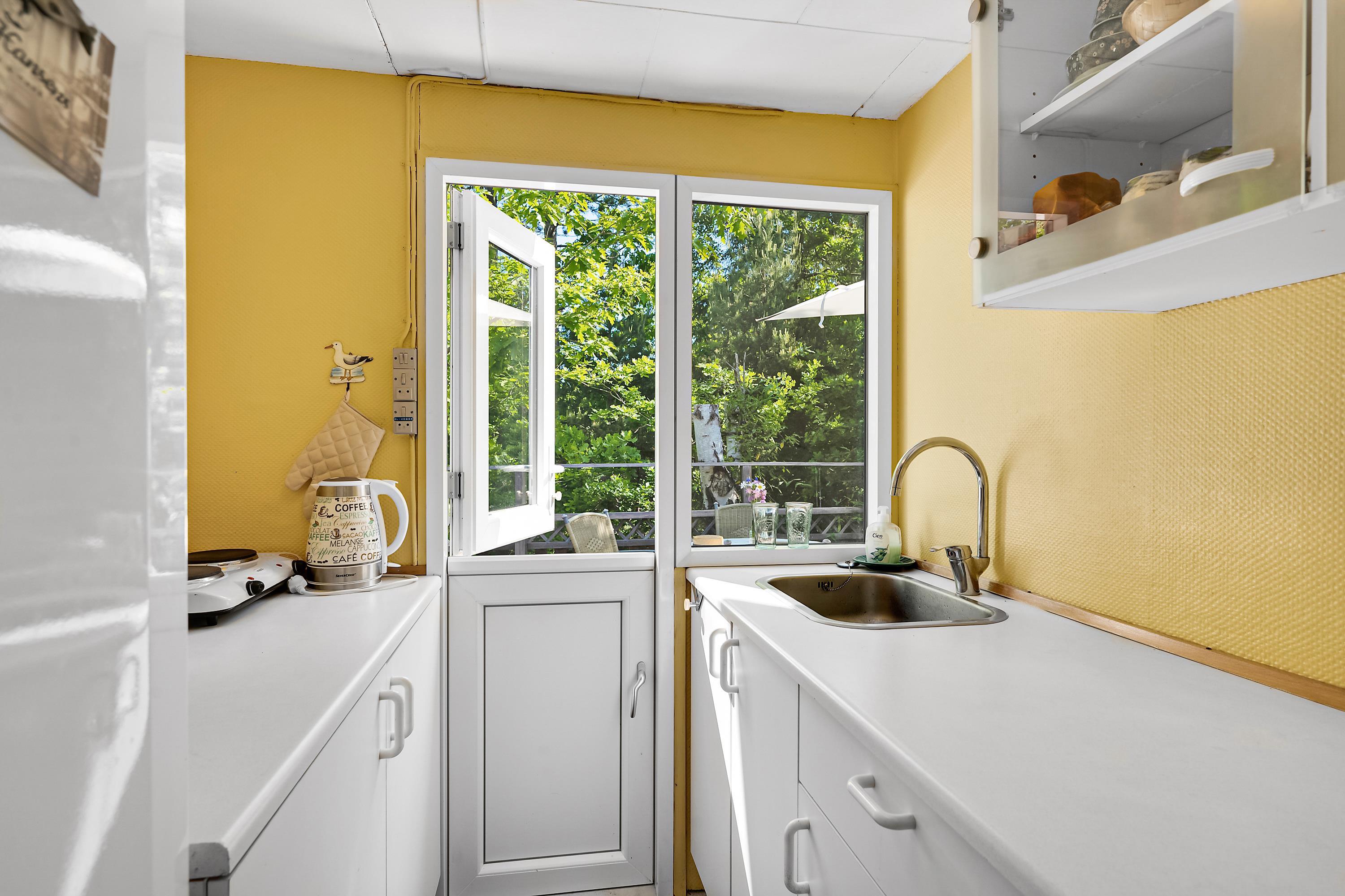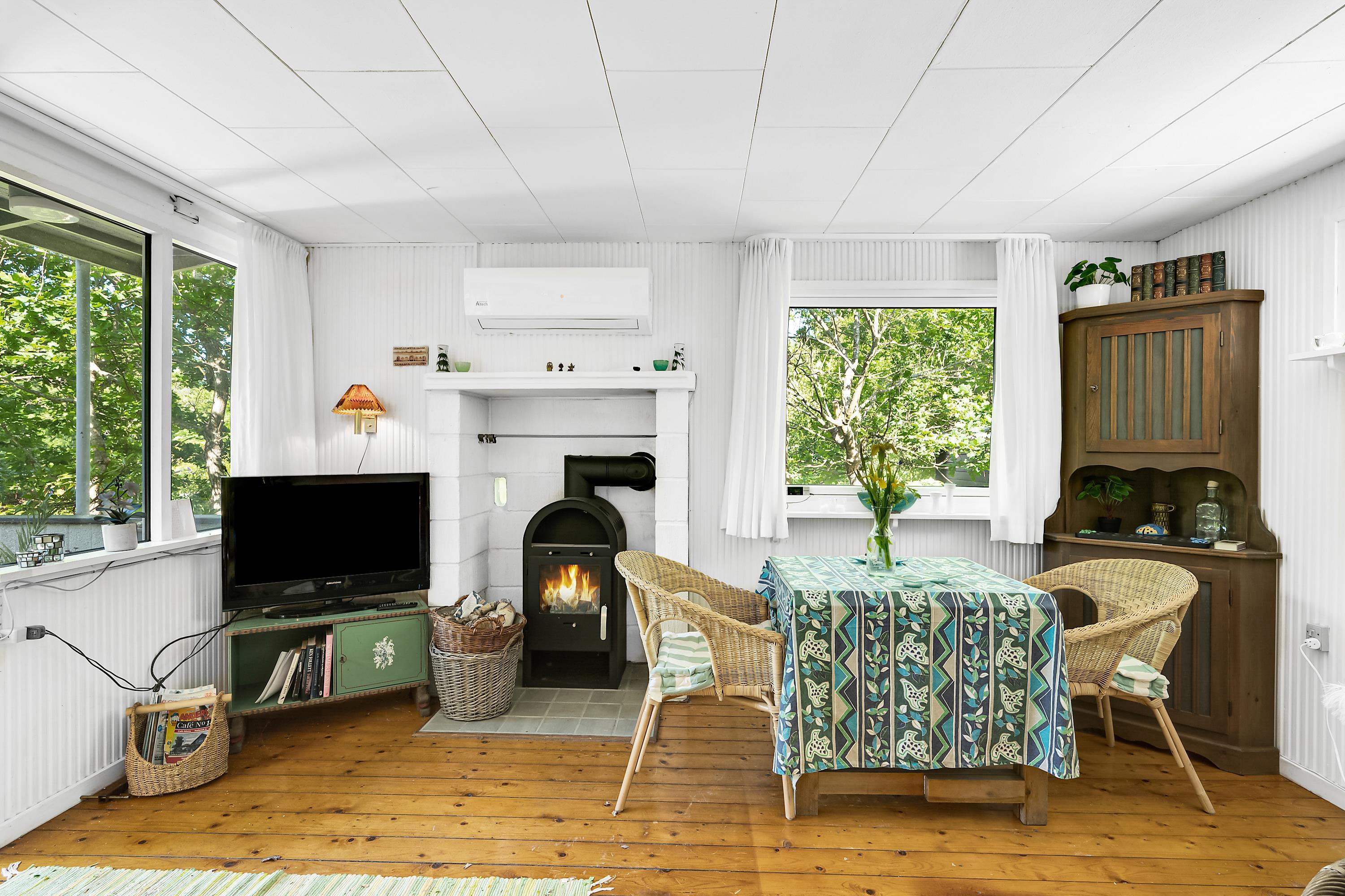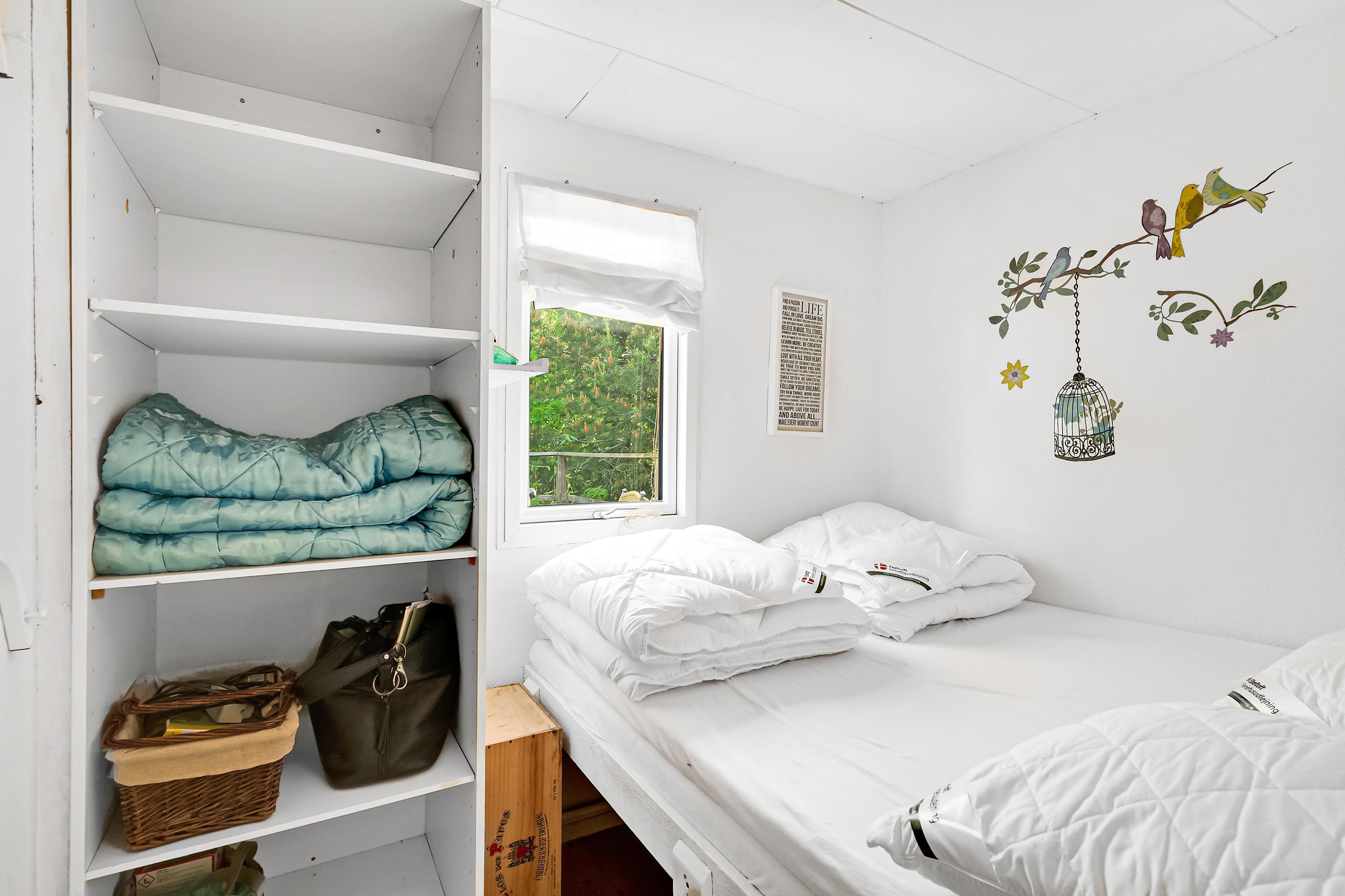 Not far from one of Jutland’s best and most child-friendly sandy beaches, you will find this small 37 m² authentic holiday home. The house is set back on a nearly secluded plot, where nature and outdoor living take priority over comfort. Inside, you’ll find a cozy small living room with a wood-burning stove and heat pump, along with a TV. The compact kitchen includes a refrigerator, freezer, two cooking plates, and a combination oven. From the kitchen, there is access to a lovely terrace with a grill, garden furniture, and a parasol. The house has sleeping accommodations in two small bedrooms, one with a double bed (140 cm x 185 cm) and one with two single beds (80 cm x 185 cm and 80 cm x 190 cm). There is a small bathroom with a shower niche. By the entrance, there is a covered terrace with an outdoor fireplace, where you can sit and stay warm well into the evening. Dogs are welcome.