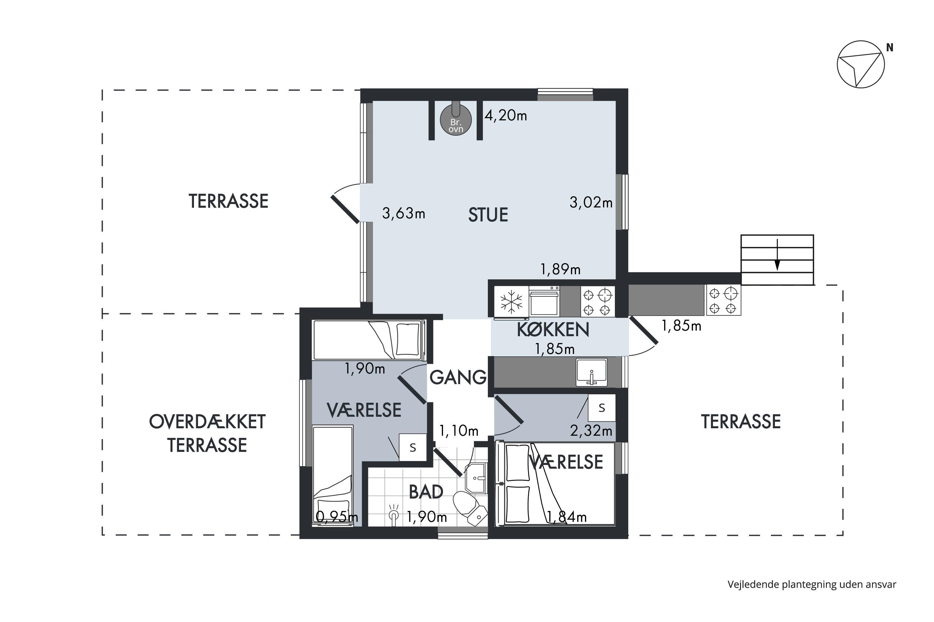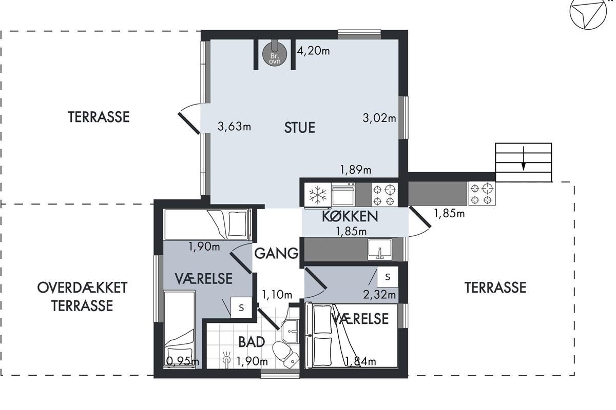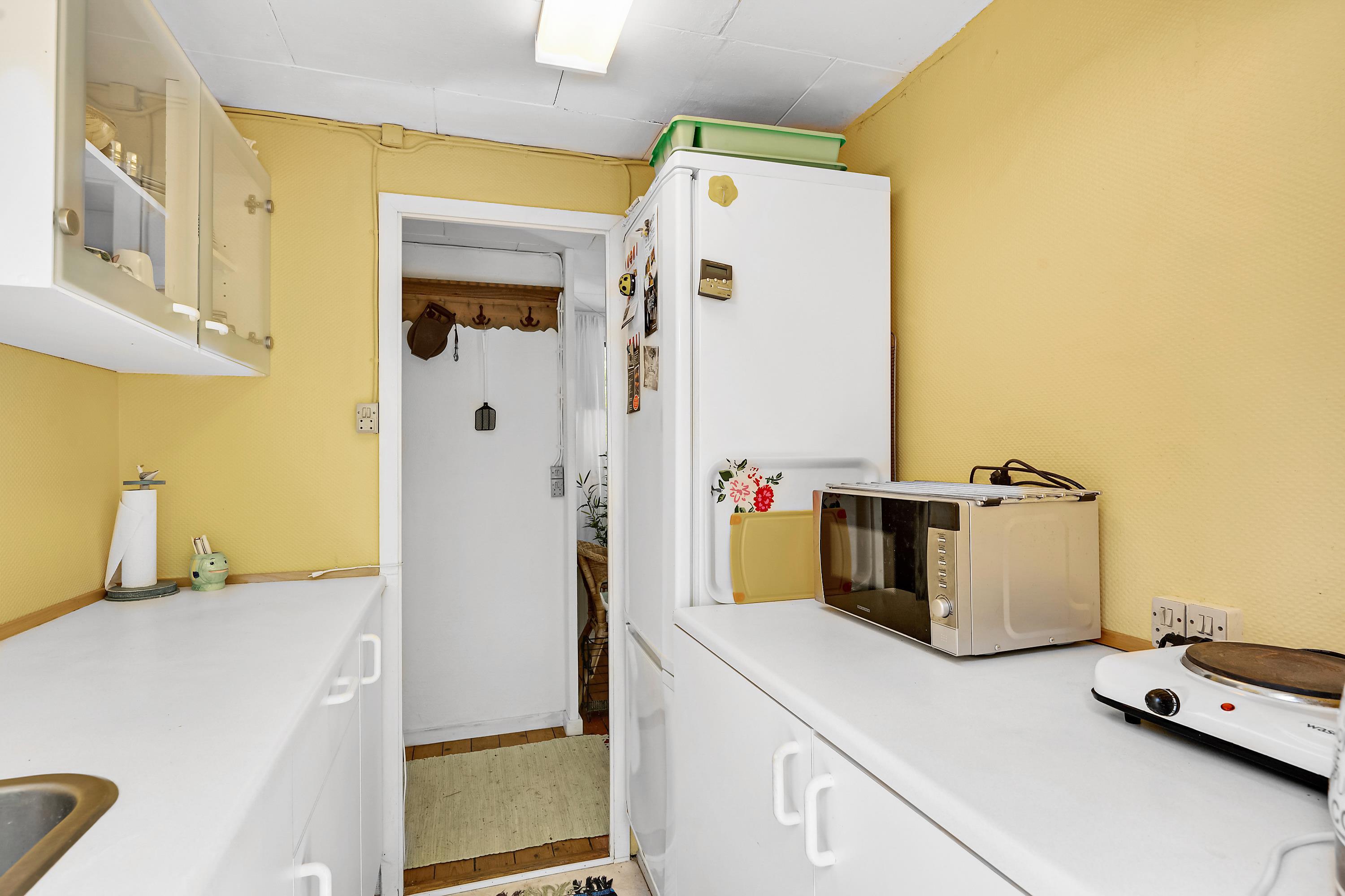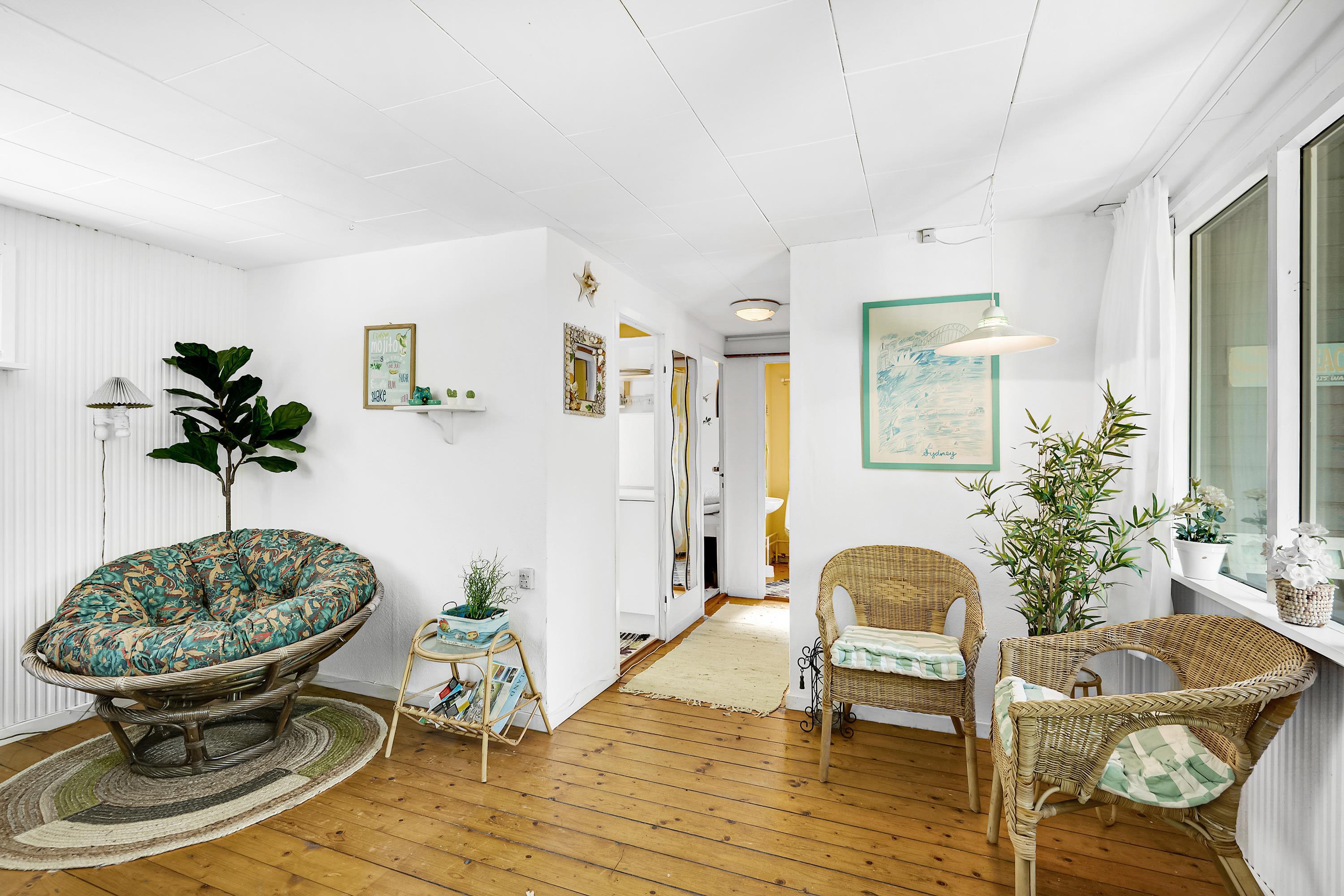 Not far from one of Jutland’s best and most child-friendly sandy beaches, you will find this small 37 m² authentic holiday home. The house is set back on a nearly secluded plot, where nature and outdoor living take priority over comfort. Inside, you’ll find a cozy small living room with a wood-burning stove and heat pump, along with a TV. The compact kitchen includes a refrigerator, freezer, two cooking plates, and a combination oven. From the kitchen, there is access to a lovely terrace with a grill, garden furniture, and a parasol. The house has sleeping accommodations in two small bedrooms, one with a double bed (140 cm x 185 cm) and one with two single beds (80 cm x 185 cm and 80 cm x 190 cm). There is a small bathroom with a shower niche. By the entrance, there is a covered terrace with an outdoor fireplace, where you can sit and stay warm well into the evening. Dogs are welcome.