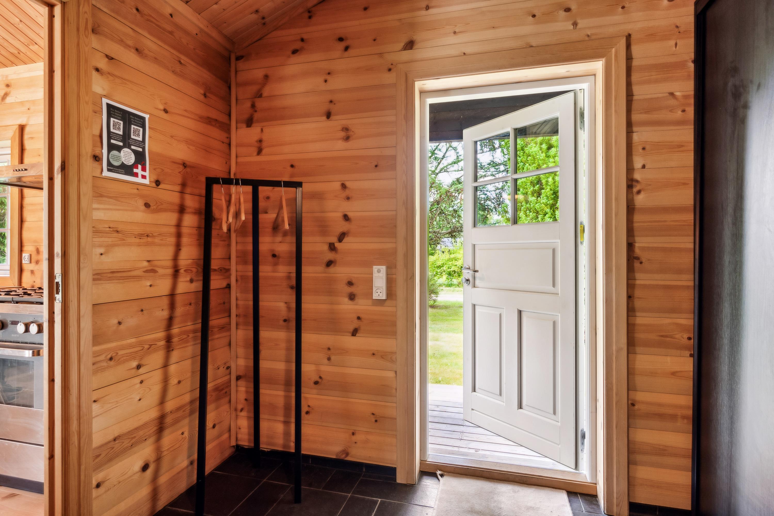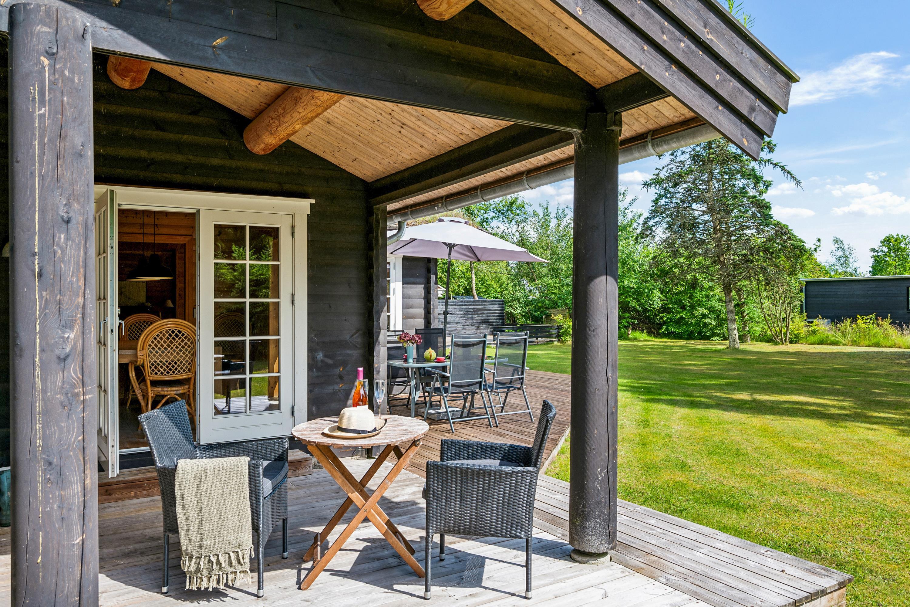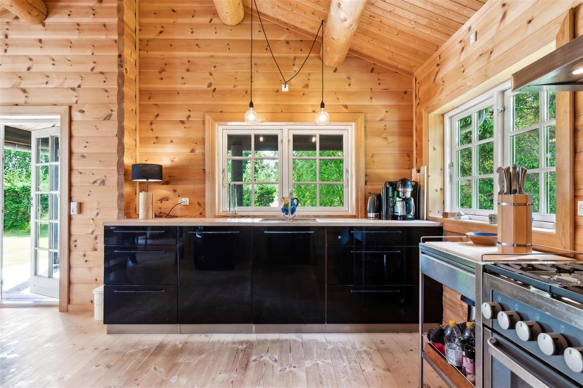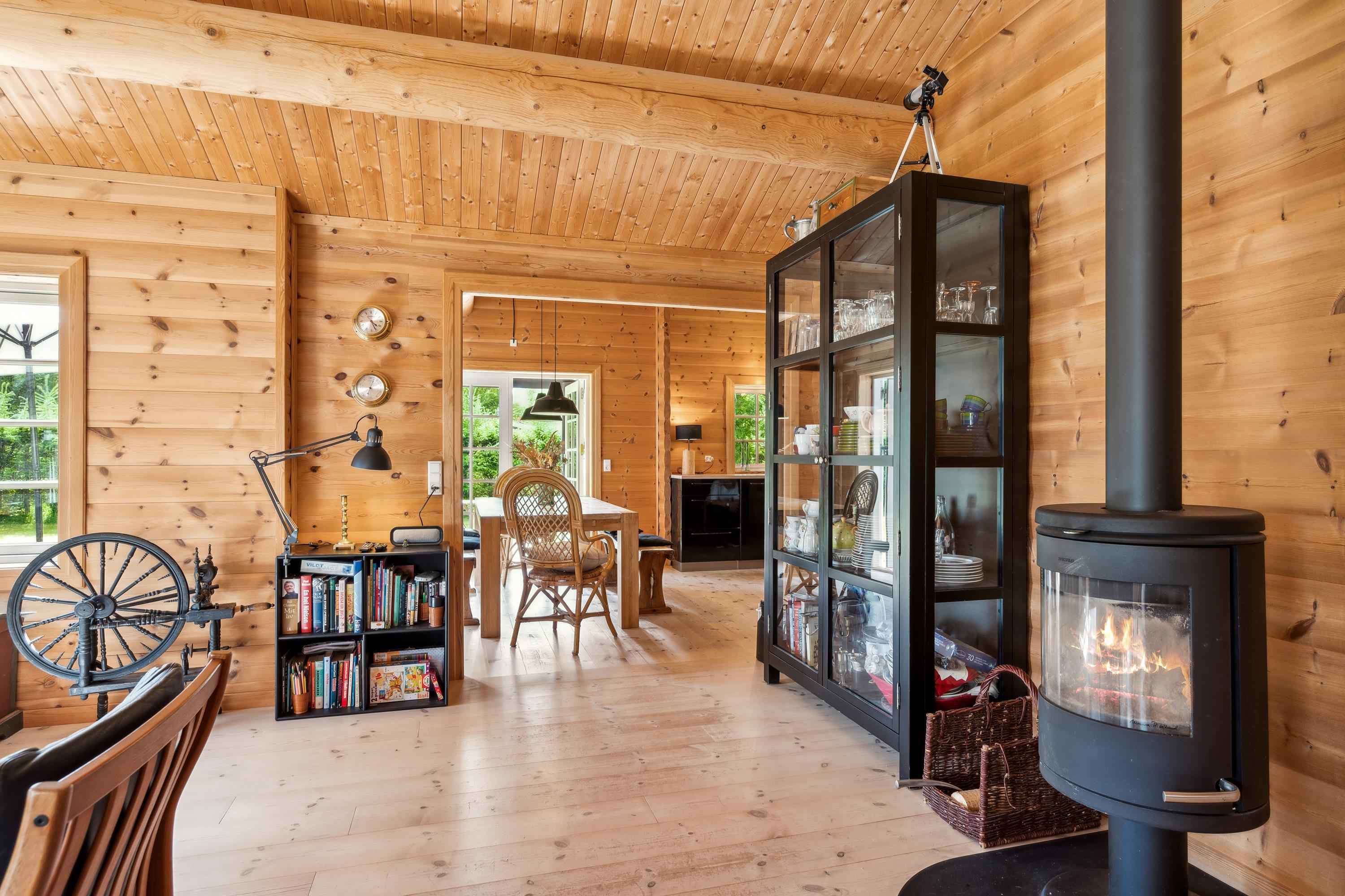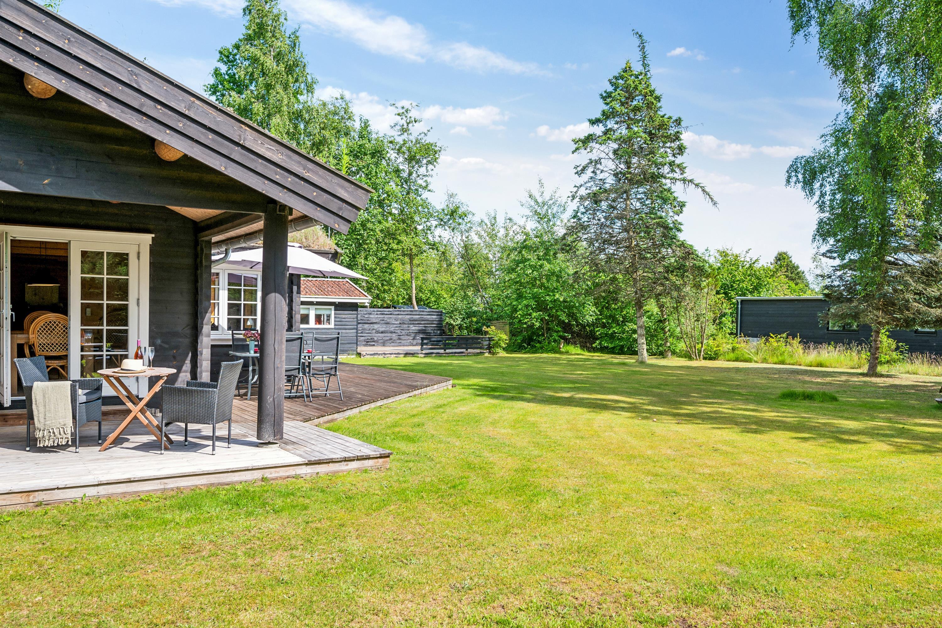 Black Norwegian timber house located on a large, naturally sheltered plot with plenty of space for outdoor activities. The house is surrounded by beautiful scenery, close to a child-friendly beach, and features a large, partially covered terrace with garden furniture and a barbecue, extending all the way around the house. The interior is light and welcoming, with high ceilings and large beams reaching up to the ridge. There is a spacious, comfortable living room with a wood-burning stove and a TV for streaming via Chromecast. The living room is open to a lovely kitchen and a large dining area. The kitchen includes a large steel stove with 6 gas burners, a refrigerator with a freezer, and a dishwasher. The utility room/entrance also has a washing machine and a tumble dryer. A large, beautiful bathroom is finished in Norwegian slate, featuring a spacious, impressive shower niche and a luxurious bathtub. The house has 6 sleeping accommodations distributed between 2 large bedrooms: one with a double bed and one with two single beds. One of the bedrooms also has double doors leading out to the terrace. Additionally, there is an annex by the terrace with 2 single beds. The house is located in an area with many activity opportunities and is close to several of Djursland’s tourist attractions, such as Djurs Sommerland, Randers Regnskov, and the Kattegat Centre. The area is also ideal for fishing enthusiasts, particularly for those hoping to catch sea trout.