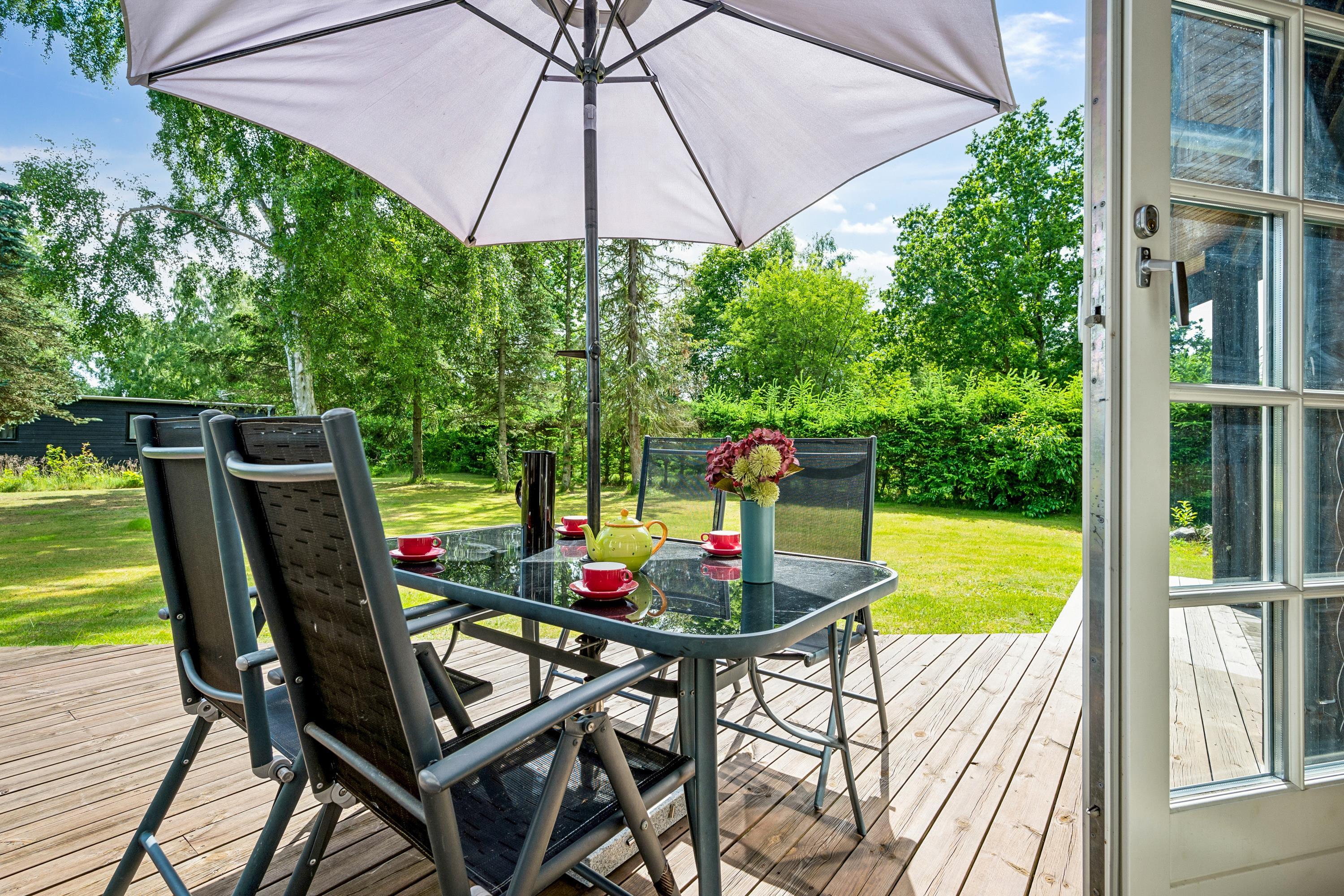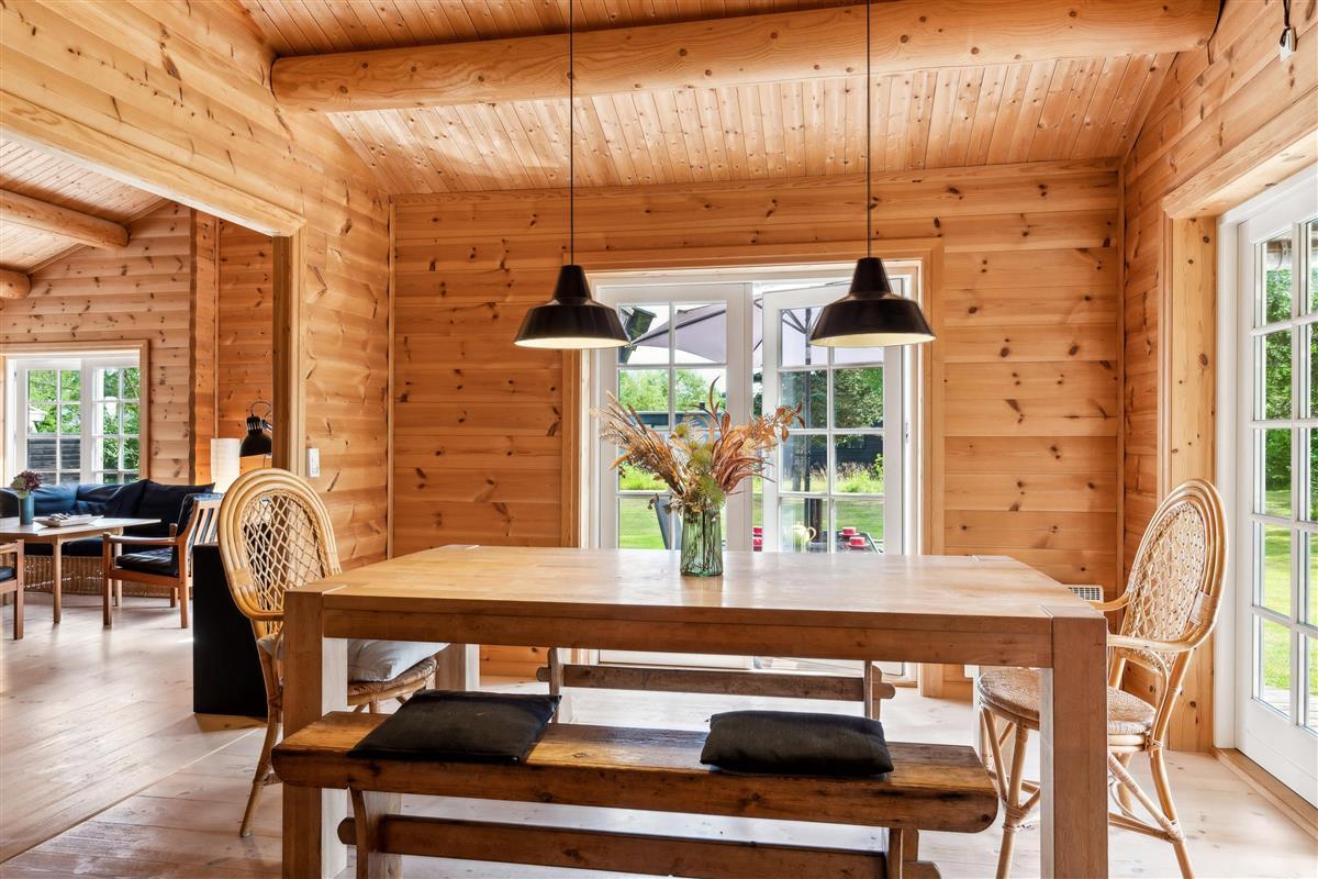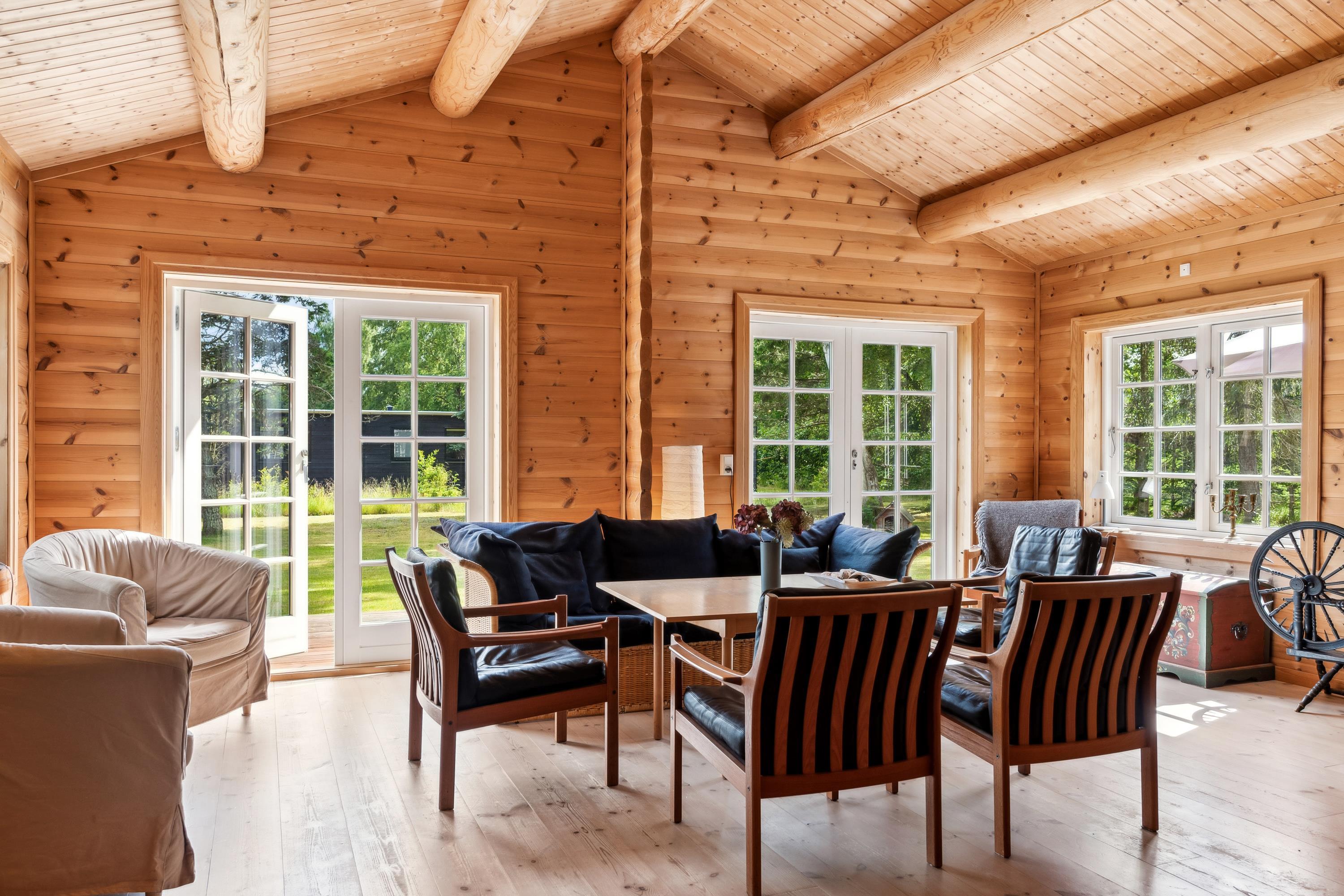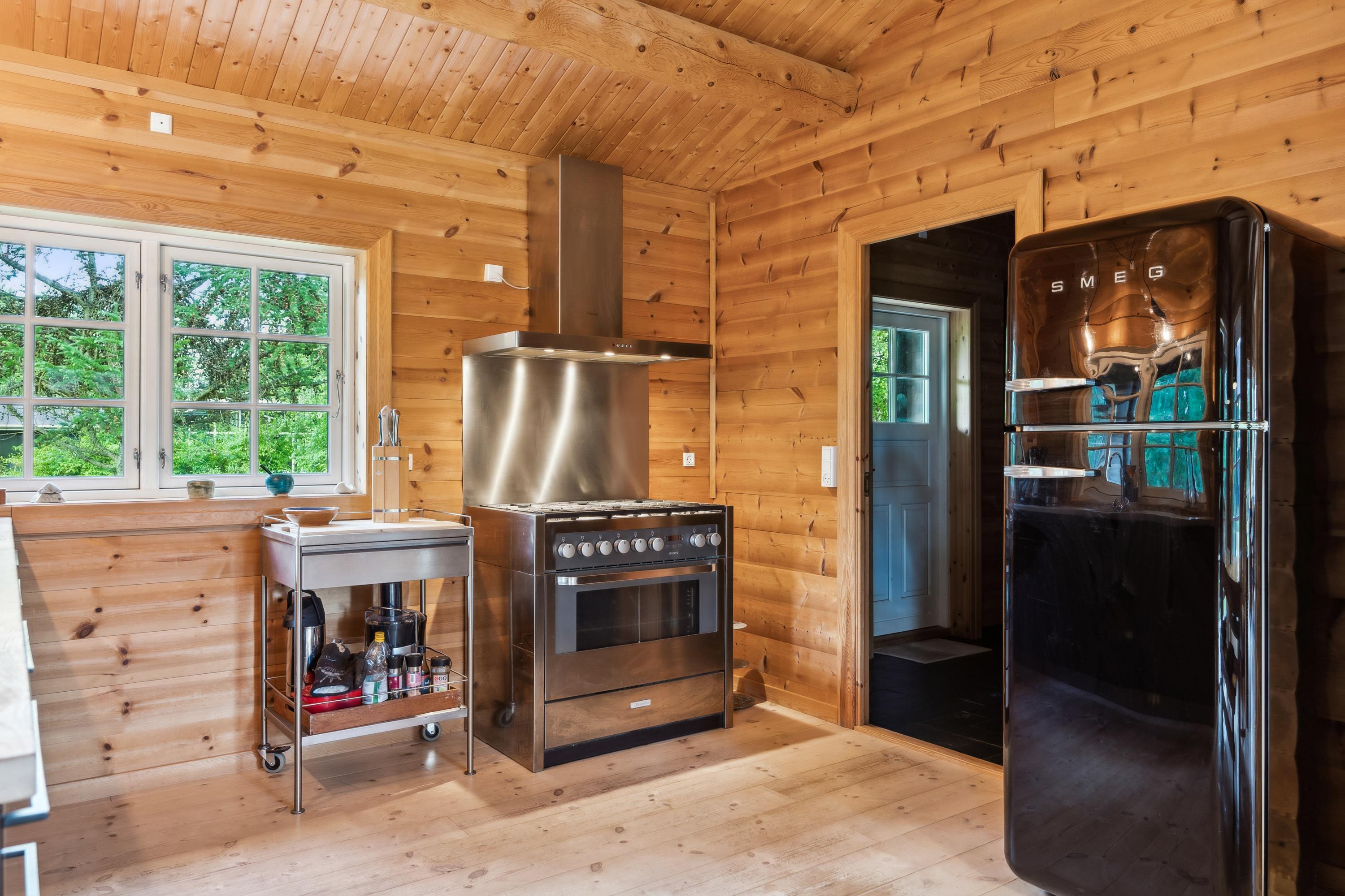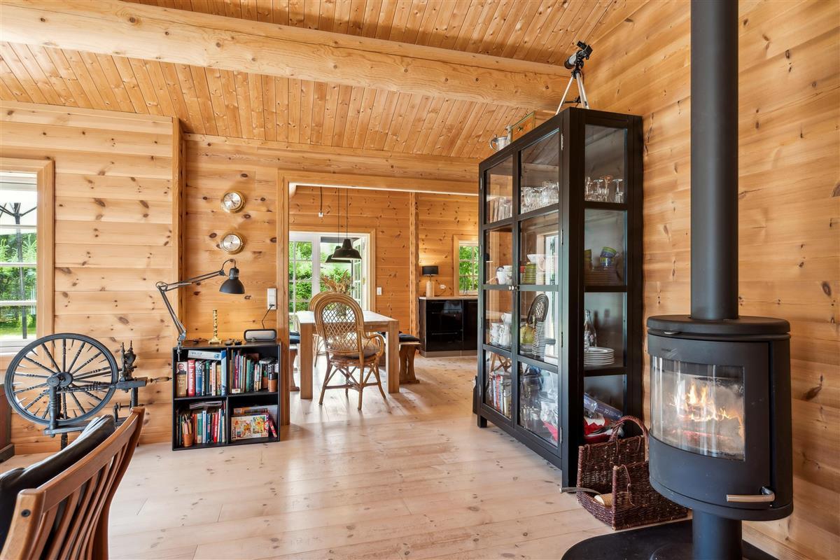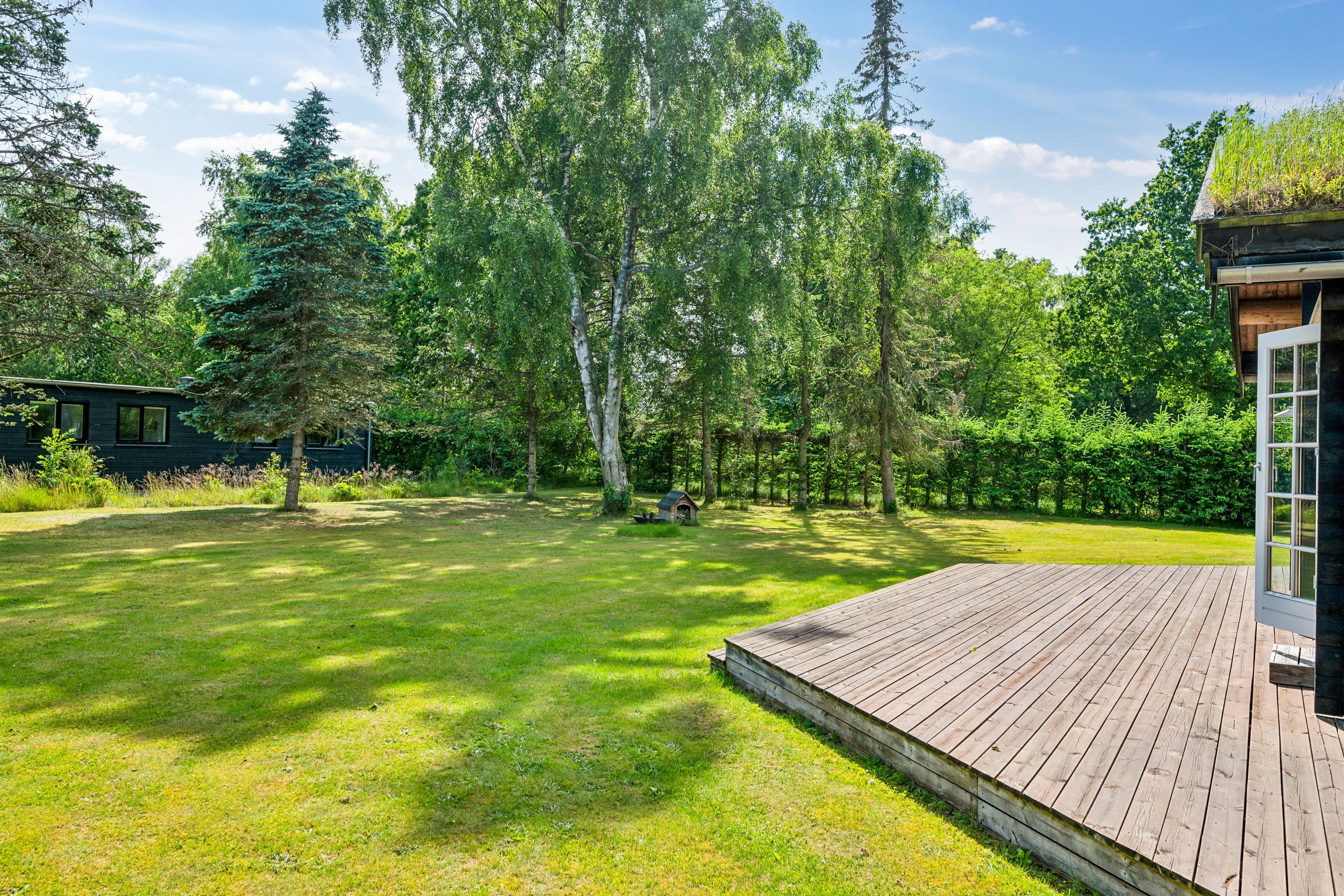 Black Norwegian timber house located on a large, naturally sheltered plot with plenty of space for outdoor activities. The house is surrounded by beautiful scenery, close to a child-friendly beach, and features a large, partially covered terrace with garden furniture and a barbecue, extending all the way around the house. The interior is light and welcoming, with high ceilings and large beams reaching up to the ridge. There is a spacious, comfortable living room with a wood-burning stove and a TV for streaming via Chromecast. The living room is open to a lovely kitchen and a large dining area. The kitchen includes a large steel stove with 6 gas burners, a refrigerator with a freezer, and a dishwasher. The utility room/entrance also has a washing machine and a tumble dryer. A large, beautiful bathroom is finished in Norwegian slate, featuring a spacious, impressive shower niche and a luxurious bathtub. The house has 6 sleeping accommodations distributed between 2 large bedrooms: one with a double bed and one with two single beds. One of the bedrooms also has double doors leading out to the terrace. Additionally, there is an annex by the terrace with 2 single beds. The house is located in an area with many activity opportunities and is close to several of Djursland’s tourist attractions, such as Djurs Sommerland, Randers Regnskov, and the Kattegat Centre. The area is also ideal for fishing enthusiasts, particularly for those hoping to catch sea trout.