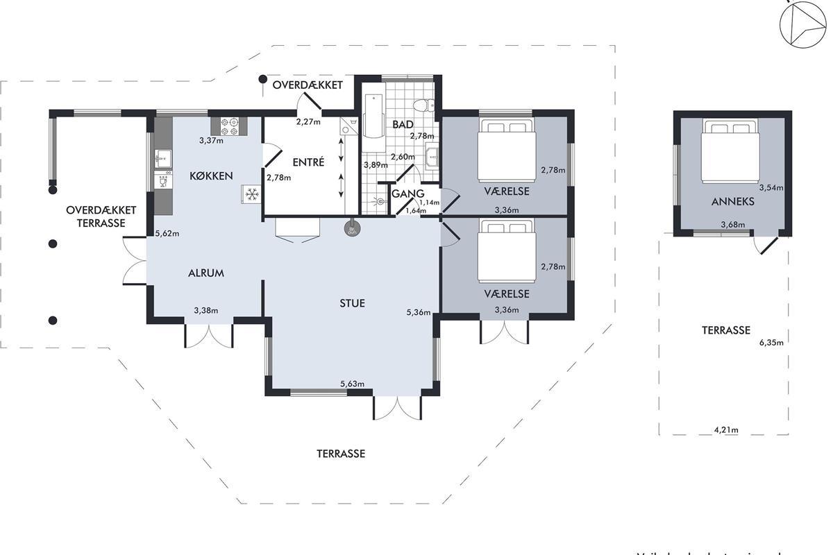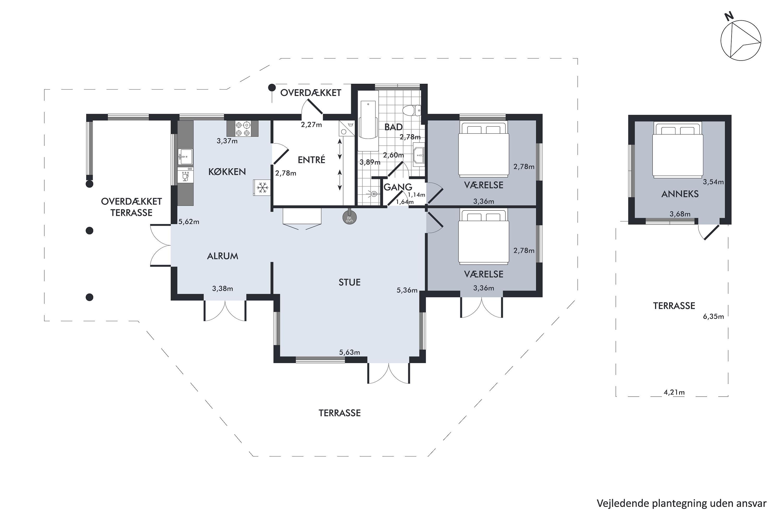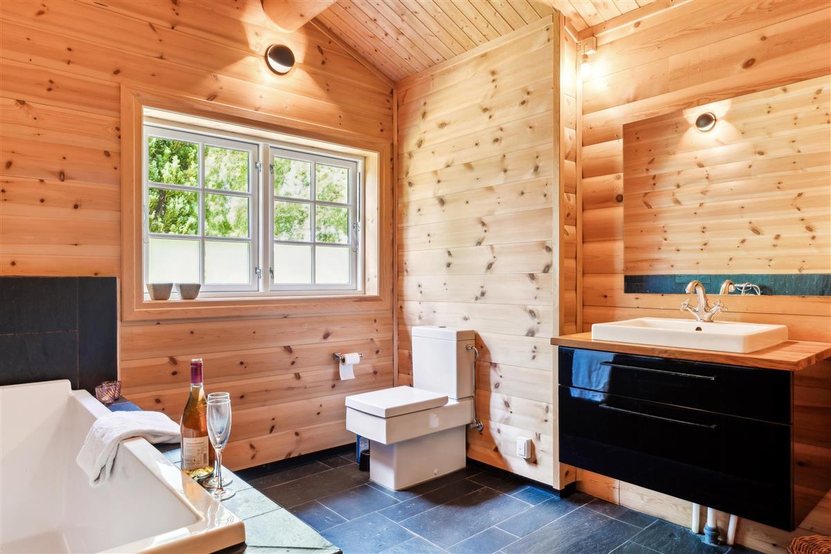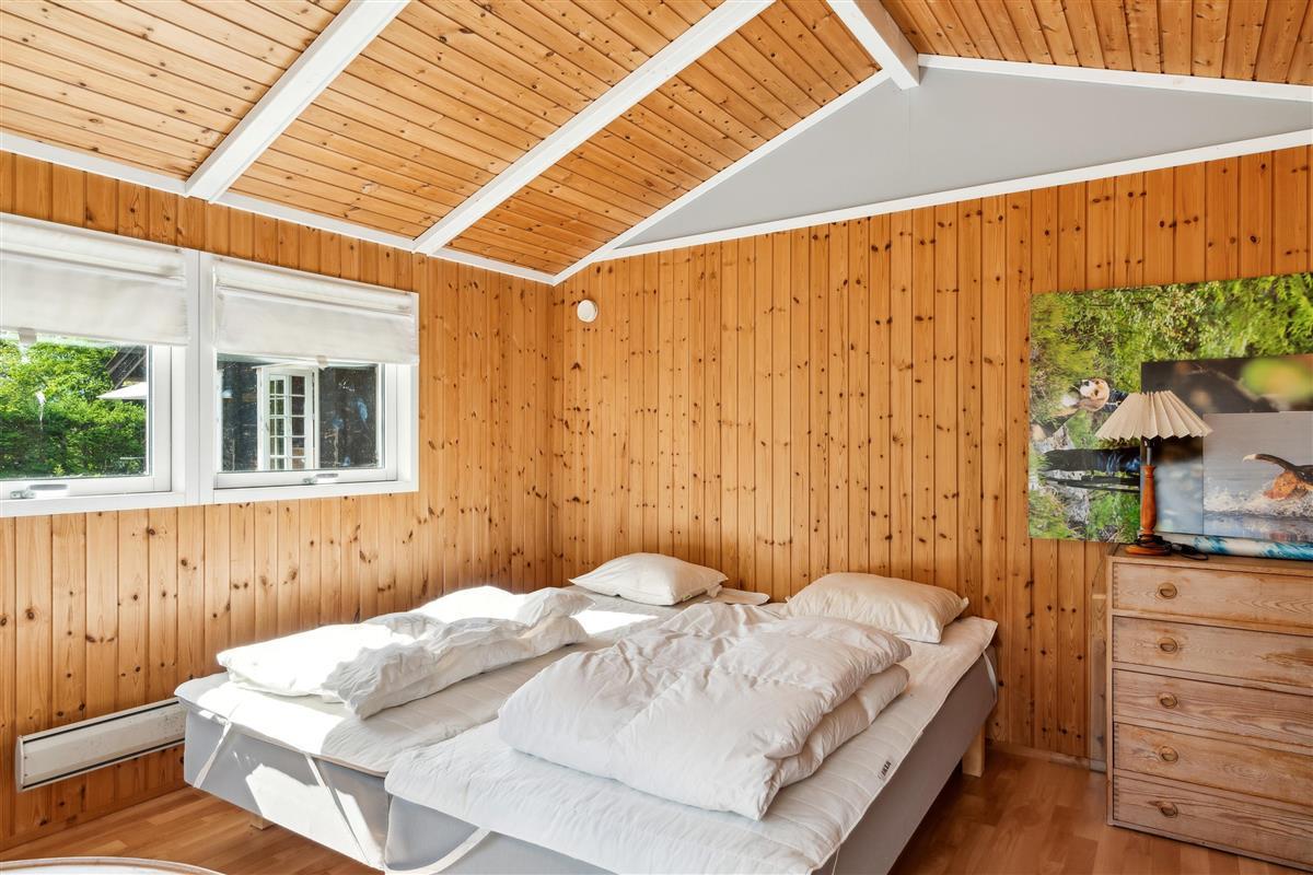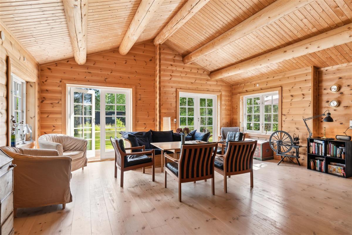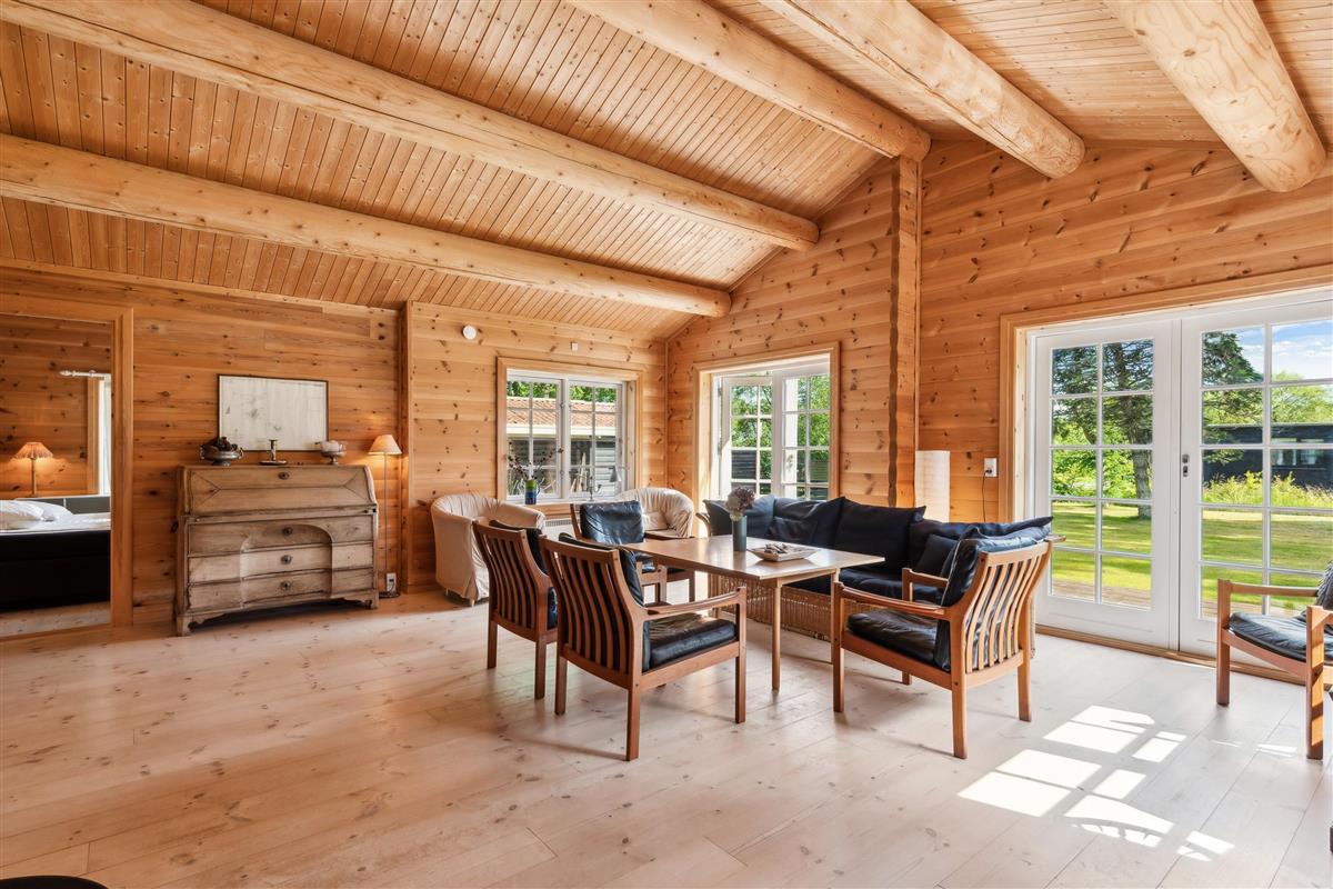 Black Norwegian timber house located on a large, naturally sheltered plot with plenty of space for outdoor activities. The house is surrounded by beautiful scenery, close to a child-friendly beach, and features a large, partially covered terrace with garden furniture and a barbecue, extending all the way around the house. The interior is light and welcoming, with high ceilings and large beams reaching up to the ridge. There is a spacious, comfortable living room with a wood-burning stove and a TV for streaming via Chromecast. The living room is open to a lovely kitchen and a large dining area. The kitchen includes a large steel stove with 6 gas burners, a refrigerator with a freezer, and a dishwasher. The utility room/entrance also has a washing machine and a tumble dryer. A large, beautiful bathroom is finished in Norwegian slate, featuring a spacious, impressive shower niche and a luxurious bathtub. The house has 6 sleeping accommodations distributed between 2 large bedrooms: one with a double bed and one with two single beds. One of the bedrooms also has double doors leading out to the terrace. Additionally, there is an annex by the terrace with 2 single beds. The house is located in an area with many activity opportunities and is close to several of Djursland’s tourist attractions, such as Djurs Sommerland, Randers Regnskov, and the Kattegat Centre. The area is also ideal for fishing enthusiasts, particularly for those hoping to catch sea trout.