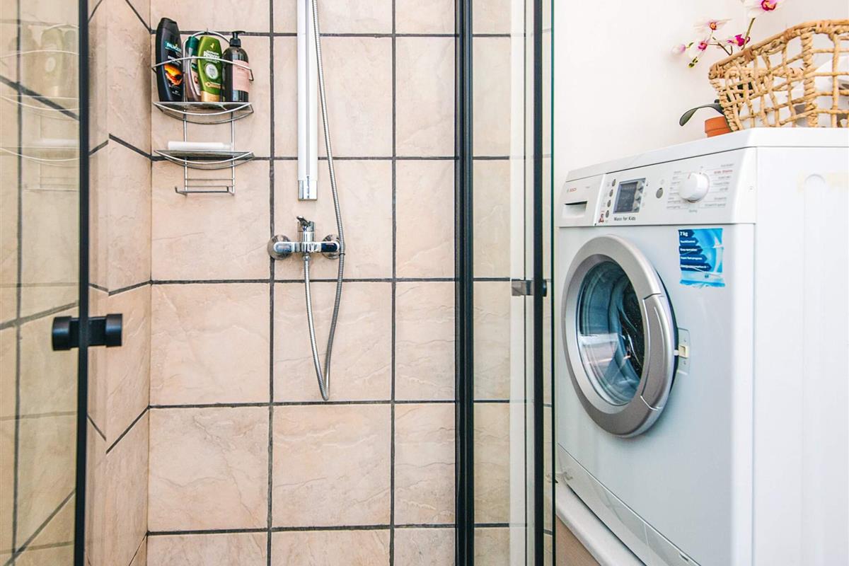 Bad: Waschm., WC, Waschb., Dusche, Fußbodenheiz.