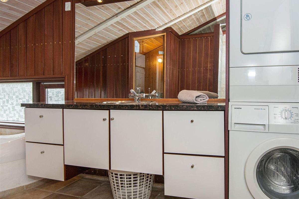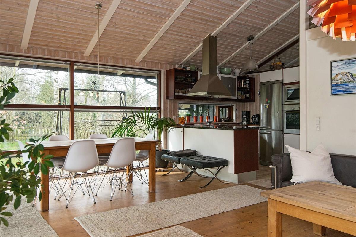 Dieses gepflegte Ferienhaus mit Whirlpool und Sauna liegt nur etwa 450 m vom attraktiven Strandufer bei Fjellerup entfernt. Das Haus stellt drei Schlafzimmer sowie einen offenen Hems oben unter dem Dach bereit, auf dem vor allem Kinder gerne übernachten. Für das Familienleben steht ein offener Küchen-/Wohnbereich bereit, der für gemeinsame Aktivitäten genutzt werden kann. Im Haus zudem ansprechendes Badezimmer mit Sauna und Whirlpool für ihr persönliches Wellnessprogramm. Anschließend kann man es sich vor dem Feuer im Kaminofen des Hauses gemütlich machen, der mitten im Wohnbereich steht.