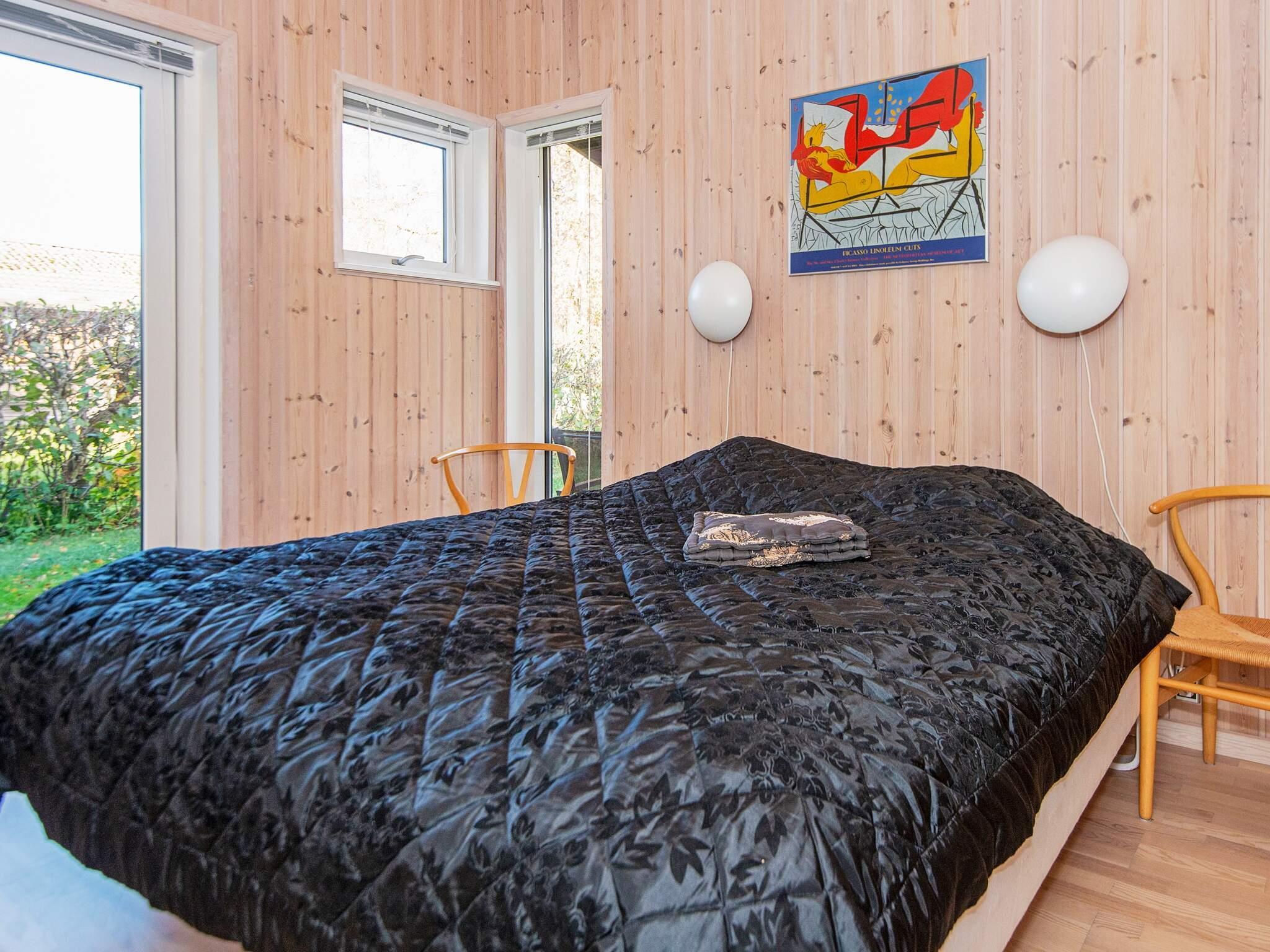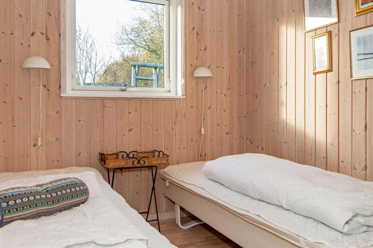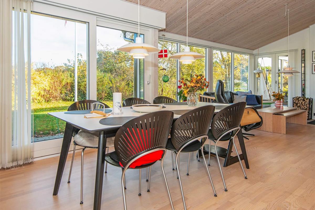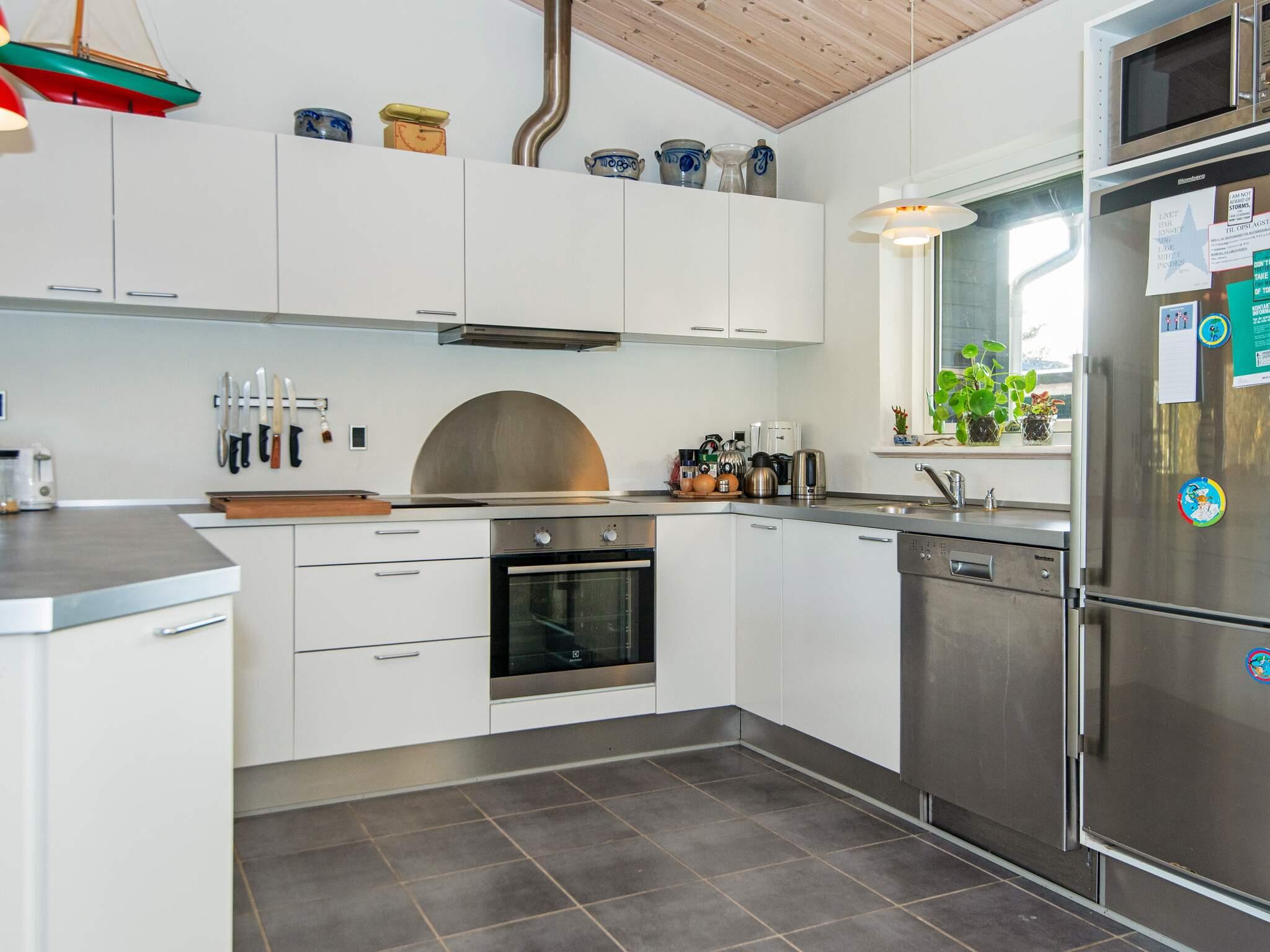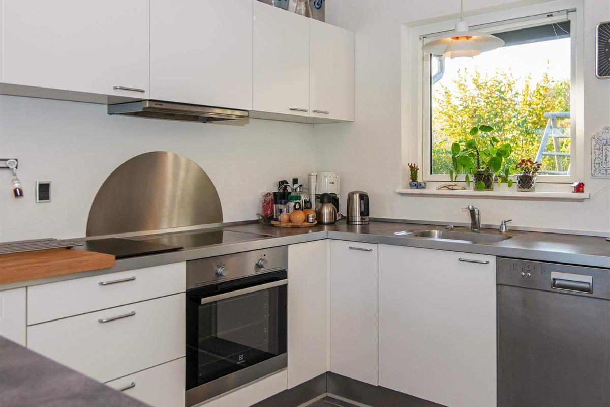 Im Inneren ist das Wohnzimmer ein gemütlicher Ort zum Zusammensein, ausgestattet mit einem Holzofen, einer Stereoanlage mit CD- und DVD-Player, Satellitenfernsehen mit dänischen Kanälen und mindestens zwei deutschen Kanälen. Für kleine Kinder steht ein Hochstuhl zur Verfügung. Die voll ausgestattete Küche mit Elektroherd, Kühl-Gefrierkombination, Mikrowelle, Dunstabzugshaube, Kaffeemaschine und Geschirrspüler macht das Zubereiten von Mahlzeiten einfach und angenehm. Das Haus verfügt über vier Schlafzimmer; zwei mit Doppelbett, zwei mit Einzelbetten, dazu gibt es ein 150 cm langes Kinderbett. Es bietet somit flexible Schlafmöglichkeiten.