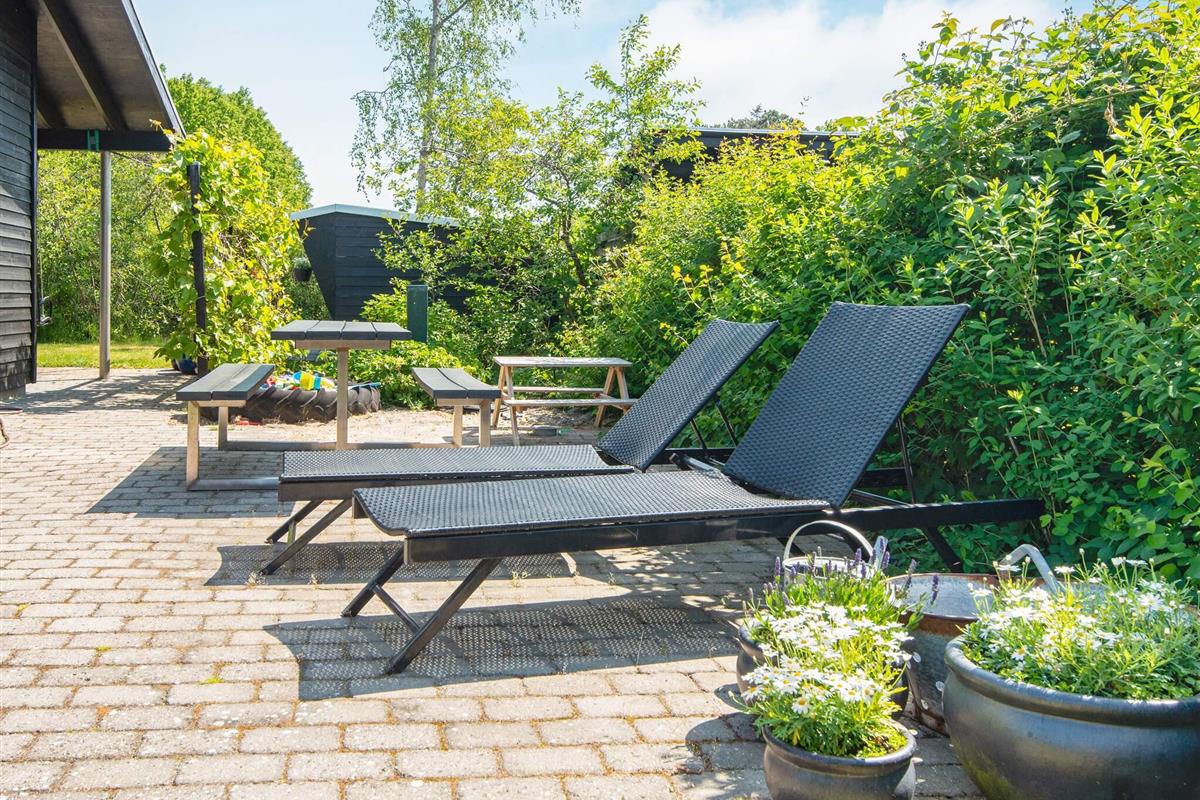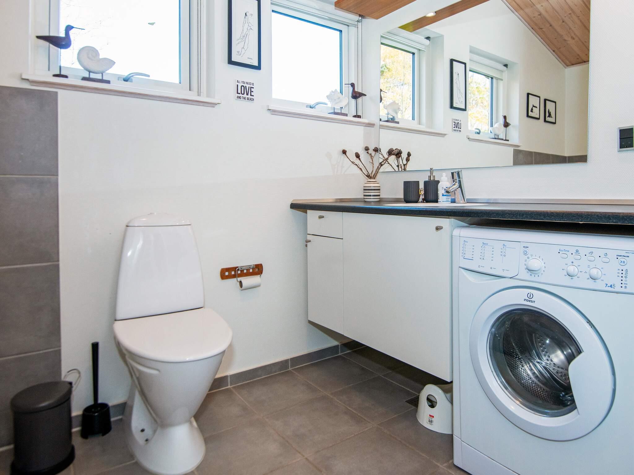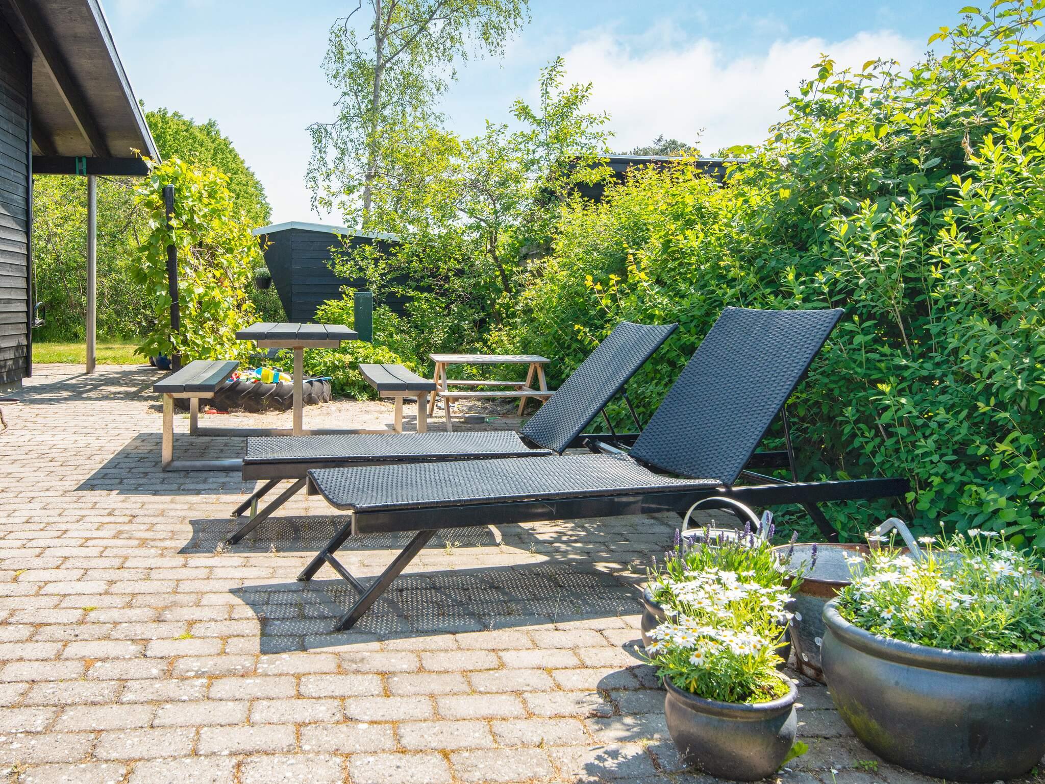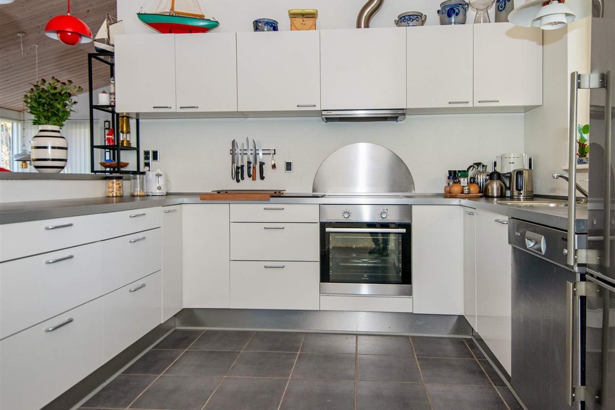 Im Inneren ist das Wohnzimmer ein gemütlicher Ort zum Zusammensein, ausgestattet mit einem Holzofen, einer Stereoanlage mit CD- und DVD-Player, Satellitenfernsehen mit dänischen Kanälen und mindestens zwei deutschen Kanälen. Für kleine Kinder steht ein Hochstuhl zur Verfügung. Die voll ausgestattete Küche mit Elektroherd, Kühl-Gefrierkombination, Mikrowelle, Dunstabzugshaube, Kaffeemaschine und Geschirrspüler macht das Zubereiten von Mahlzeiten einfach und angenehm. Das Haus verfügt über vier Schlafzimmer; zwei mit Doppelbett, zwei mit Einzelbetten, dazu gibt es ein 150 cm langes Kinderbett. Es bietet somit flexible Schlafmöglichkeiten.