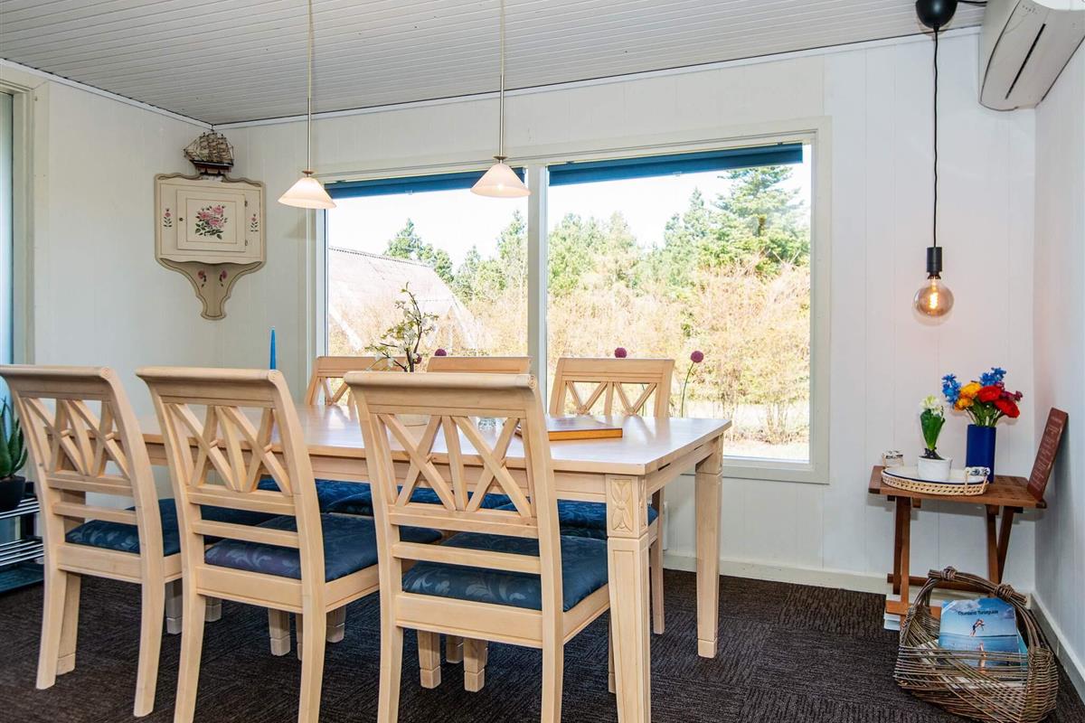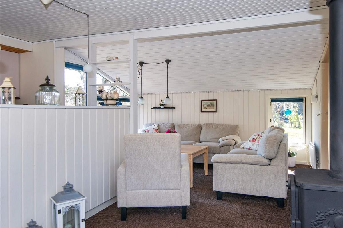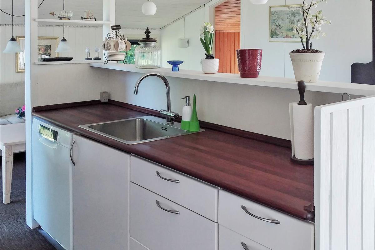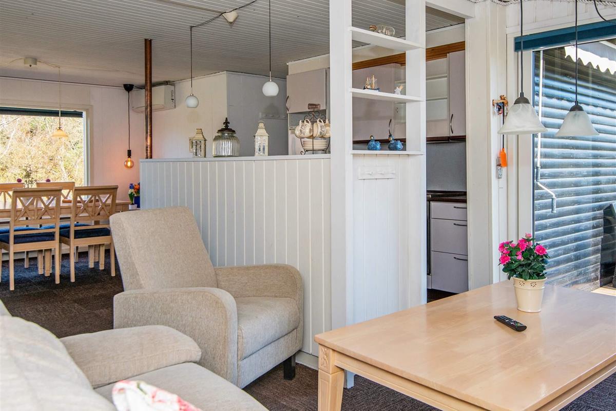 Ferienhaus in einem Ferienhausgebiet bei Fjellerup Strand. Es stehen Ihnen hier drei Schlafzimmer sowie ein 30 m2 großer, offener Küchen-/Wohnbereich für das Familienleben zur Verfügung. An kühleren Abenden können Sie das Knistern des wärmenden Feuers im Ofen genießen. Zudem klimafreundliche Wärmepumpe zum Heizen im Haus. Badezimmer mit Dusche/WC und Waschmaschine.