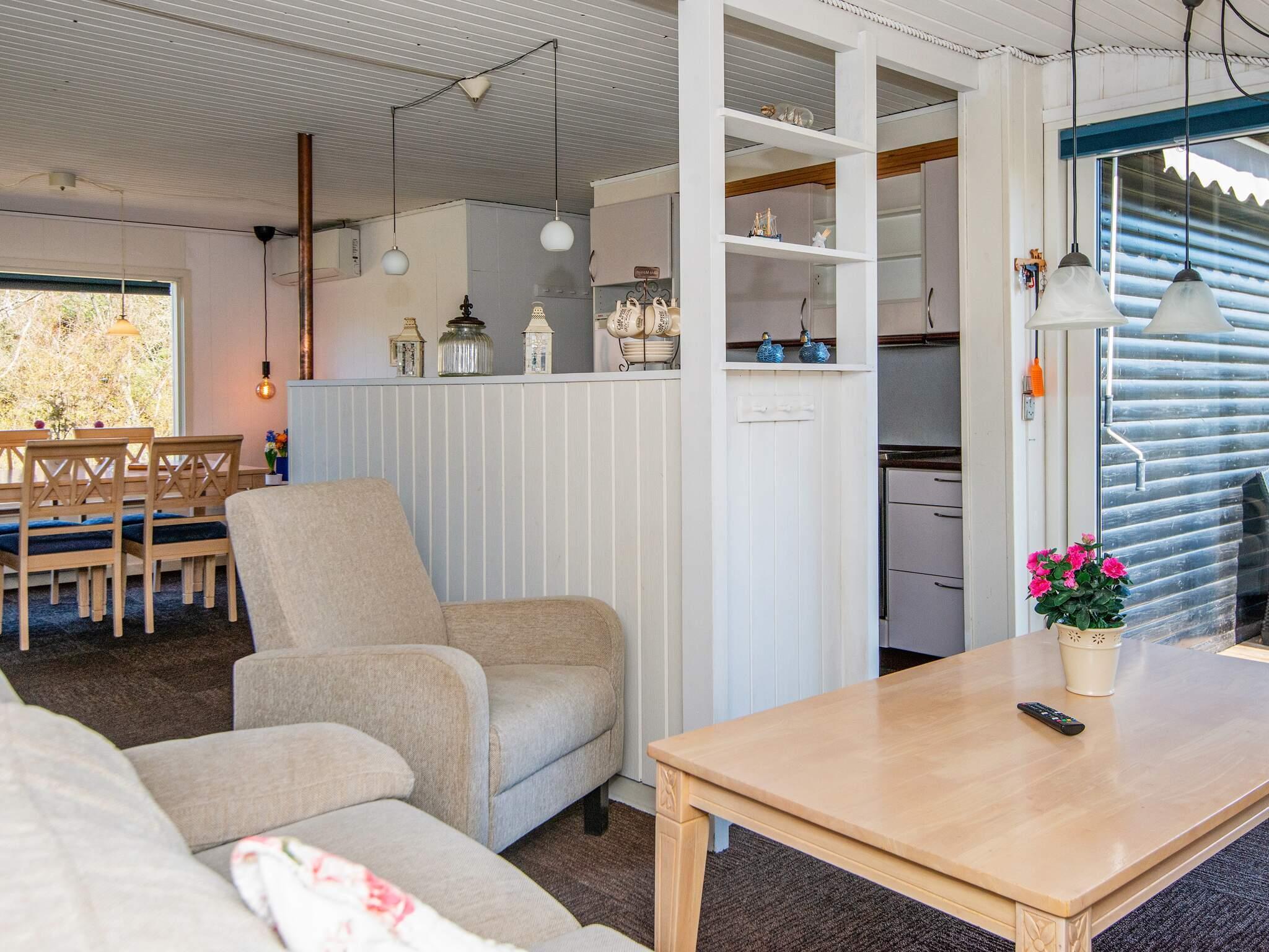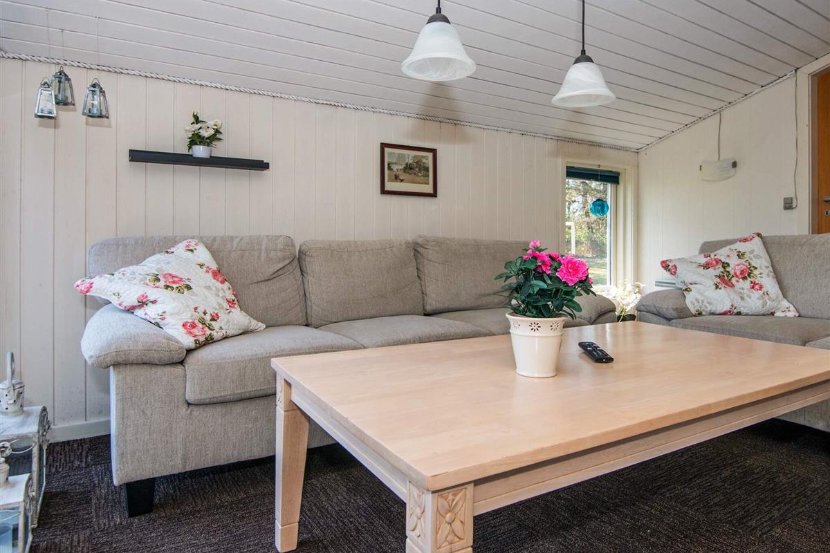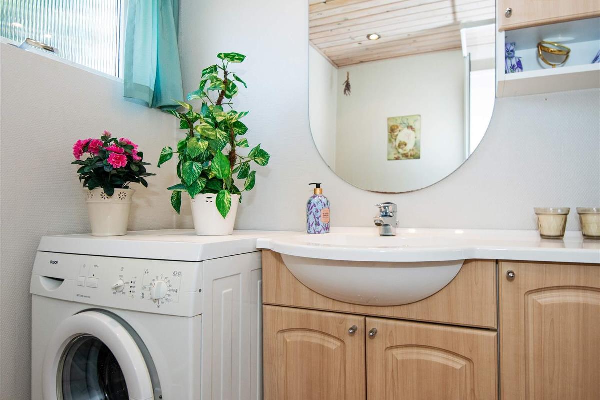 Ferienhaus in einem Ferienhausgebiet bei Fjellerup Strand. Es stehen Ihnen hier drei Schlafzimmer sowie ein 30 m2 großer, offener Küchen-/Wohnbereich für das Familienleben zur Verfügung. An kühleren Abenden können Sie das Knistern des wärmenden Feuers im Ofen genießen. Zudem klimafreundliche Wärmepumpe zum Heizen im Haus. Badezimmer mit Dusche/WC und Waschmaschine.