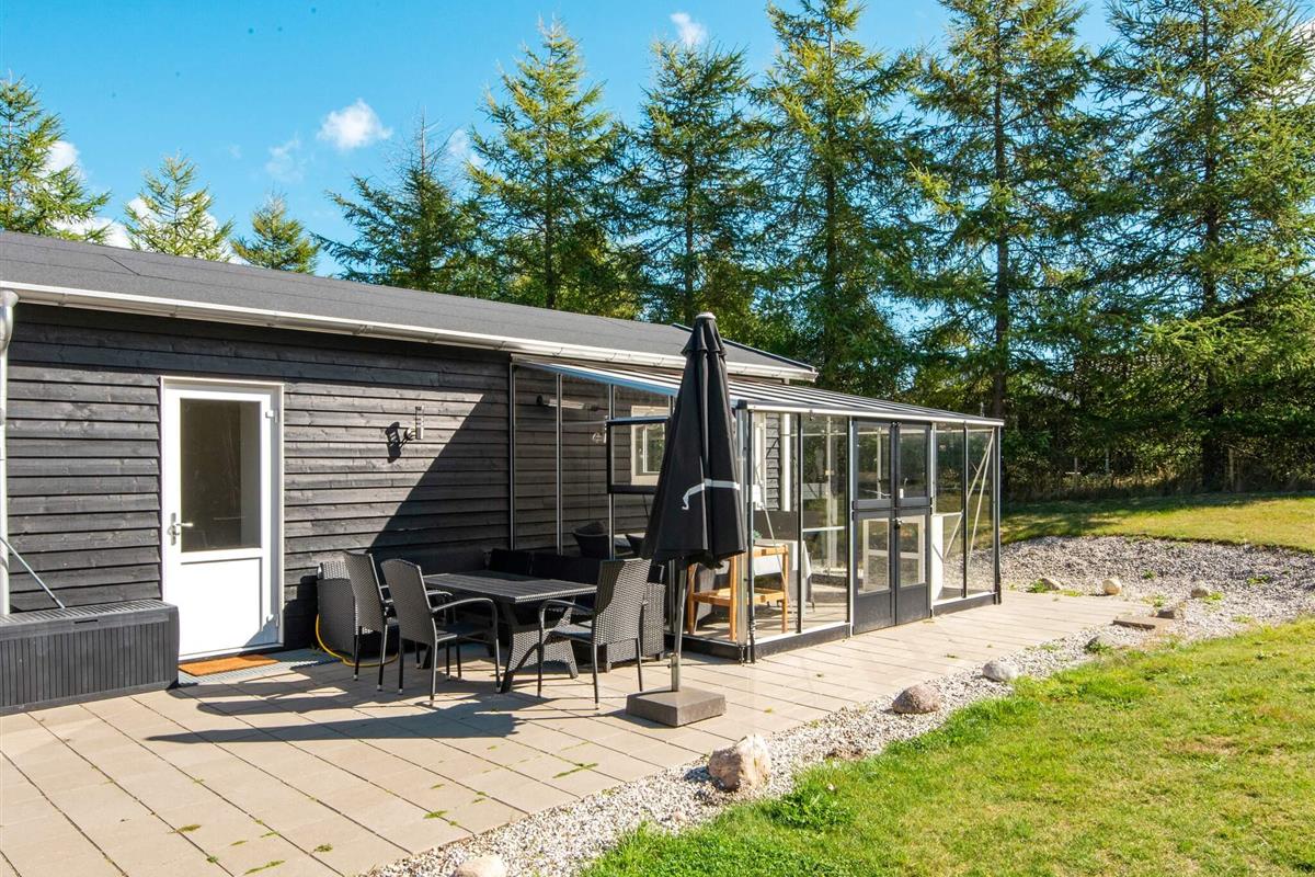 Dieses wohnliche Ferienhaus liegt nur einen kurzen Spaziergang vom wunderschönen Fjellerup Strand entfernt. Es verfügt über ein Haupthaus mit einem gemütlichen Küchen-/Essbereich, zwei Schlafzimmer (eines mit einem Doppelbett, das andere mit zwei Einzelbetten) und einen separaten Annex mit zwei weiteren Schlafplätzen. Außerdem gibt es ein großzügiges 12 m² großes Gartenzimmer, das perfekt zum Entspannen geeignet ist. Im Haus zudem zwei moderne Badezimmer mit Dusche. Das Ferienhaus ist mit Elektroheizung und einer Luft/Luft-Wärmepumpe ausgestattet, um Ihren Aufenthalt komfortabel zu gestalten.
