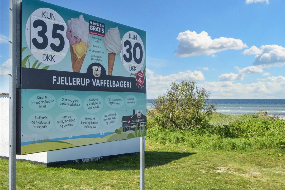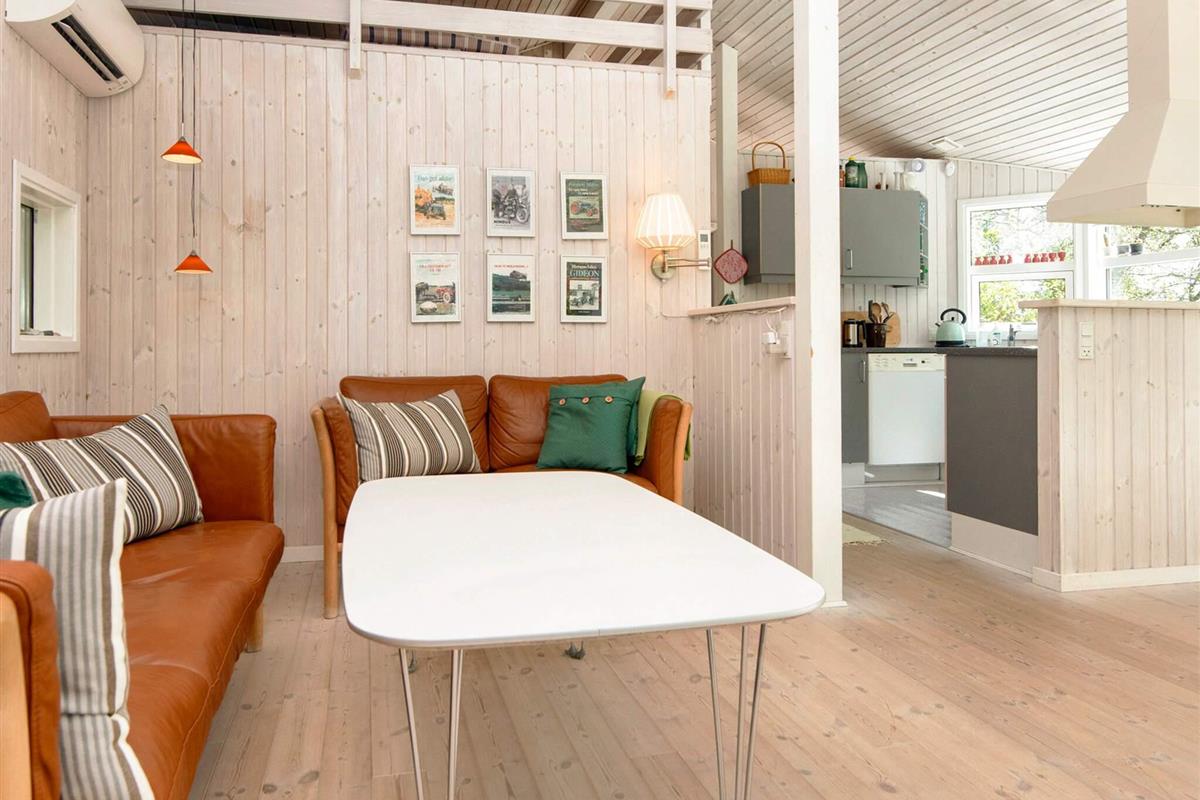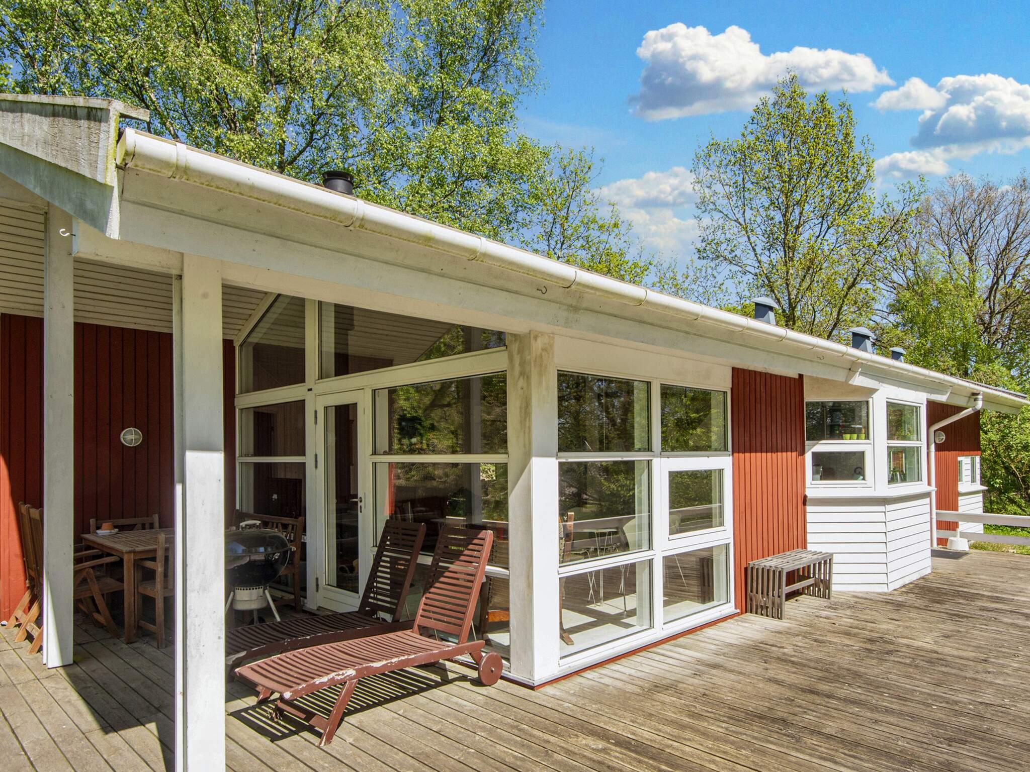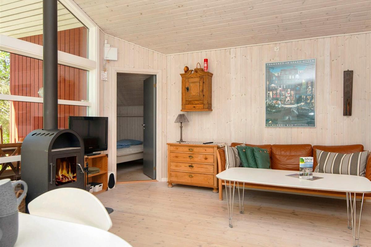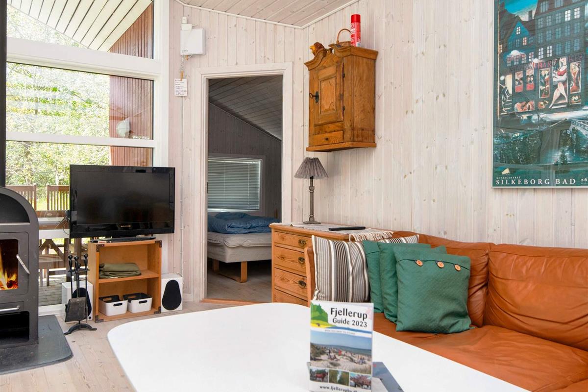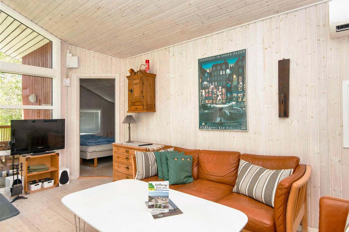 Dieses Ferienhaus liegt an einem ruhigen Ferienhausweg nahe Wald und Strand. Gut eingerichtete Zimmer und mehrere Sonnenterrassen vorhanden. Bei schlechterem Wetter können Sie es sich am Holzofen gemütlich machen. Bei Sonnenschein können Sie den kinderfreundlichen Strand Fjellerup geniessen. Ausserdem liegen 3 gute Golfplätze in einem Umkreis von 20 km vom Haus.