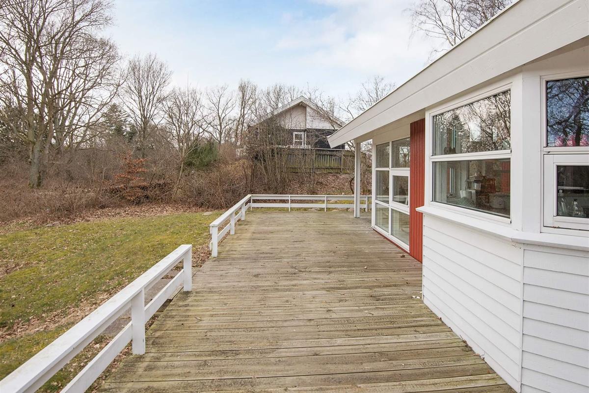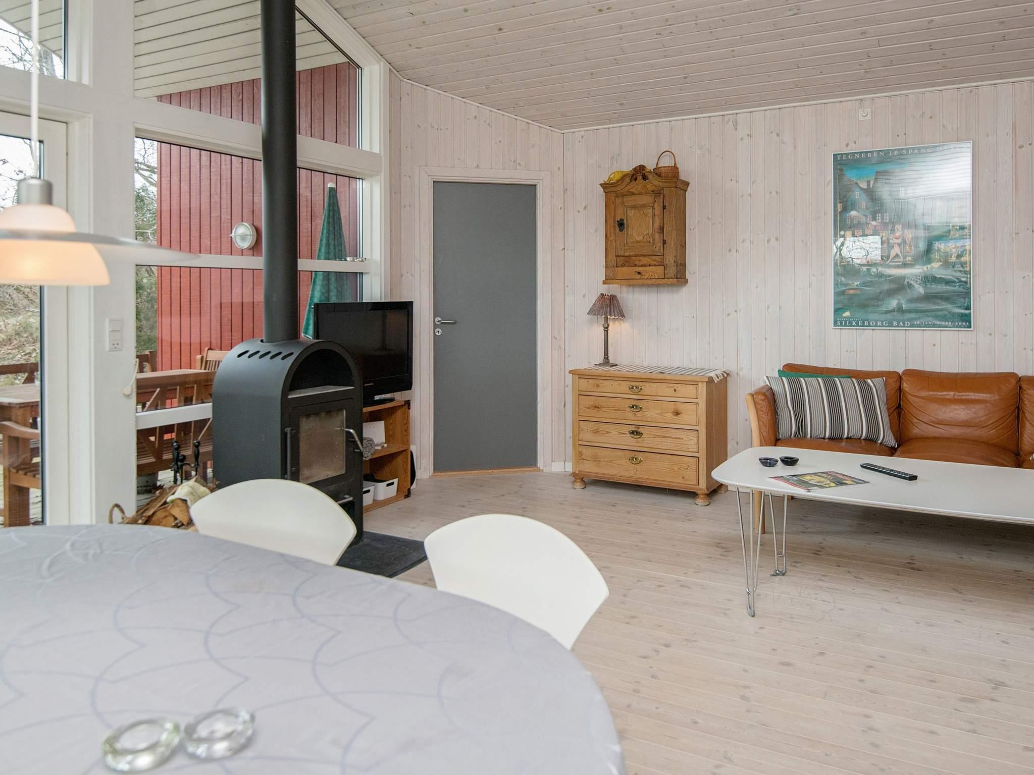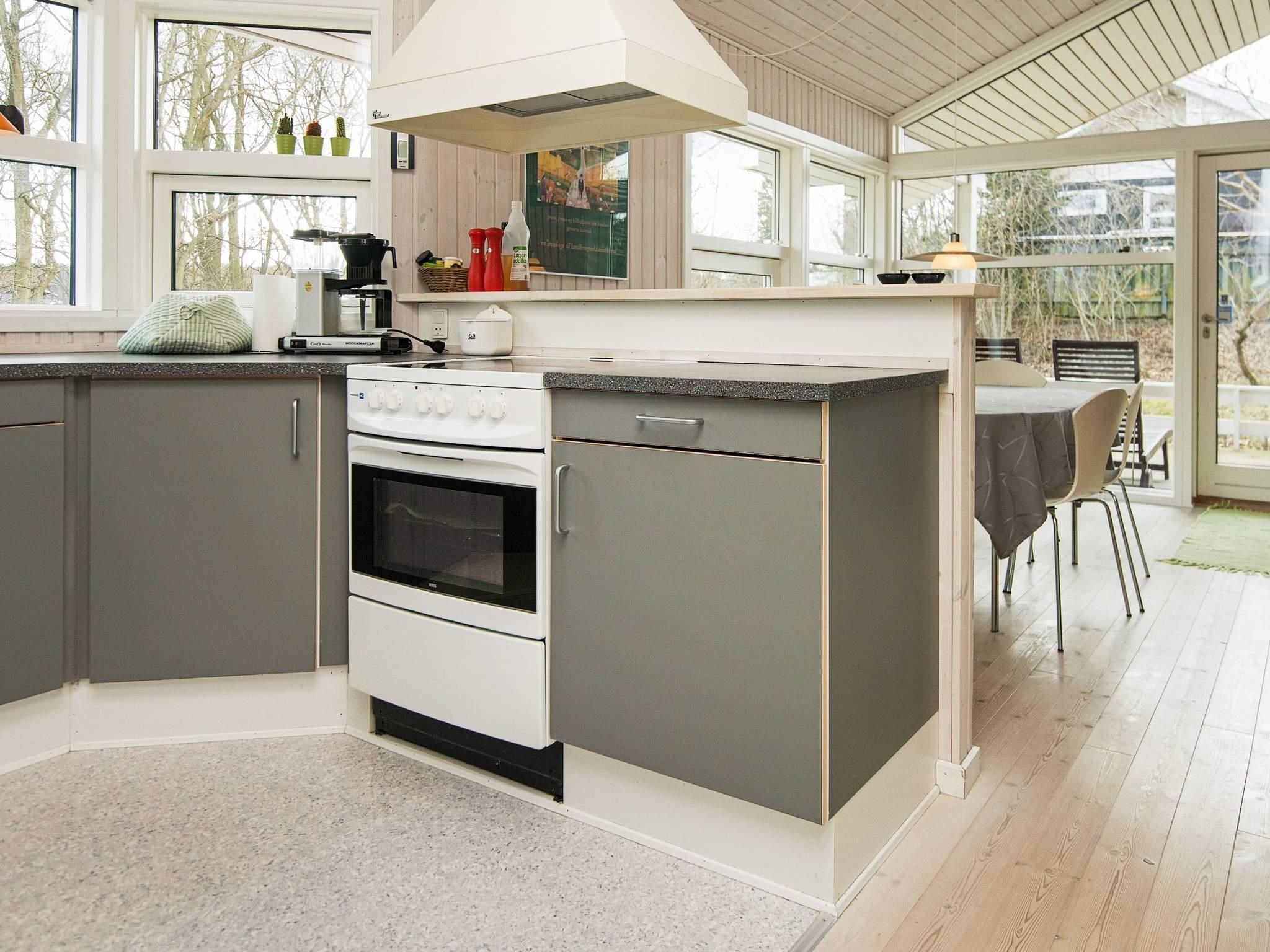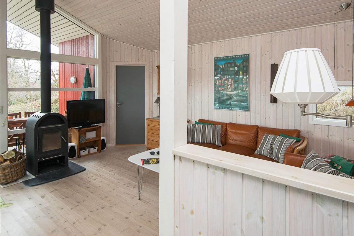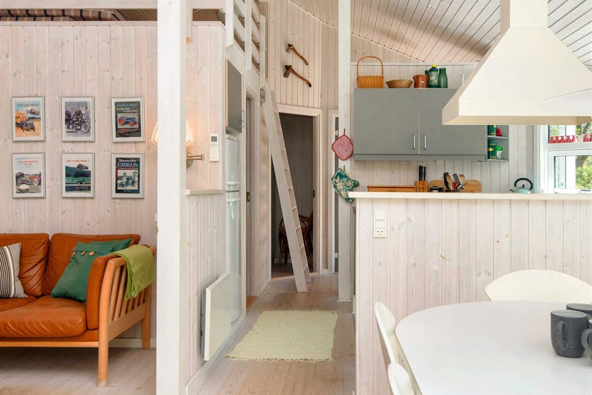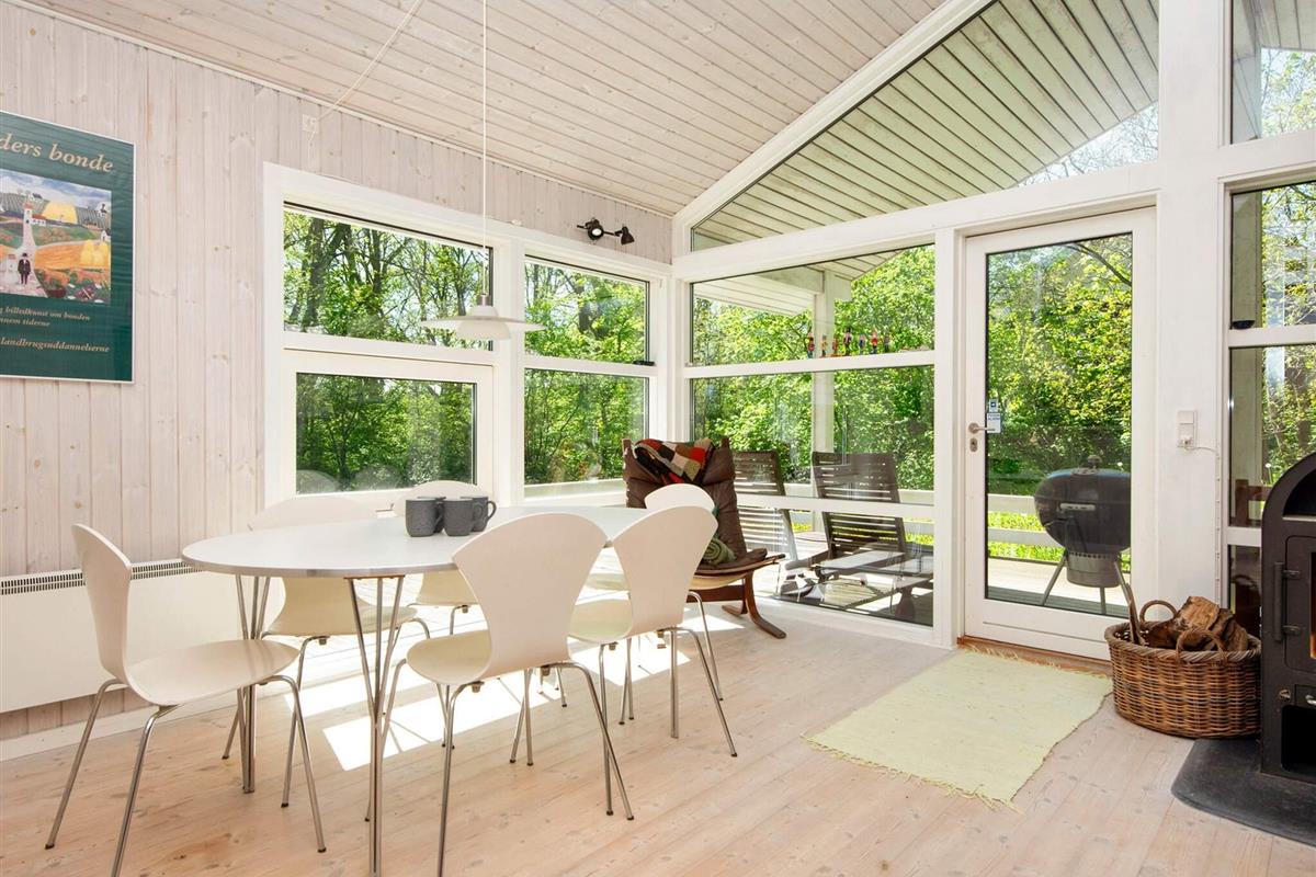 Dieses Ferienhaus liegt an einem ruhigen Ferienhausweg nahe Wald und Strand. Gut eingerichtete Zimmer und mehrere Sonnenterrassen vorhanden. Bei schlechterem Wetter können Sie es sich am Holzofen gemütlich machen. Bei Sonnenschein können Sie den kinderfreundlichen Strand Fjellerup geniessen. Ausserdem liegen 3 gute Golfplätze in einem Umkreis von 20 km vom Haus.