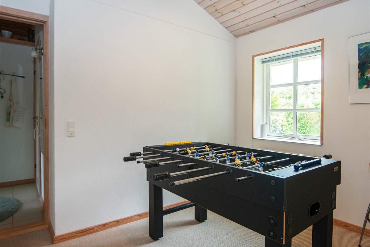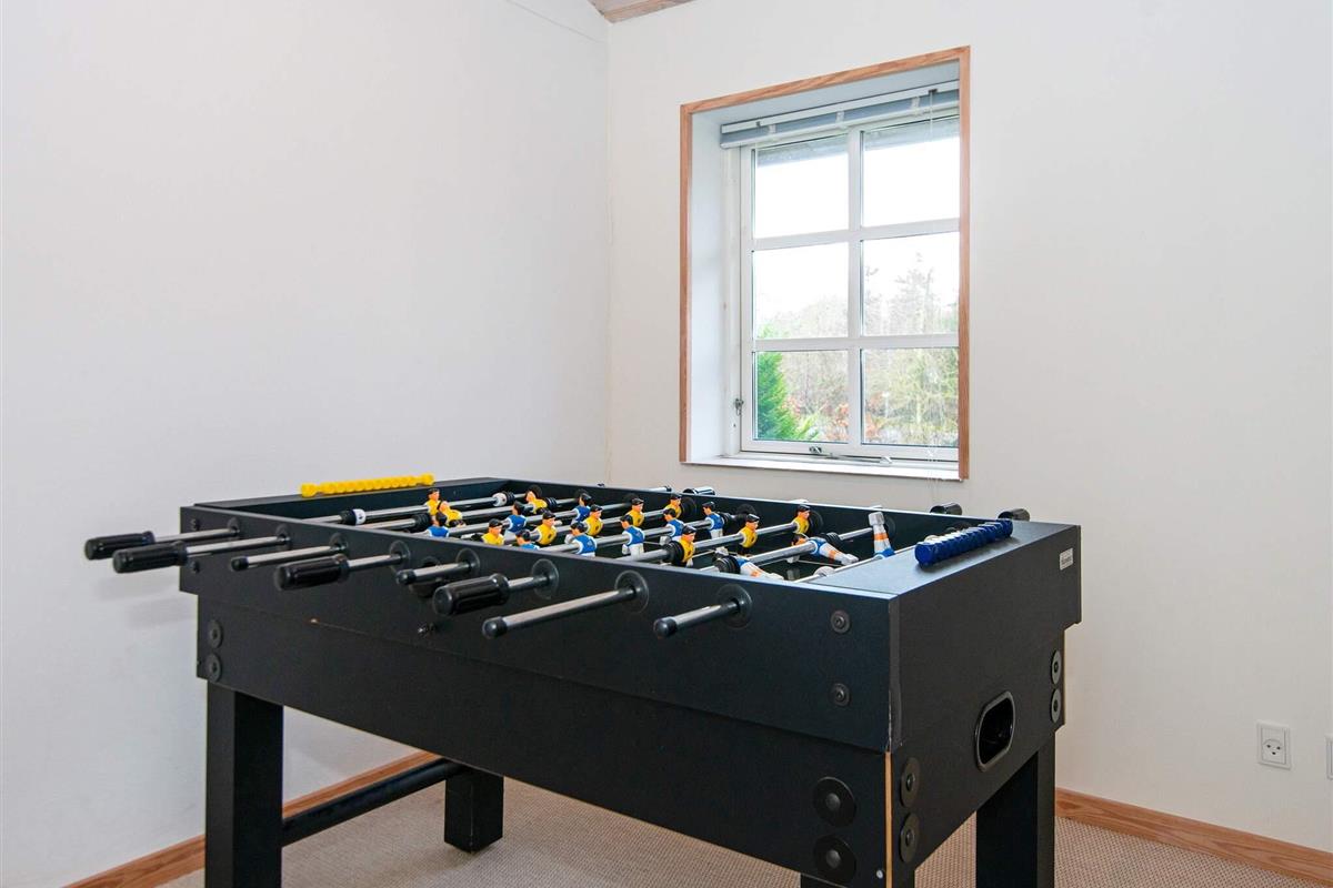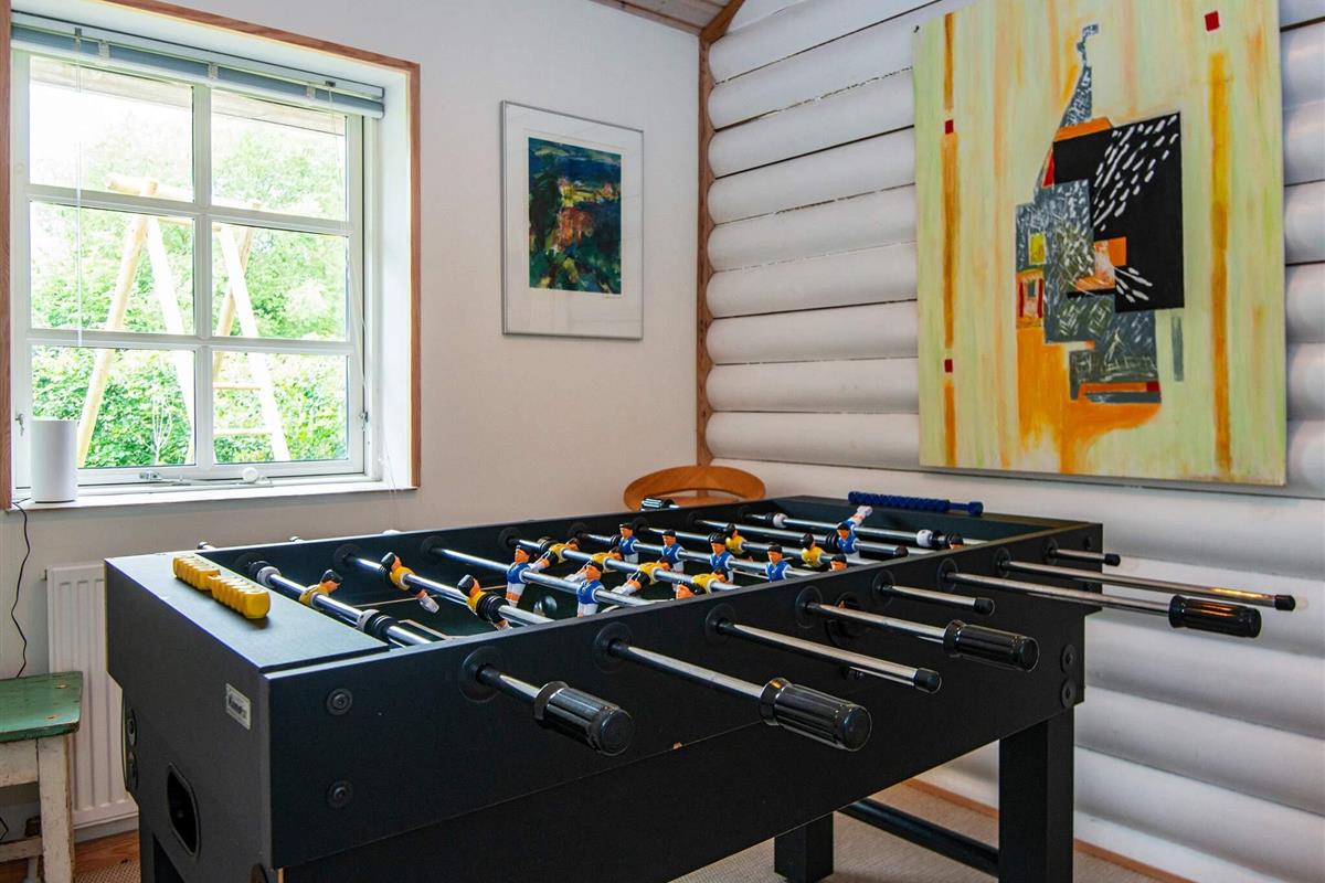 Dieses Ferienhaus wurde bei Fjellerup, nahe einem der schönsten Badestrände der Gegend, erbaut. Innen stehen u.a. ein großer Wohnraum, Küche mit Essplatz, vier Schlafzimmer, ein Aktivitätsraum mit Kicker sowie ein Hems, auf dem Kinder spielen und schlafen können, und zwei Bäder zur Verfügung. In dem einen Bad ist ein Whirlpool untergebracht.