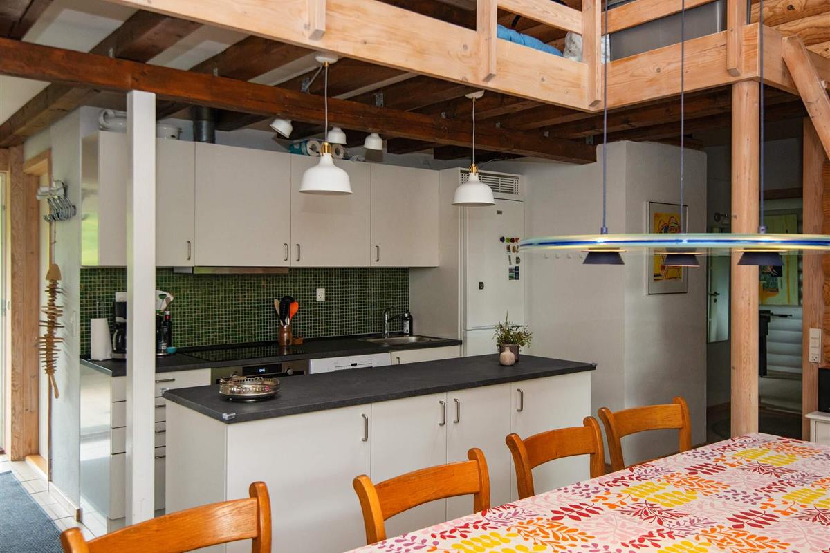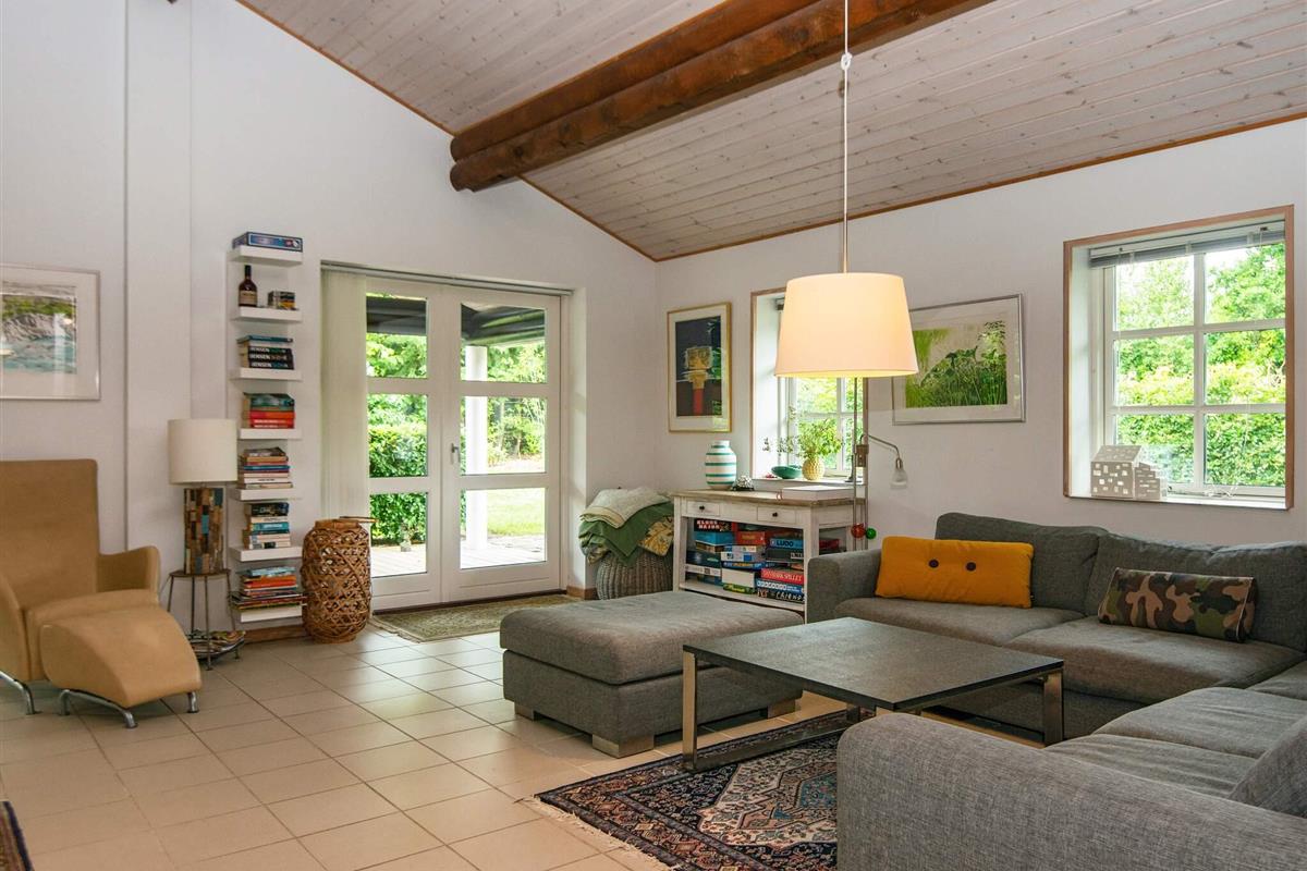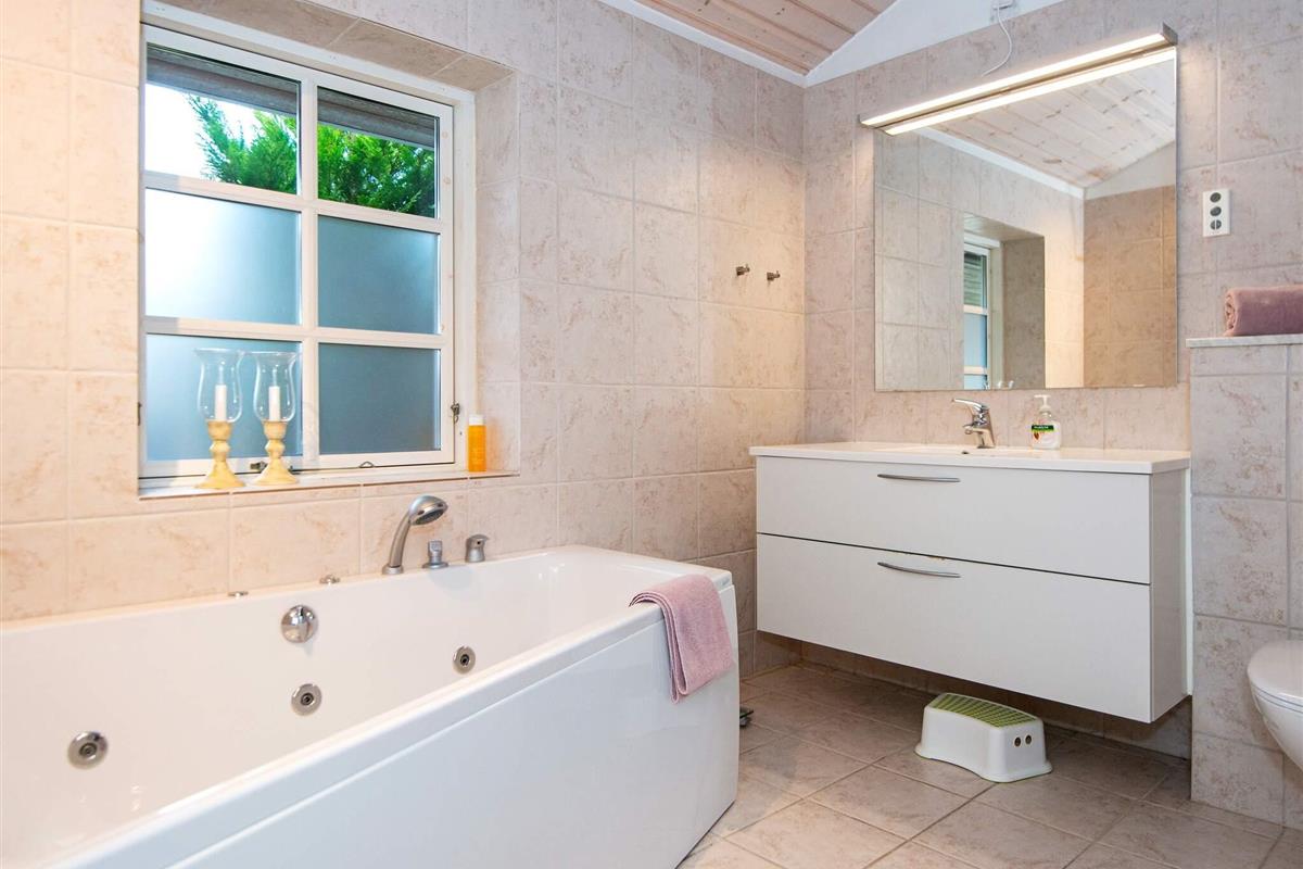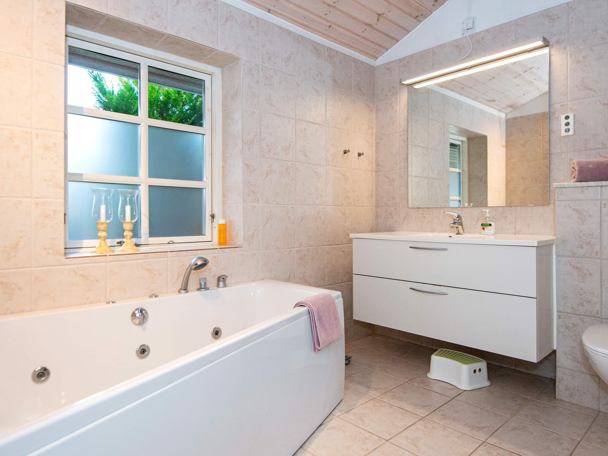 Dieses Ferienhaus wurde bei Fjellerup, nahe einem der schönsten Badestrände der Gegend, erbaut. Innen stehen u.a. ein großer Wohnraum, Küche mit Essplatz, vier Schlafzimmer, ein Aktivitätsraum mit Kicker sowie ein Hems, auf dem Kinder spielen und schlafen können, und zwei Bäder zur Verfügung. In dem einen Bad ist ein Whirlpool untergebracht.