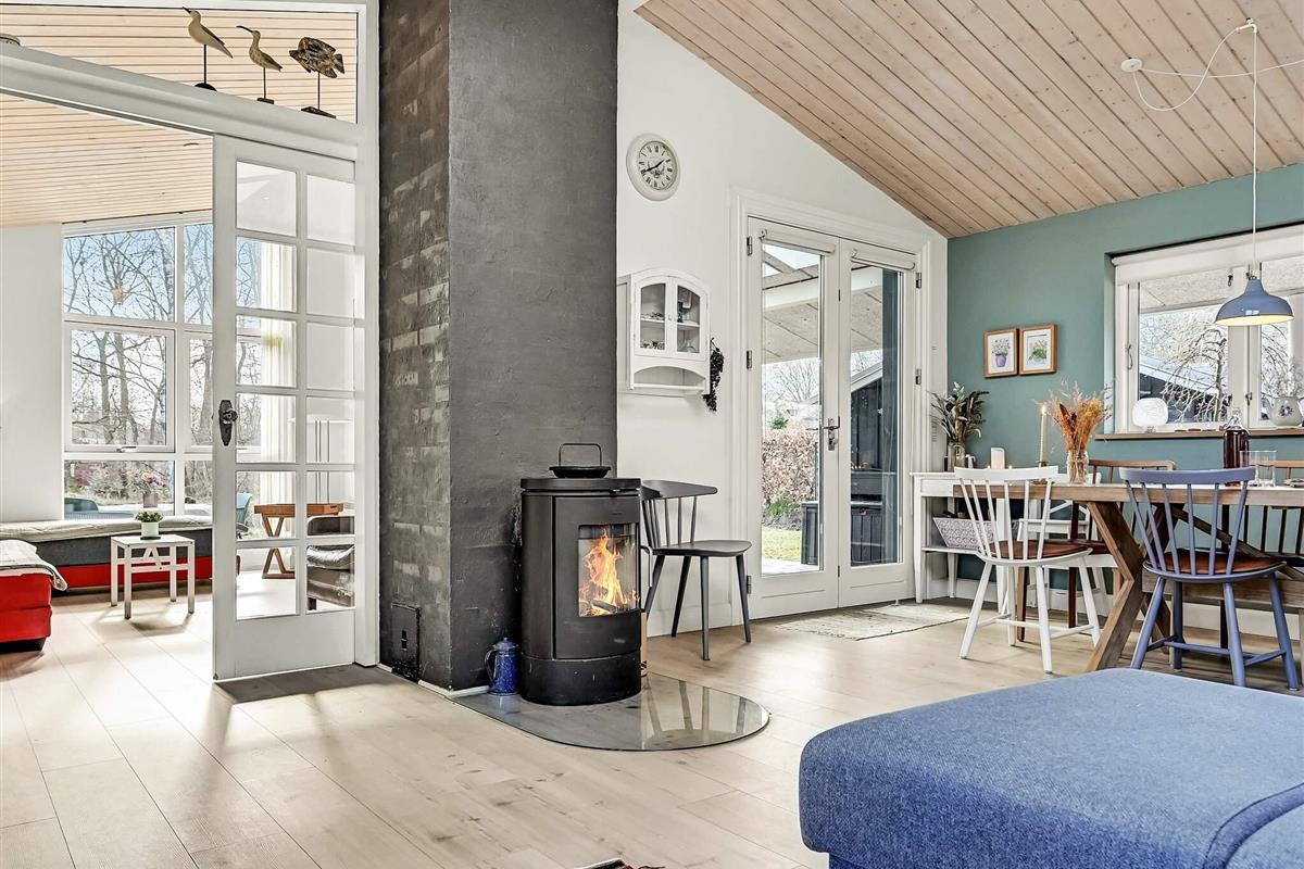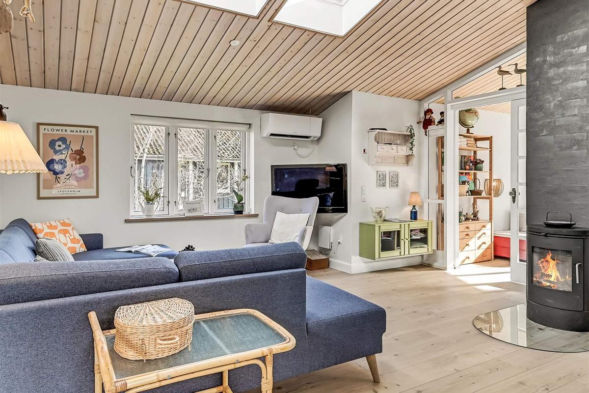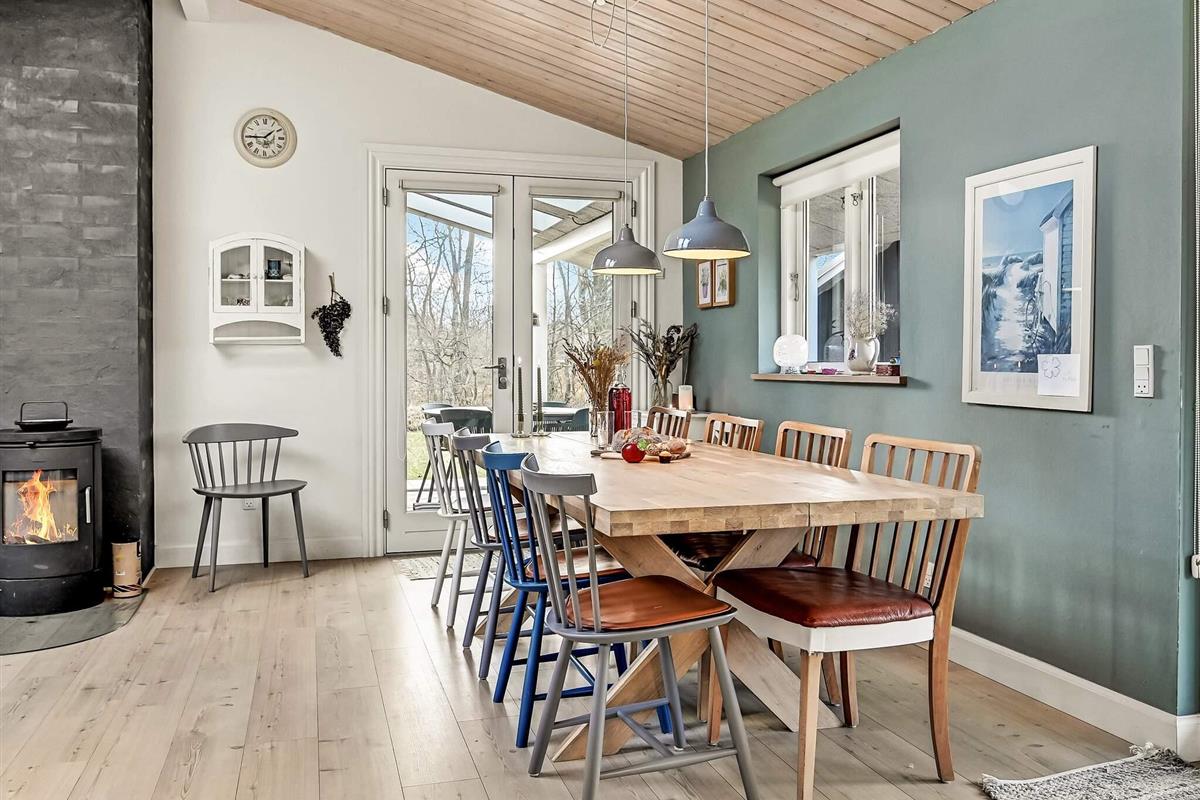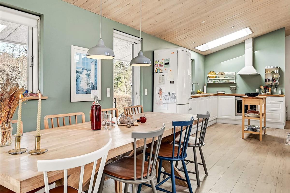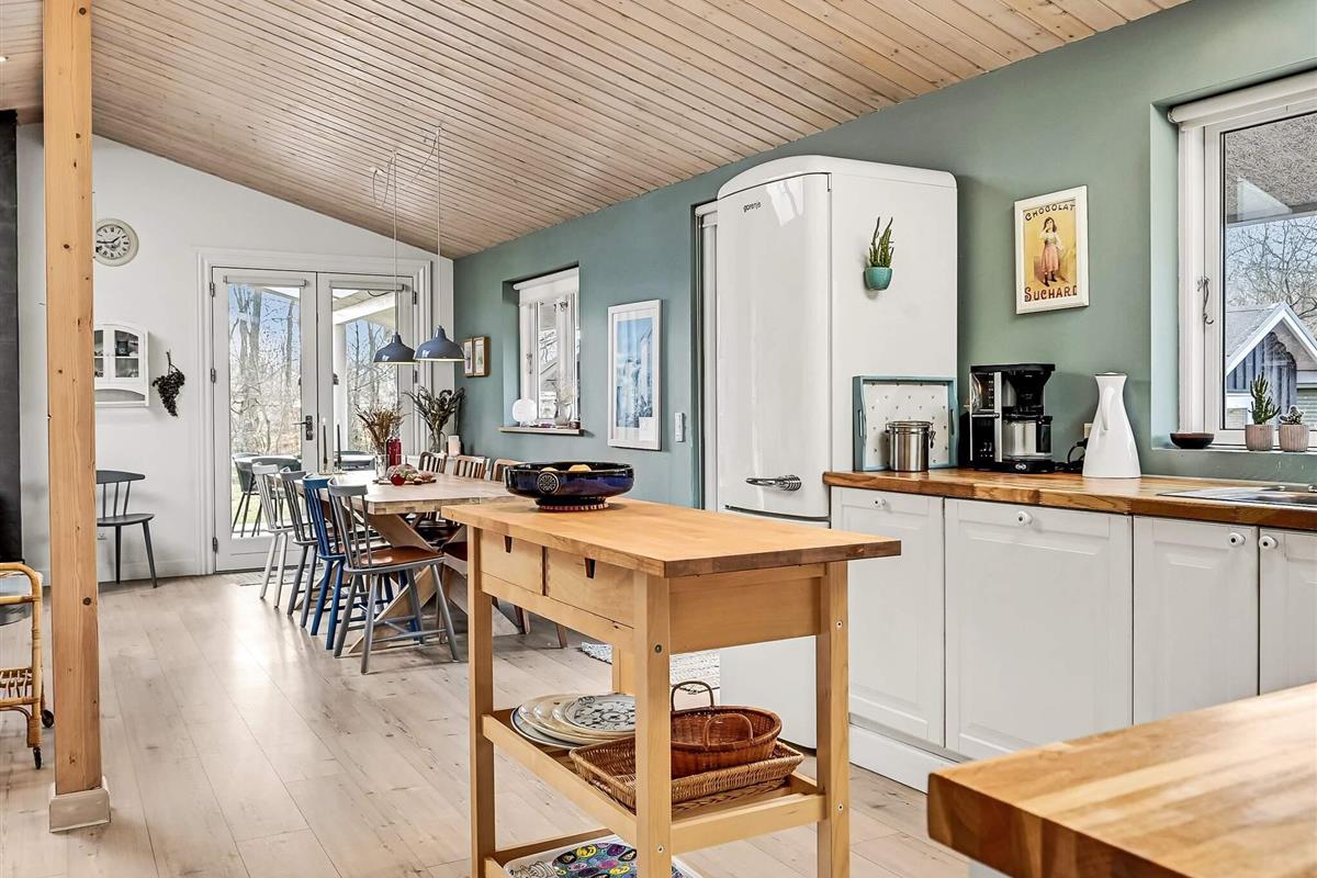 Gemütliches Ferienhaus im älteren Teil des Ferienhausgebiets von Fjellerup. Das Haus verfügt über einen familienfreundlichen Küchen-/Wohnbereich, in der Sie gemeinsame kochen und danach auf dem Sofa entspannen oder am Esstisch Brettspiele spielen können.