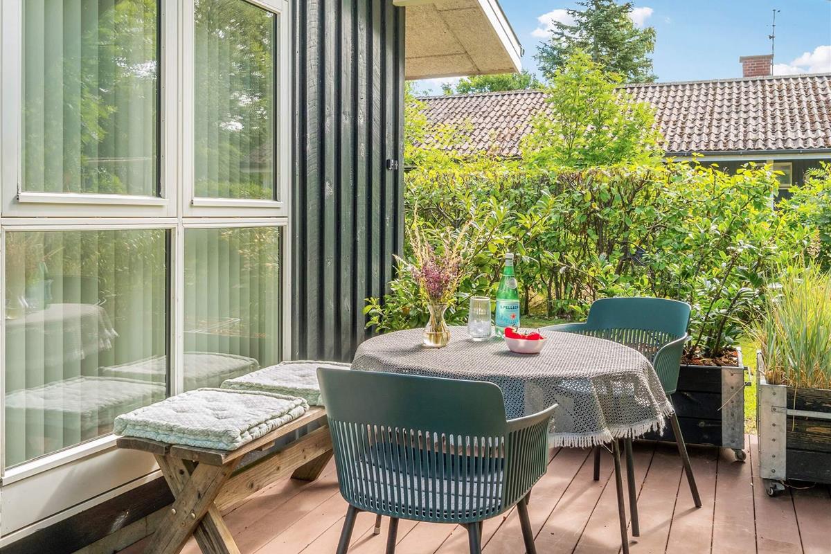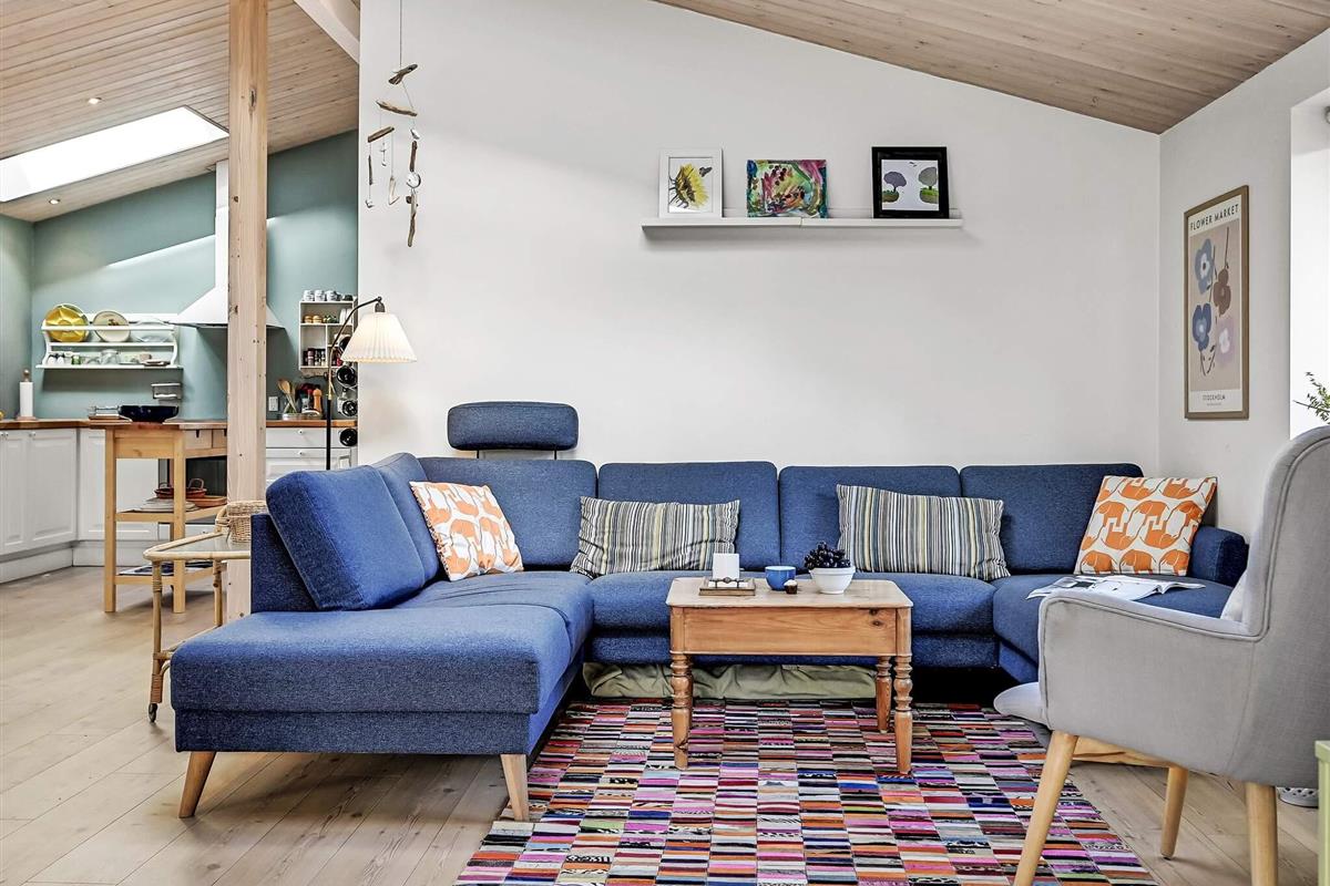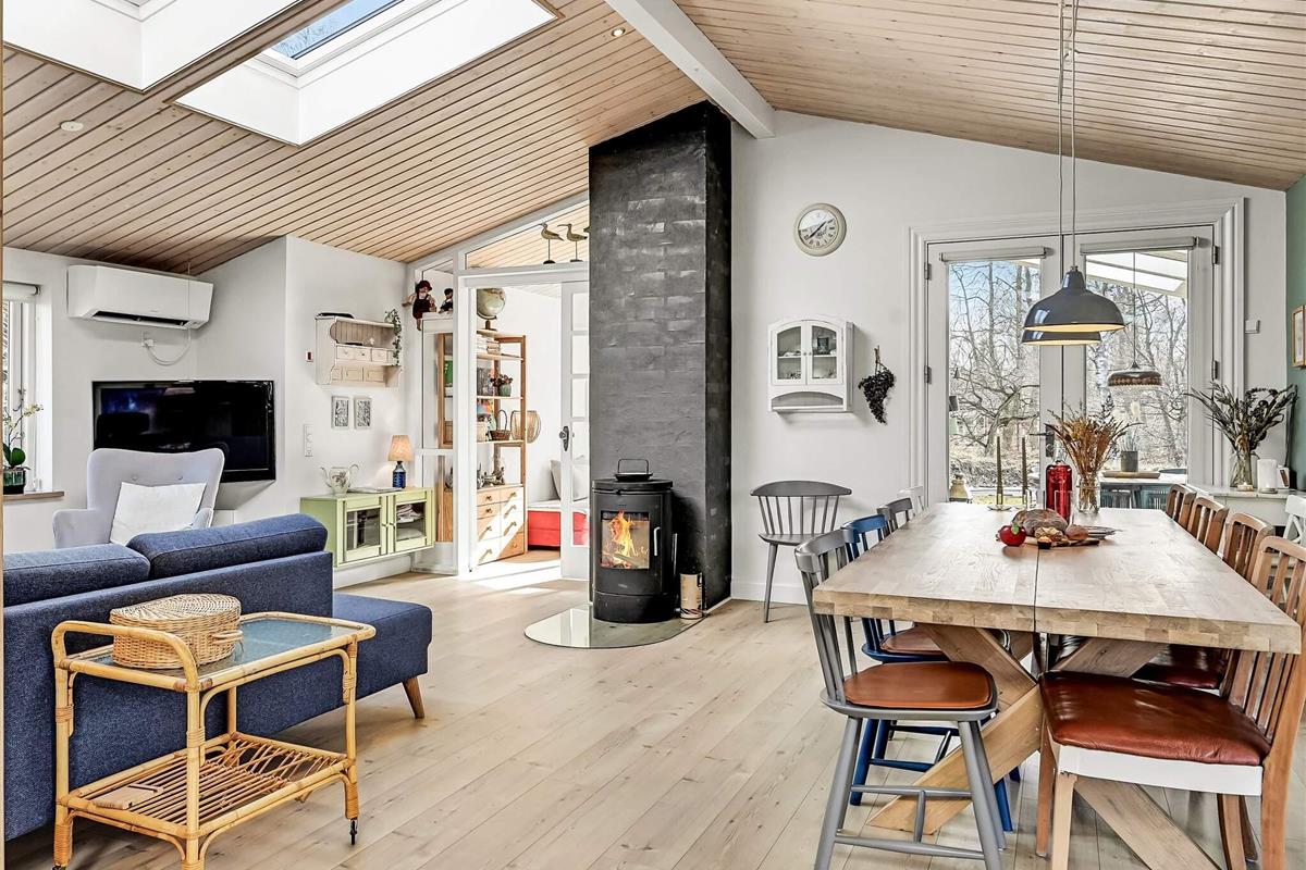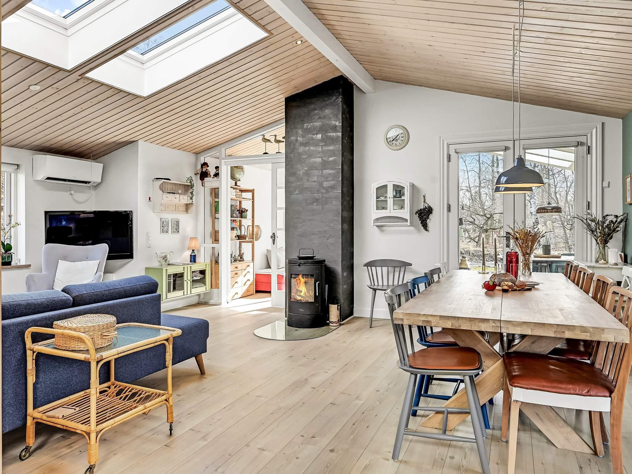 Gemütliches Ferienhaus im älteren Teil des Ferienhausgebiets von Fjellerup. Das Haus verfügt über einen familienfreundlichen Küchen-/Wohnbereich, in der Sie gemeinsame kochen und danach auf dem Sofa entspannen oder am Esstisch Brettspiele spielen können.