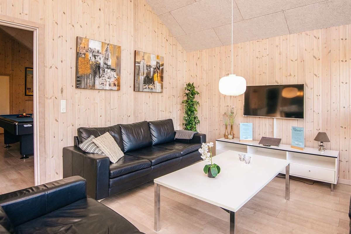 Das Ess-/Wohnzimmer ist geschmackvoll eingerichtet mit einem Flachbild-TV, einer PlayStation, einer Sofaecke und einem Holzofen. Auf der anderen Seite des zentral gelegenen Ess-/Wohnzimmers betreten Sie den Aktivitätsraum, wo Sie am Billardtisch eine Partie Billard oder auch Darts spielen können. Hier können Sie sich auch beim Tischtennis gegenseitig herausfordern. Sowohl der Poolbereich als auch der Aktivitätsraum sind ein richtig guter Treffpunkt für die ganze Familie.