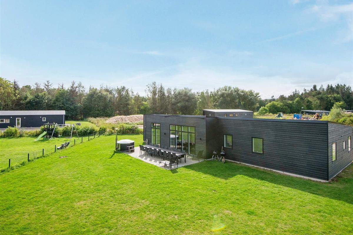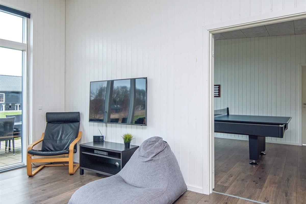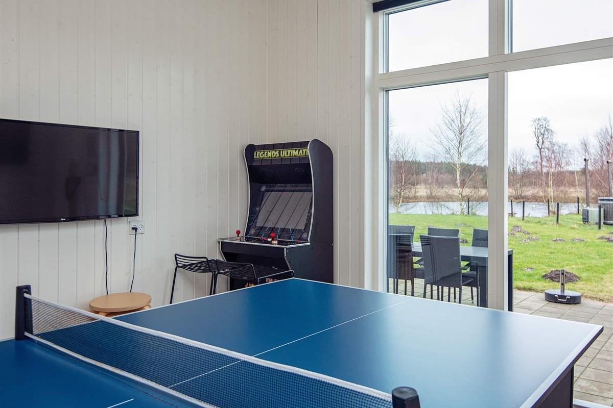 Bei Fjellerup Strand finden Sie dieses große Ferienhaus für bis zu 16 Personen, ausgestattet mit Whirlpool und Sauna im Innenbereich sowie einem Badezuber im Freien. Im Haus gibt es auch einen Aktivitätsraum mit Tischtennis, Billard und Darts für den Freizeitspaß mit der Familie.