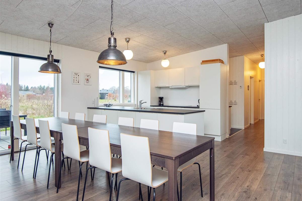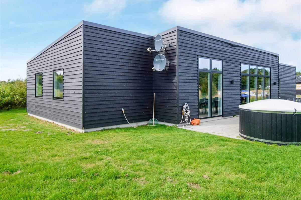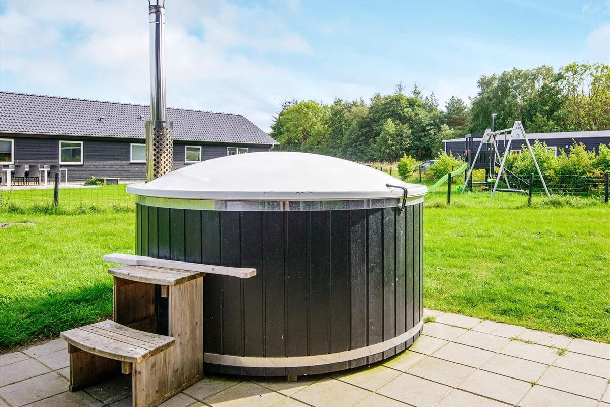 Im Außenbereich können Sie den Badezuber das ganze Jahr hindurch für ein warmes Bad unter freiem Himmel nutzen. Auf dem Grundstück stehen auch Sandkasten und ein Spielegerüst mit Schaukel für die Kleinen bereit. Auf der Terrasse des Hauses findet man an sonnigen Tagen immer einen schönen Sitzplatz. Das Ferienhaus befindet sich in der Gegend Skovsøen, nur etwa 900 m vom schönen Strandufer von Fjellerup entfernt.