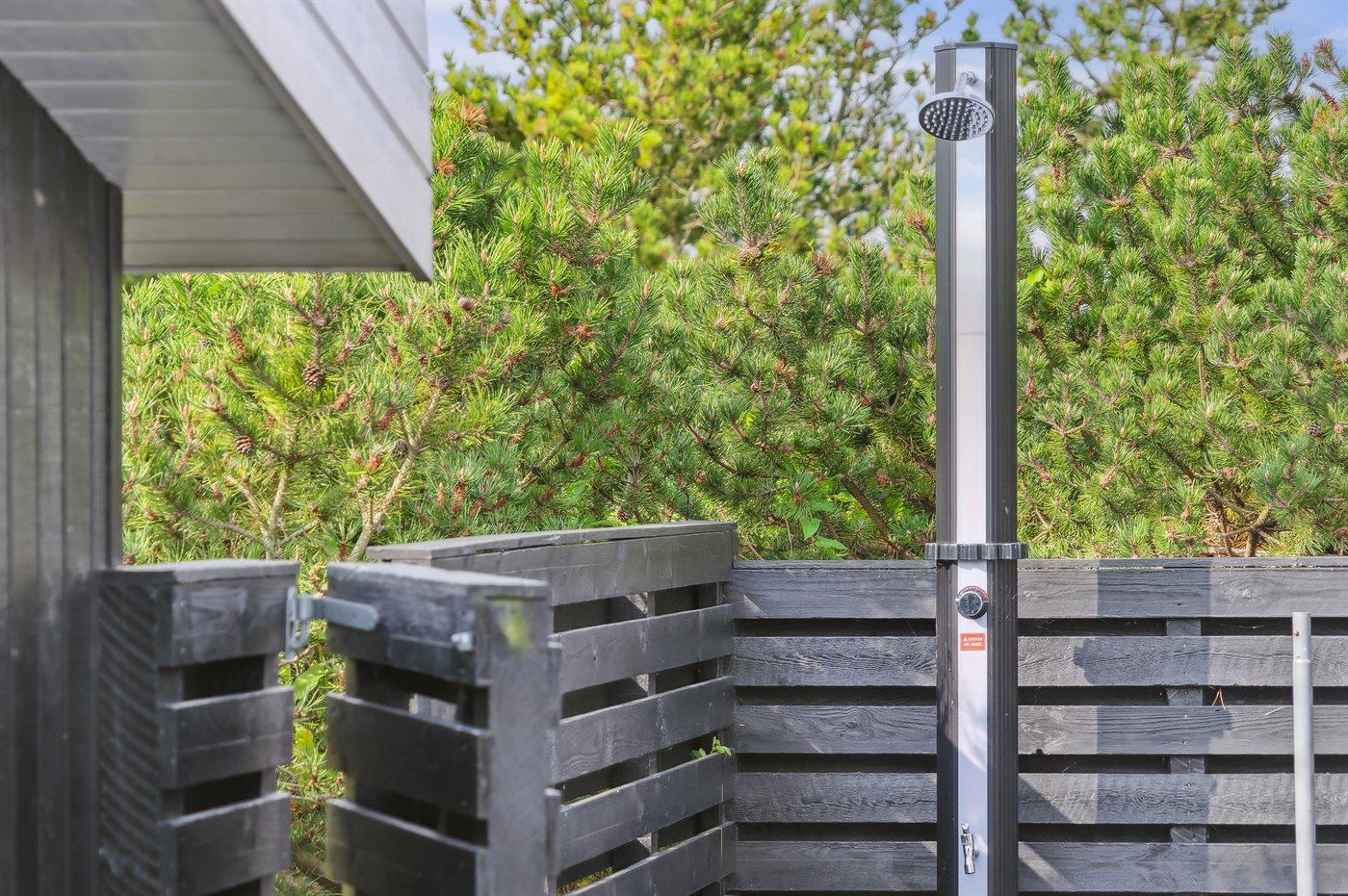 De vakantiewoning is gelegen op een 1260 m² groot aangelegde tuin. Afstand tot de zee 200 m. Dichtstbijzijnde winkel 1500 m. Bij de vakantiewoning hoort terras. Daarnaast is er een overdekt terras. Trampoline. Voetbaldoel. Buitendouche. Barbecue. Carport ter beschikking. Parkeerplaats bij het huis.