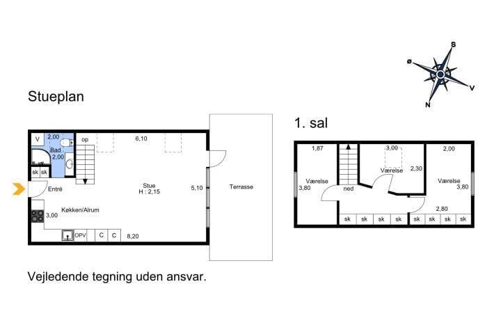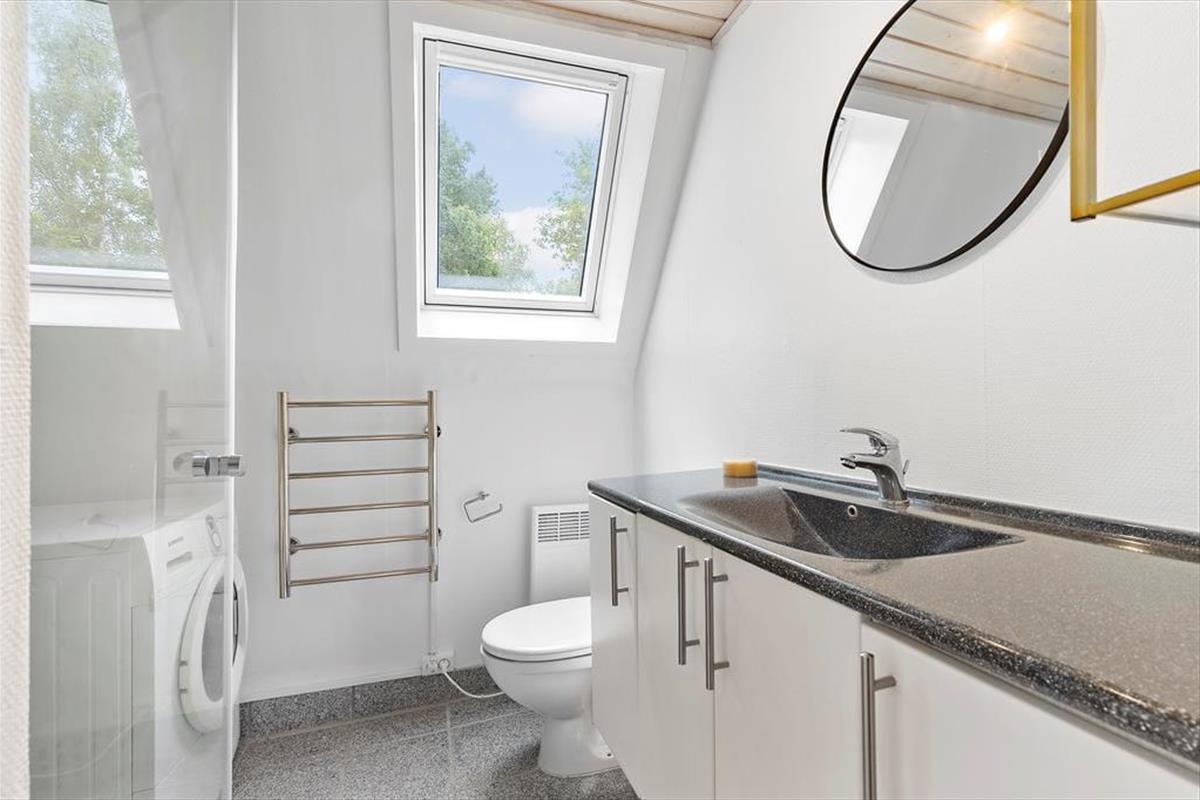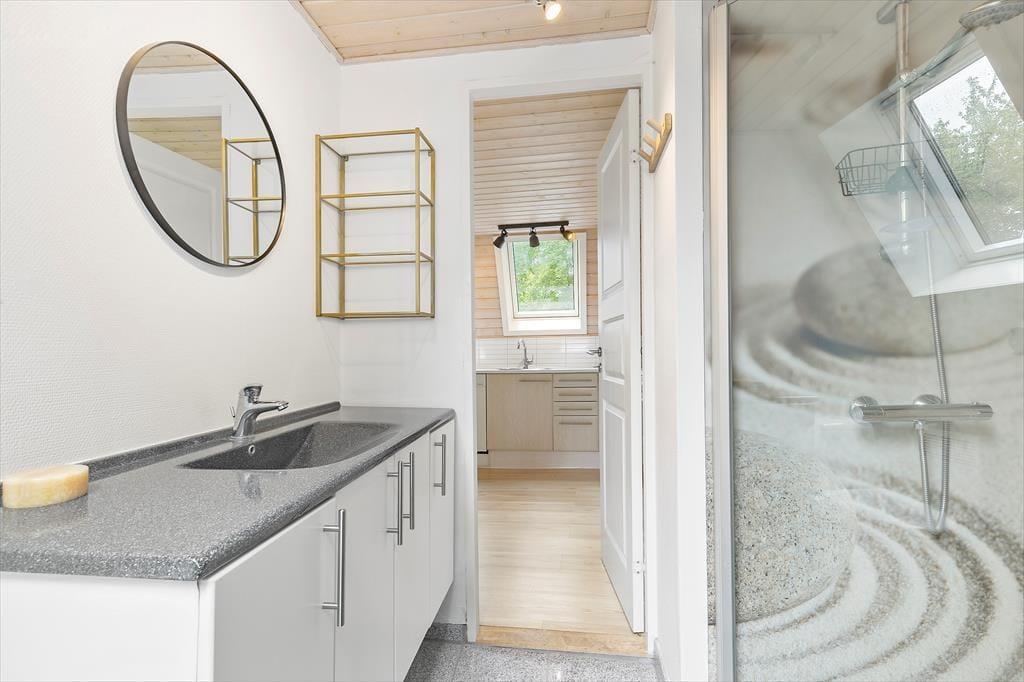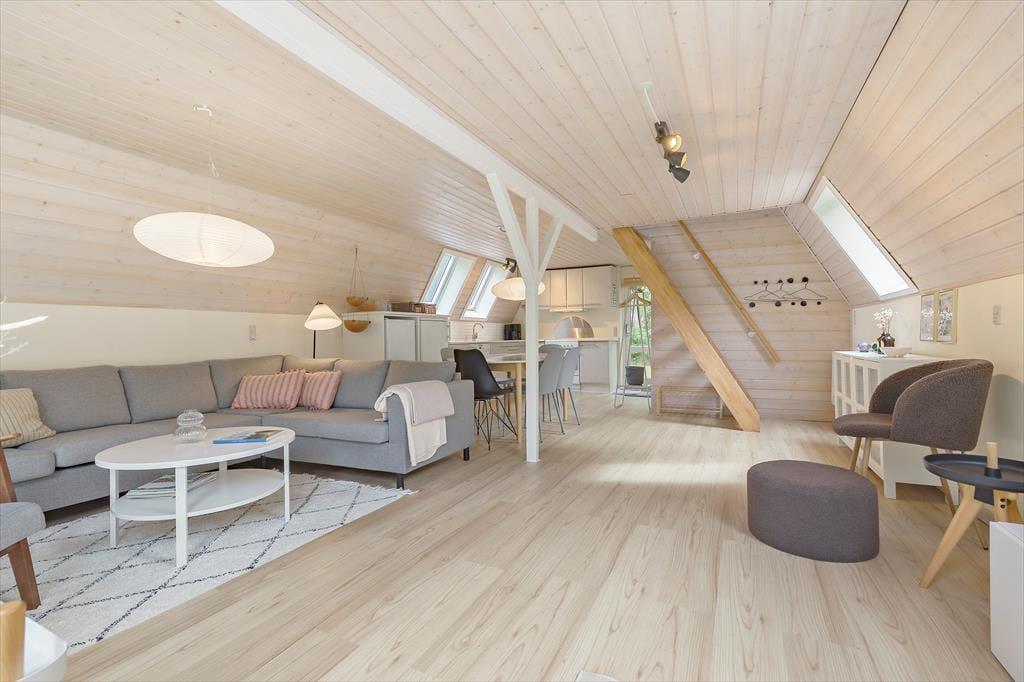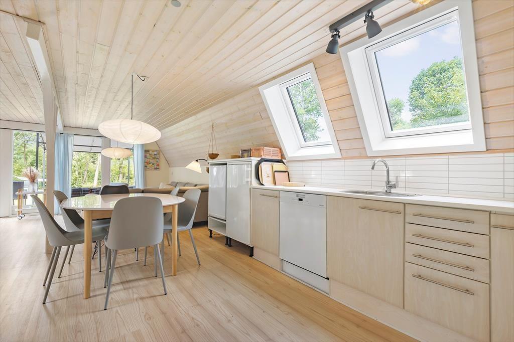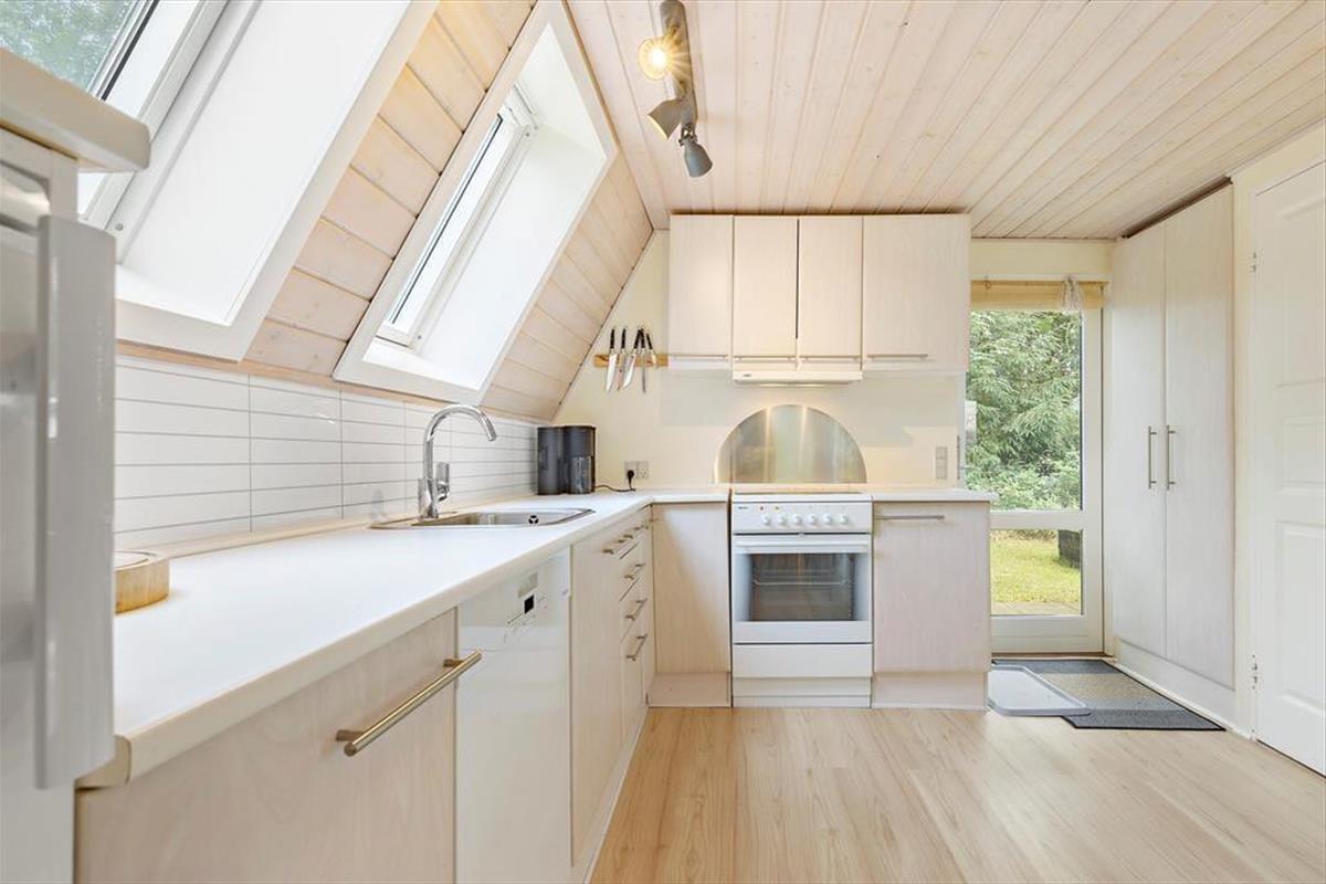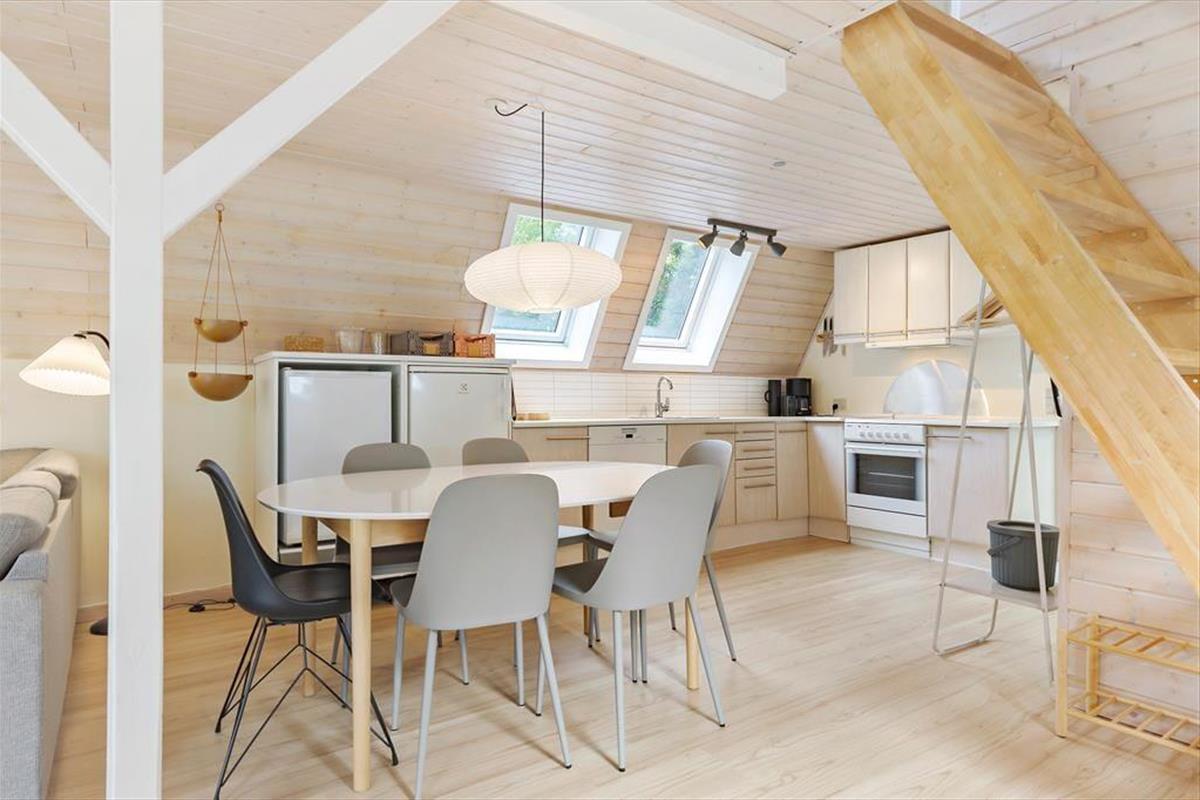 Willkommen in deinem Ferienhaus Dieses sehr gemütliche Ferienhaus erstreckt sich über zwei Etagen und besticht mit seiner hellen, freundlichen Wohnatmosphäre, die unter anderem durch die offenen Holzbalken geprägt wird. In der schönen Küche mit einem guten Tageslichteinfall bieten sich Ihnen gute Voraussetzungen für die Zubereitung der Mahlzeiten. Die Küche fügt sich offen in den ansprechenden Wohnraum ein, in dem ein Essplatz, ein großes Sofa und schöne Möbel zur Verfügung stehen. Das gute Badezimmer des Erdgeschosses beinhaltet eine Duschkabine und eine Waschmaschine. Im Obergeschoss erwarten Sie drei Schlafräume - eines mit Doppelbett und zwei mit je zwei Einzelbetten.