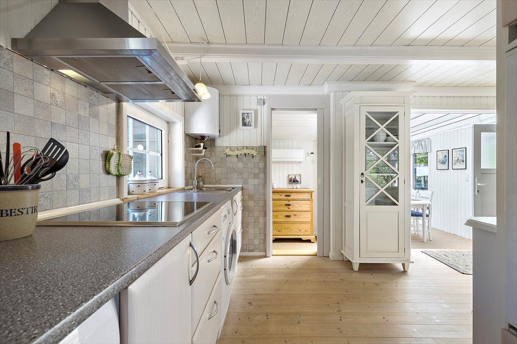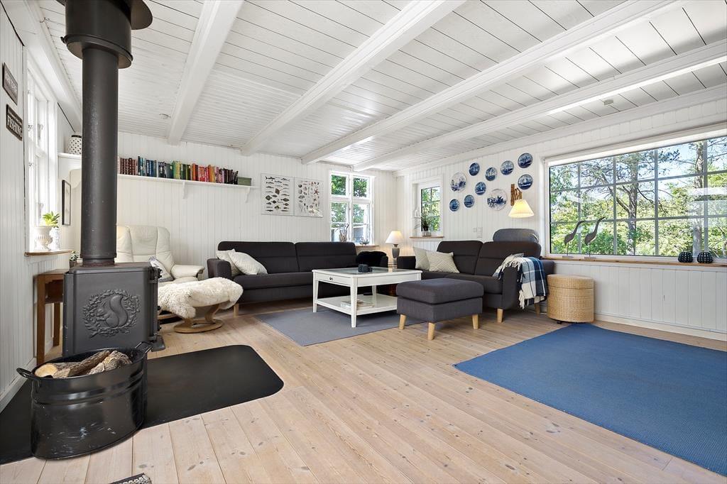 Bereits bei deiner Anreise zum Ferienhaus wird dich die Natur, die Ruhe und die Schönheit des Ferienhausgebietes Fjellerup Strand begeistern. Dein gemütliches und gepflegtes Ferienhaus begrüßt dich auf einem schönen, eingezäunten Naturgrundstück. Unvergessliche Urlaubserinnerungen sind dir bei diesem Mietobjekt garantiert. Unmittelbar nach dem Betreten des Hauses befindest du dich im ansprechenden Wohnraum, der der Inbegriff von Gemütlichkeit und einer warmen Wohnatmosphäre ist. Die komfortablen Möbel laden zu erholsamen, entspannten Stunden ein. Mit behaglicher Wärme und einem Maximum an klassischer Ferienhausgemütlichkeit verwöhnt derweil das knisternde Feuer im Kaminofen. Der integrierte Wintergarten überzeugt mit einem separaten Essplatz - perfekt für gemeinsame Essen und angeregte Gespräche. In der gut ausgestatteten Küche wird die Zubereitung der täglichen Mahlzeiten zum Vergnügen. Zu den praktischen Annehmlichkeiten gehören unter anderem ein Geschirrspüler und eine Waschmaschine.