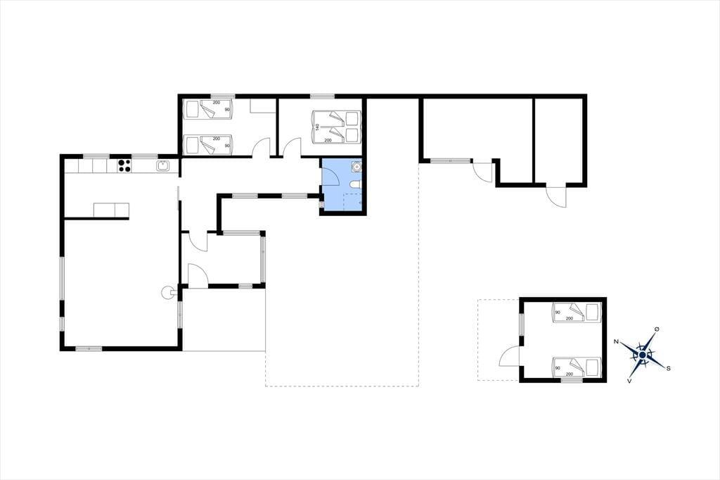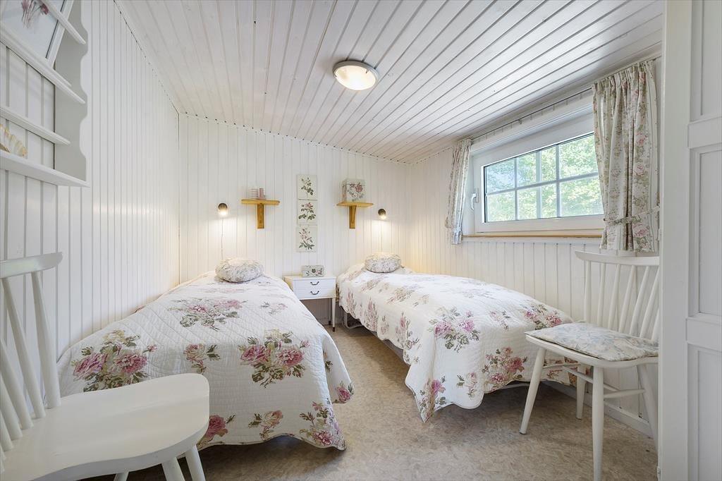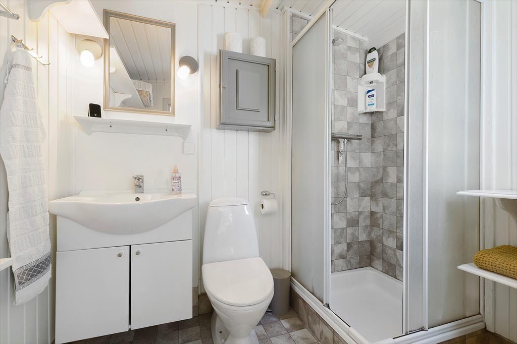 Nach einen langen, erlebnisreichen Urlaubstag versprechen die beiden gemütlichen Schlafräume erholsame Nächte. Einer der Schlafräume verfügt über ein Doppelbett. Im zweiten Raum stehen zwei Einzelbetten bereit. Weitere Schlafplätze bietet das gepflegte Nebengebäude in Form zweier Einzelbetten - perfekt für Gäste oder Kinder im Teenageralter, die bereits Wert auf ein wenig mehr Privatsphäre legen. Ein helles, funktionelles Badezimmer mit Duschnische ist selbstverständlich ebenfalls im Ferienhaus vorhanden.