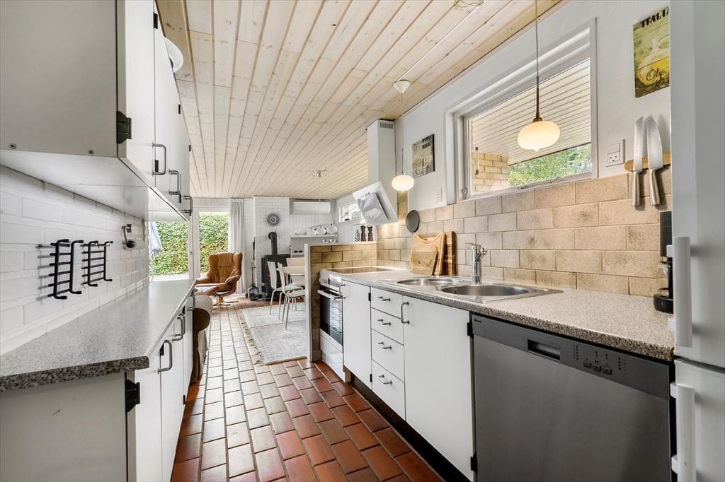 Nur 800 Meter von einem der schönsten Strände Nordjütlands entfernt, empfängt dich dieses gemütliche Steinferienhaus. Überall im Haus ist vom ersten Moment an ersichtlich, dass der Eigentümer keinerlei Mühe gescheut hat, einen einladenden Rahmen für gelungene Urlaubstage zu schaffen. Der Wohnraum besticht mit einer warmen, entspannten Atmosphäre, die es dir leicht macht, dich beim Lesen eines Buches auf dem Sofa oder während eines geselligen Filmabends bestens zu entspannen. Der ebenfalls im Wohnraum platzierte Esstisch lädt zu vergnügten Spieleabenden und zu gemeinsamen Mahlzeiten ein. Schlafplätze stehen im Wohnraum in Form eines Schlafsofas bereit - perfekt für kleine Kinder, die beim Schlafen Wert auf die Nähe der anderen Familienmitglieder legen. Der Wintergarten vermittelt das gesamte Jahr hindurch das schöne Gefühl, eins mit der Natur zu sein.