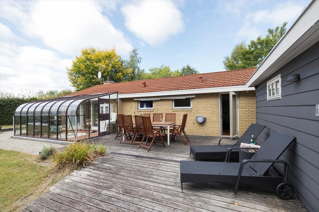 Der Garten präsentiert sich groß, schön und einladend und bietet viel Platz zum Spielen, zum Erholen und für gemütliche Stunden im Familienkreis. Die Terrasse liegt im Winkel zwischen dem Ferienhaus und dem Nebengebäude und verwöhnt mit gutem Windschutz. Deine Kinder können nach Herzenslust auf der Grasfläche umhertollen und in der Sandkiste spielen. Euer Hund wird das fröhliche Treiben aufmerksam verfolgen und sicherlich selbst gern auf Entdeckungstour gehen. Während Hund und Kinder beschäftigt sind, machst du es dir am besten mit einem spannenden Buch auf den Gartenmöbeln gemütlich und genießt die friedvolle Atmosphäre.
